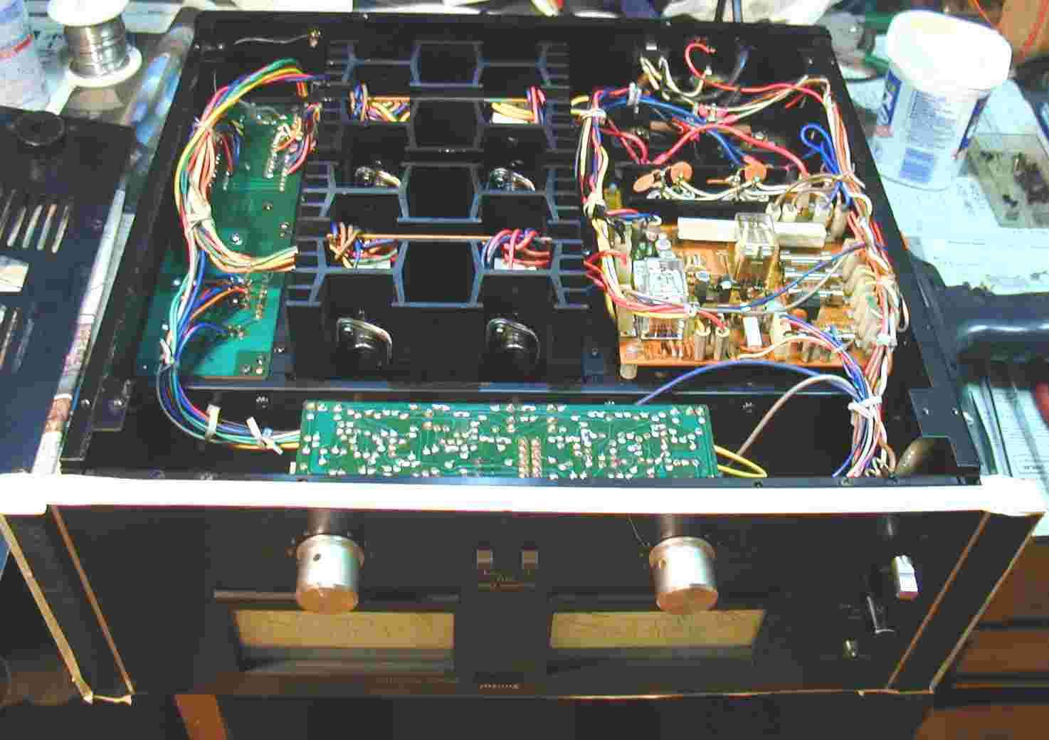 終段TR(トランジスター)が、3パラPPで、合計12個使用、片側で、軽く200W出る |