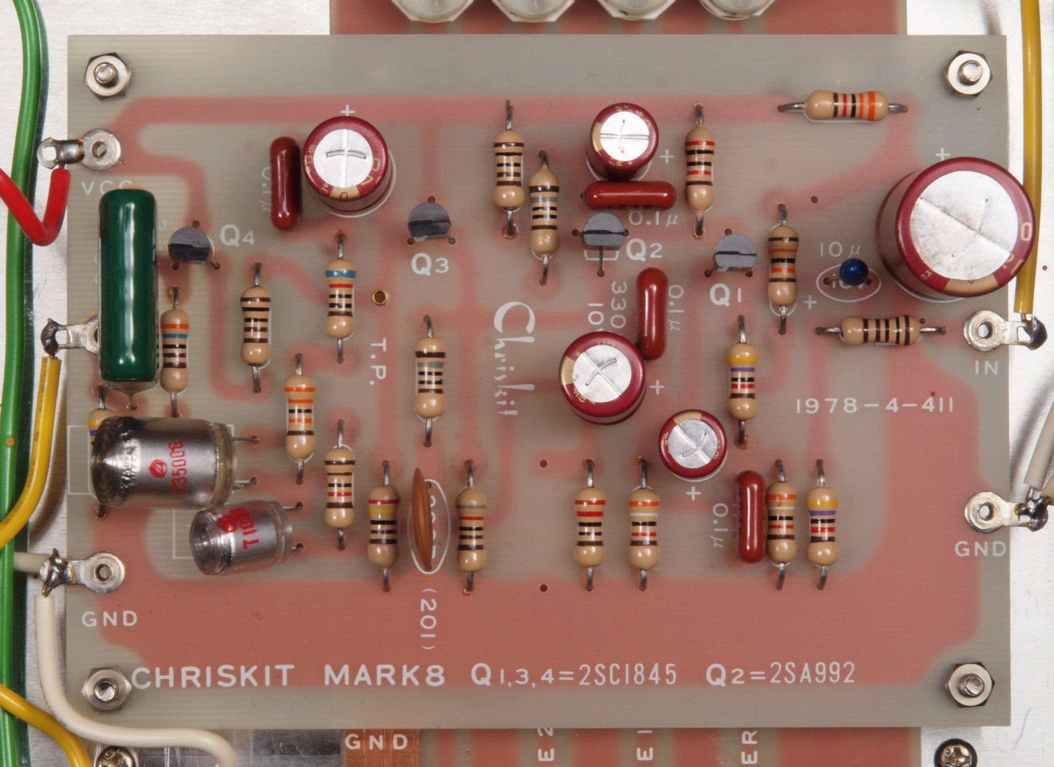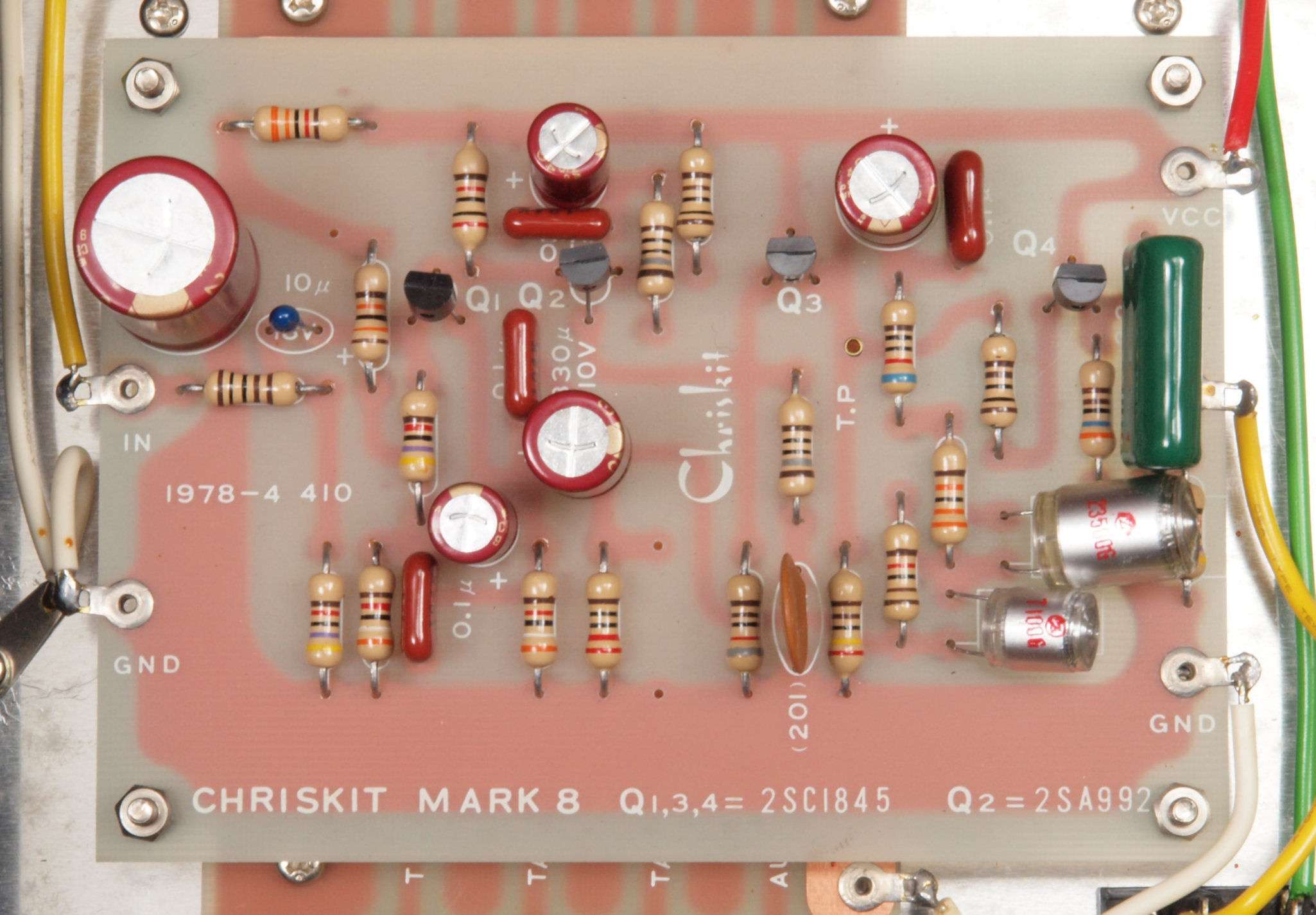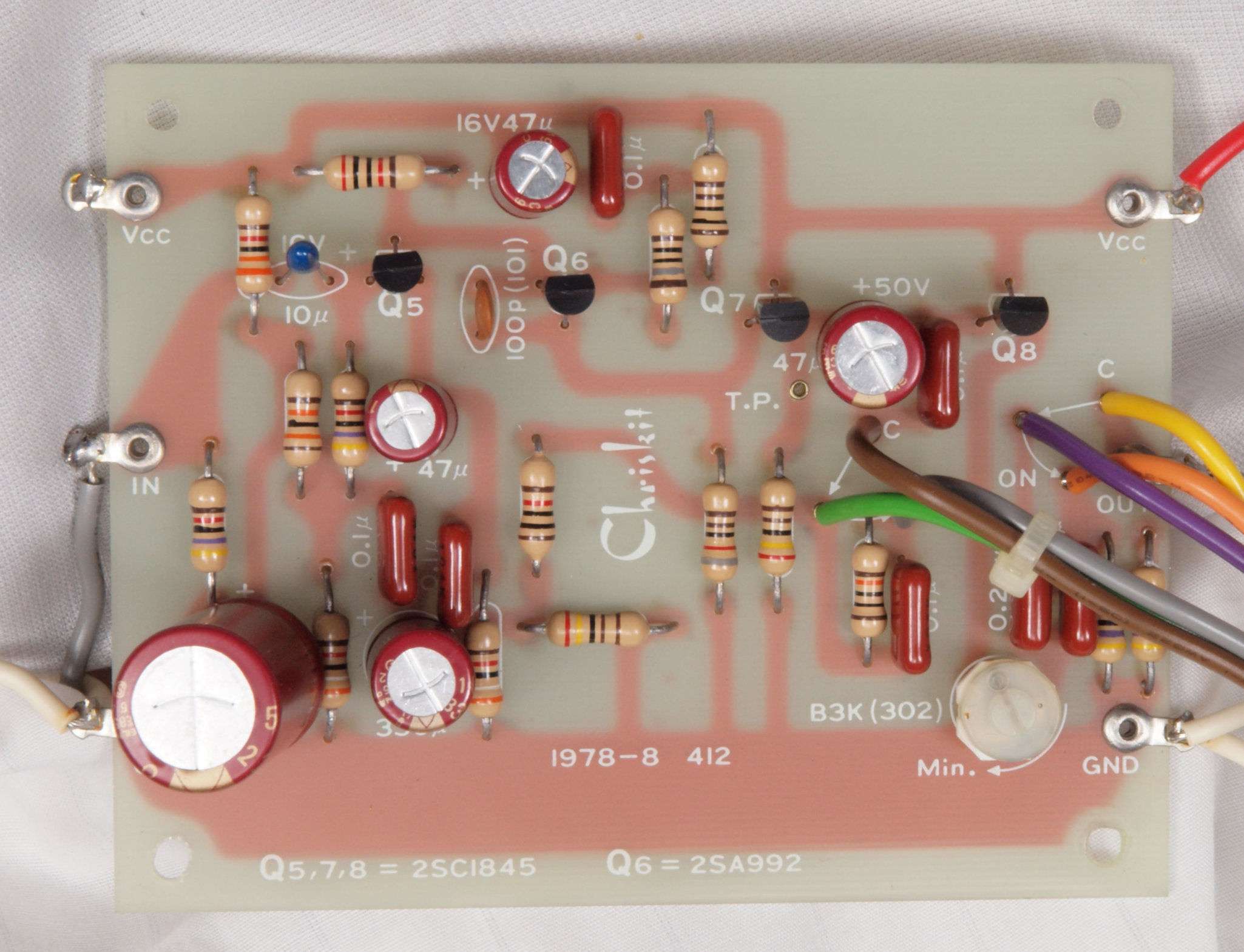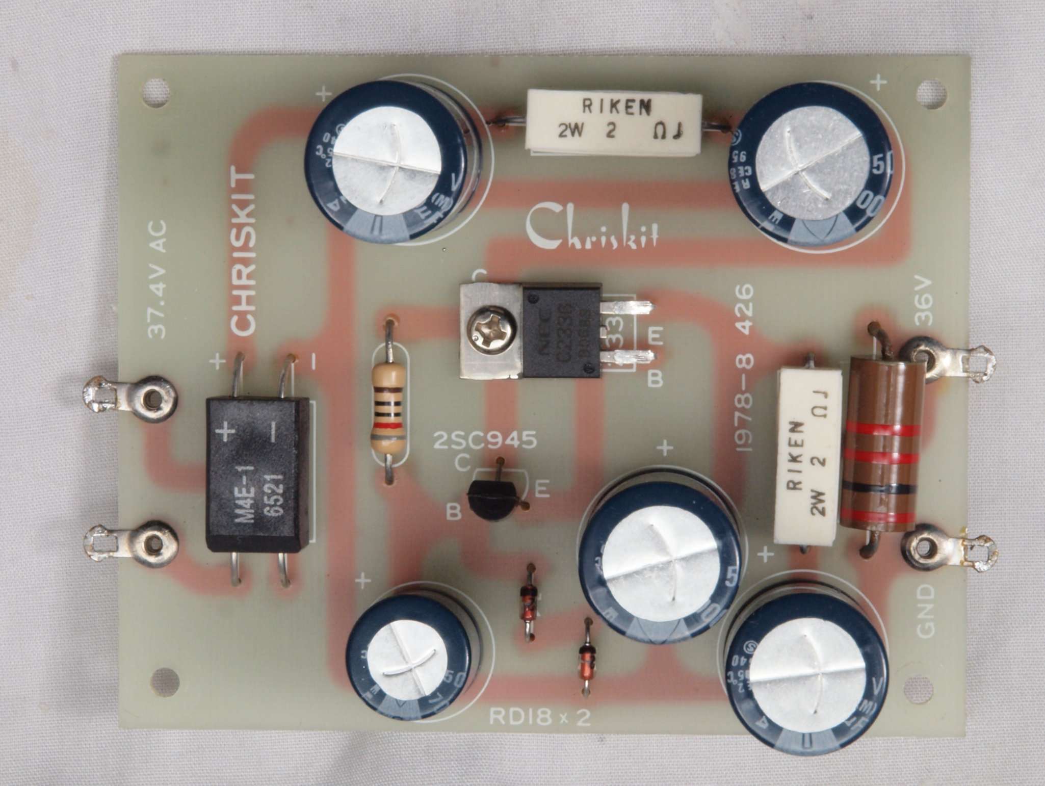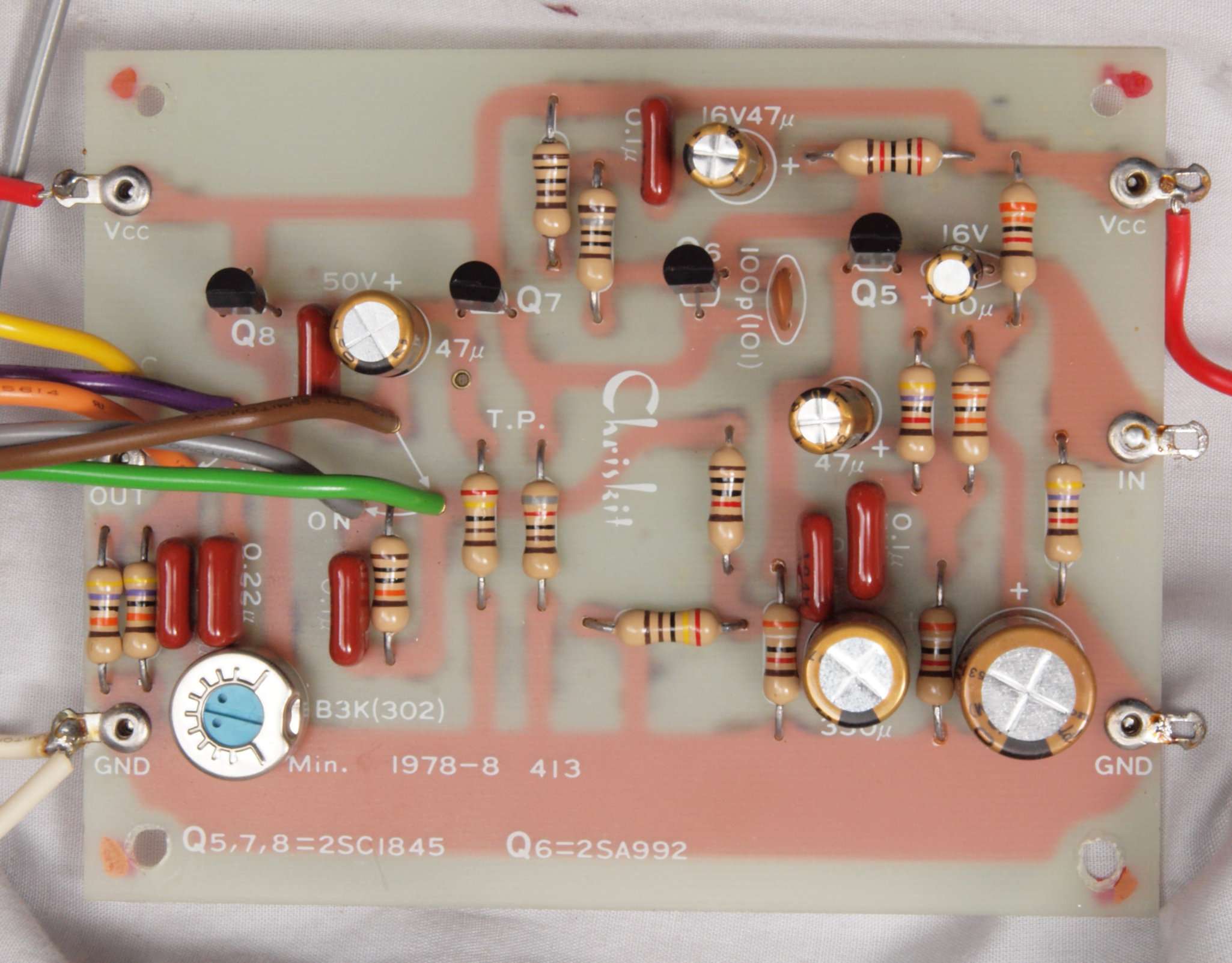 | C32. 修理後 右EQ−AMP基板 電解コンデンサー6個、TR(トランジスター)1個交換。 | ||||||||||||||||