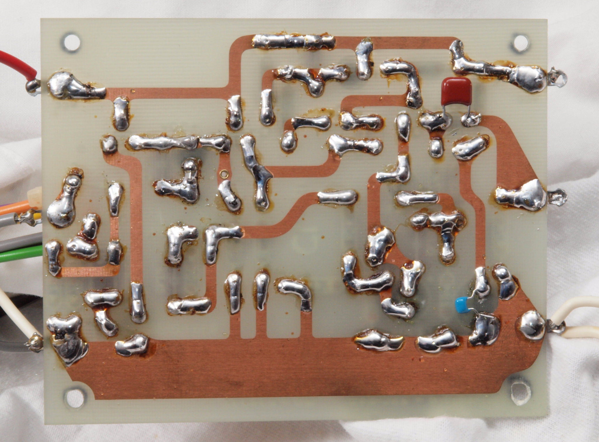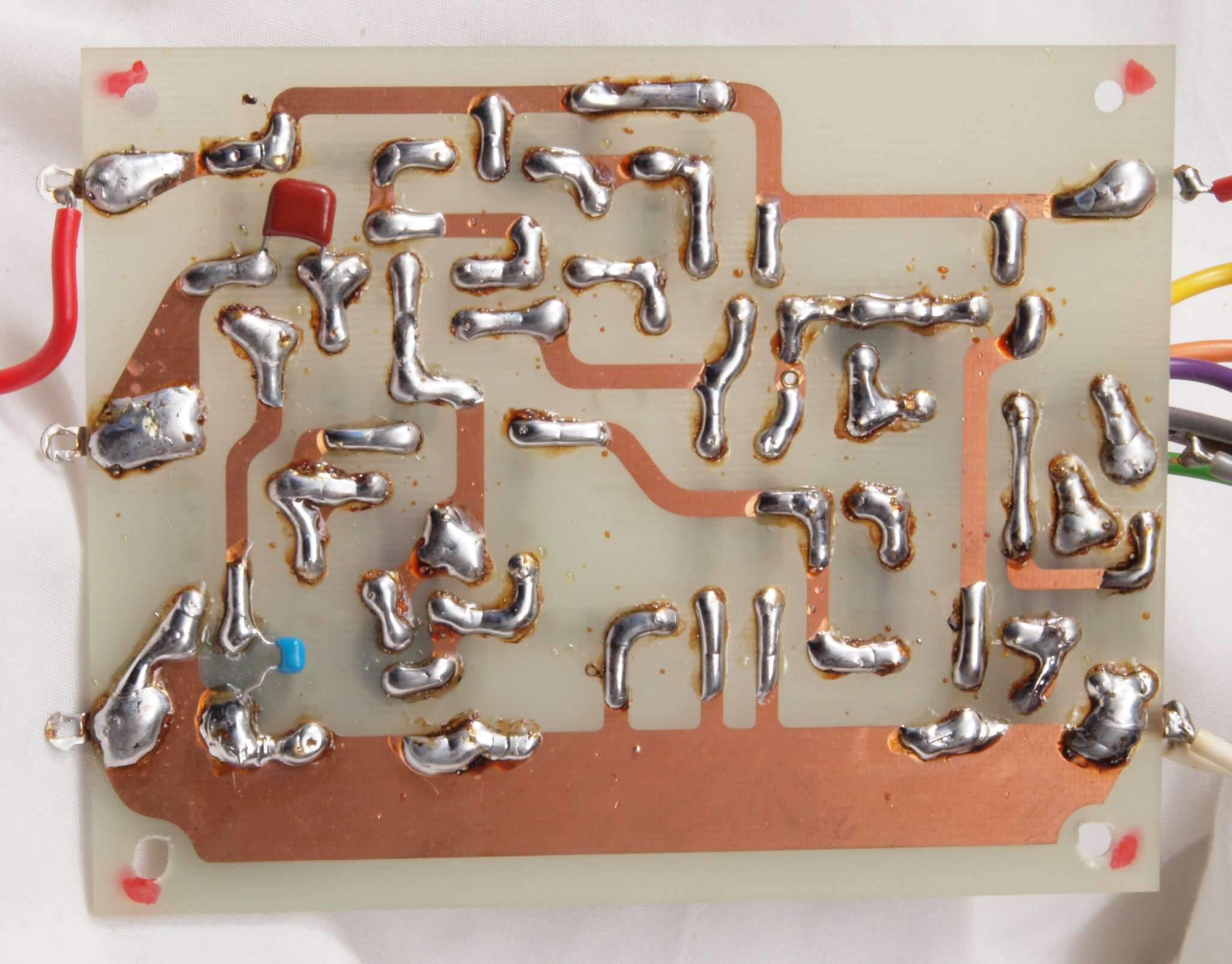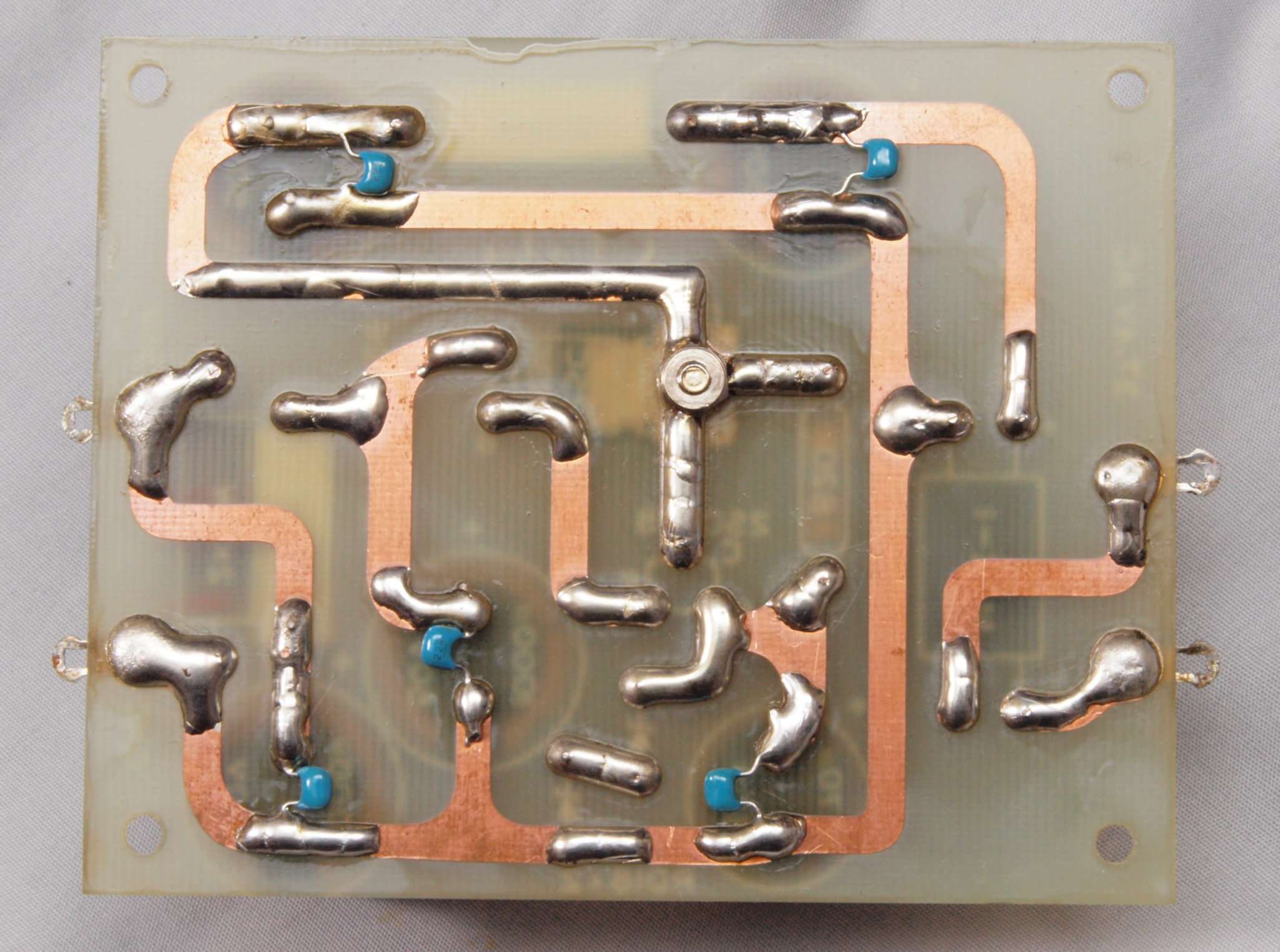 | C74. 修理(半田補正)後 電源基板裏 全ての半田をやり修す。セラミックコンデンサー5個追加。 | ||||||||||||||||