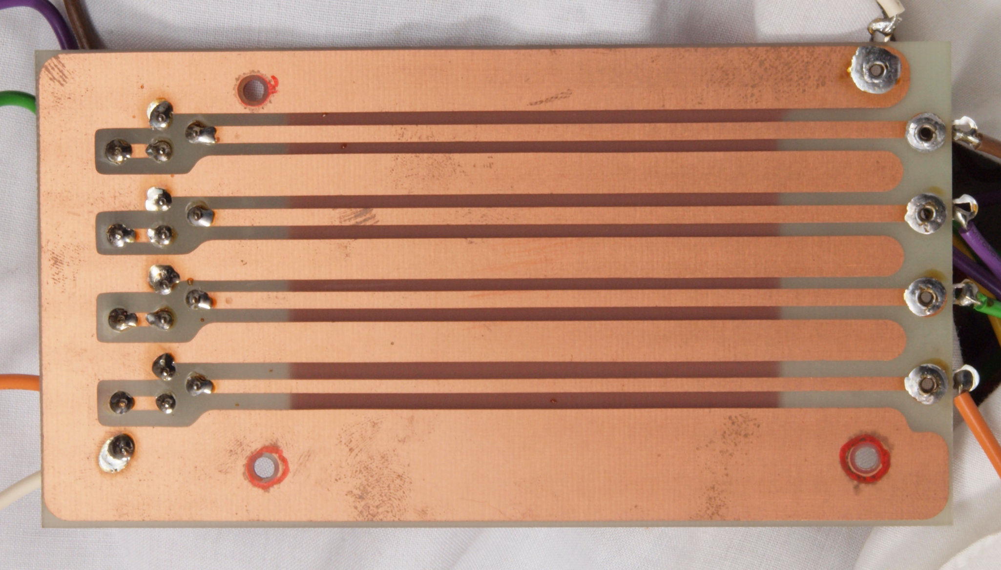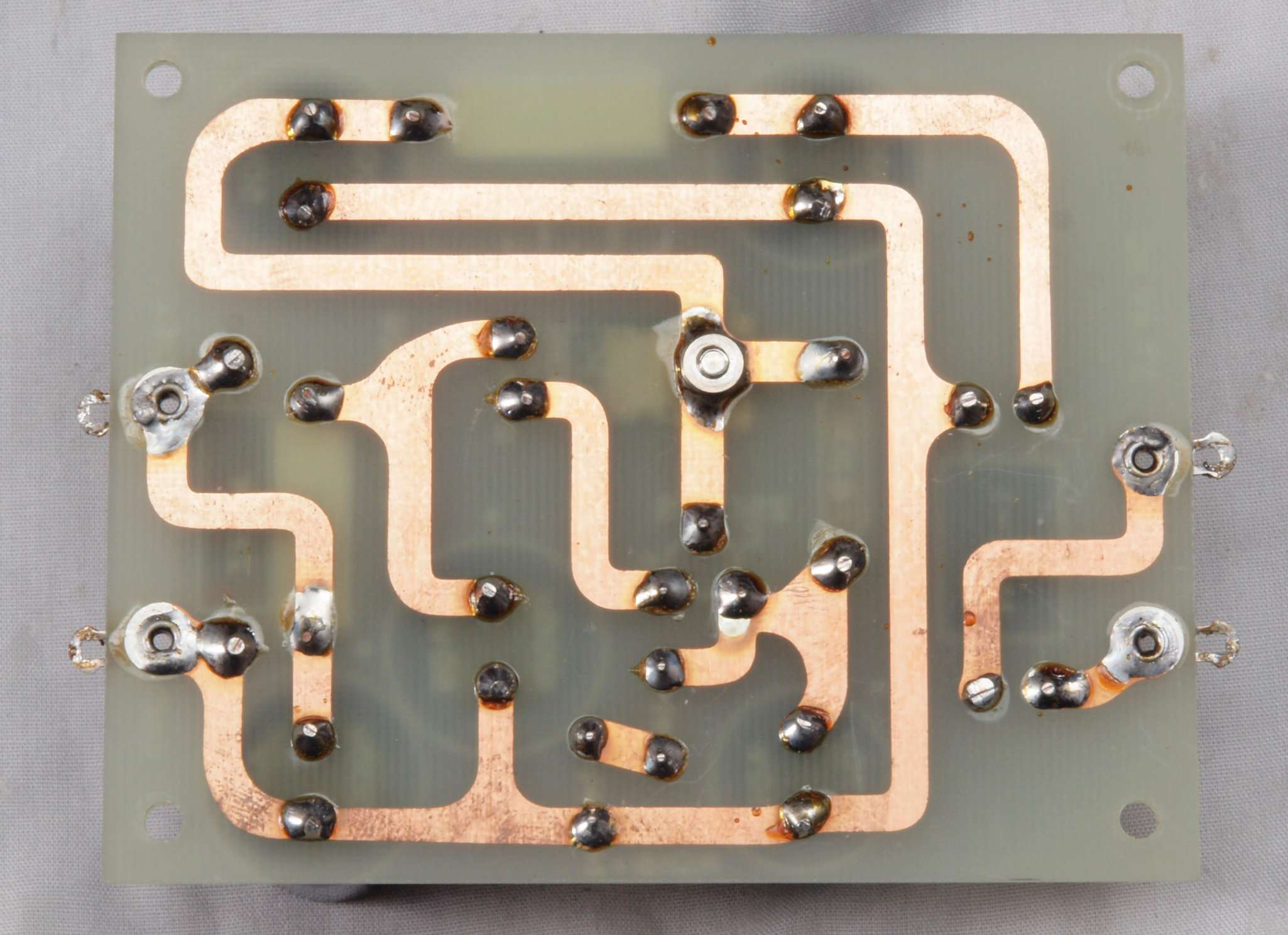 | C24. 修理(半田補正)後 左AMP基板裏 全ての半田をやり修す。フイルムコンデンサー1個、セラミックコンデンサー1個追加。 | ||||||||||||||||