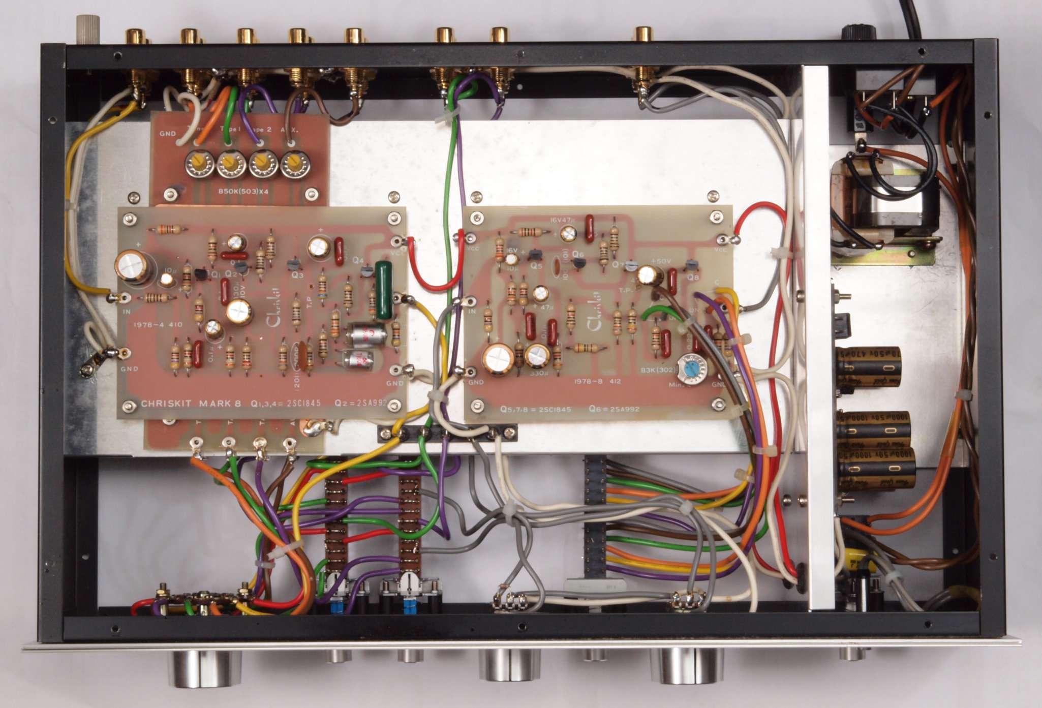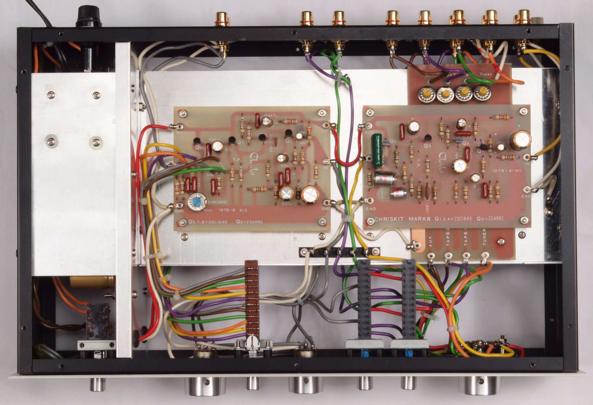 | A32. 点検中 後から見る。入出力RCA端子。テフロン絶縁製に交換可能。 | ||||||||||||||||