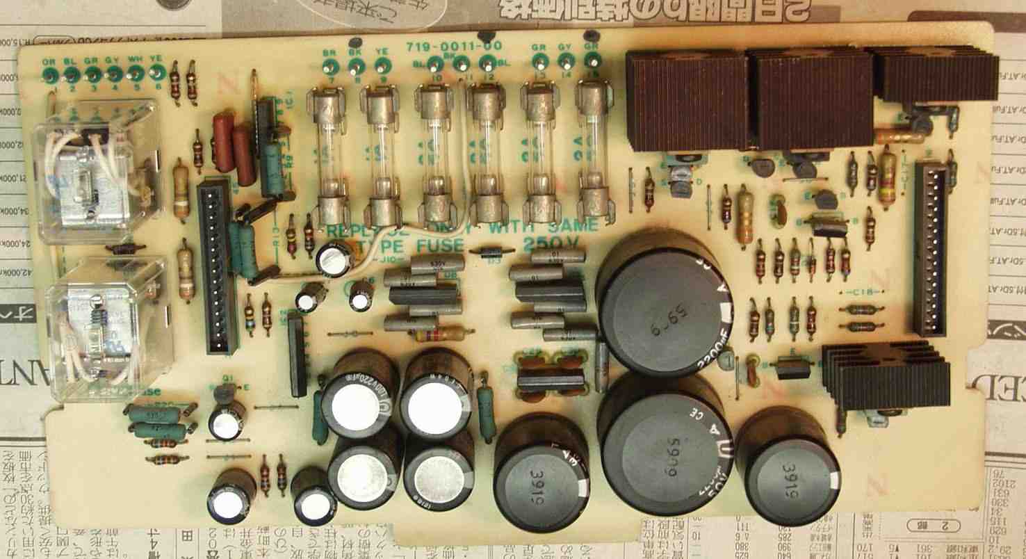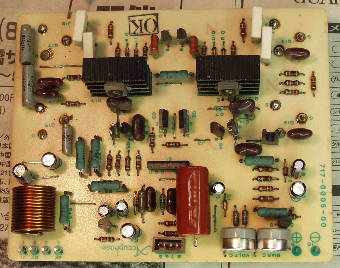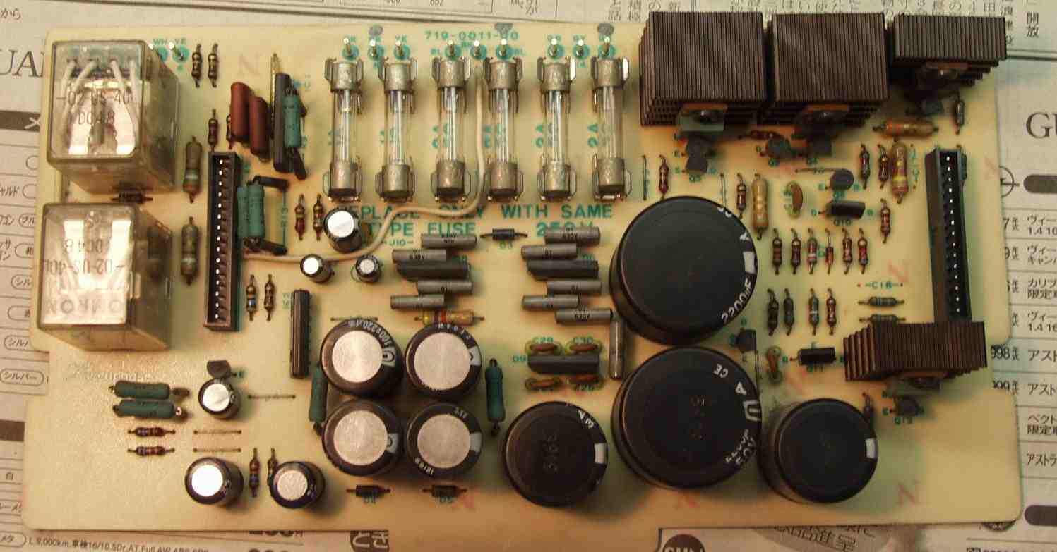 | C42. 修理後 終段基板 フイルムコンデンサー、電解コンデンサ−交換 |