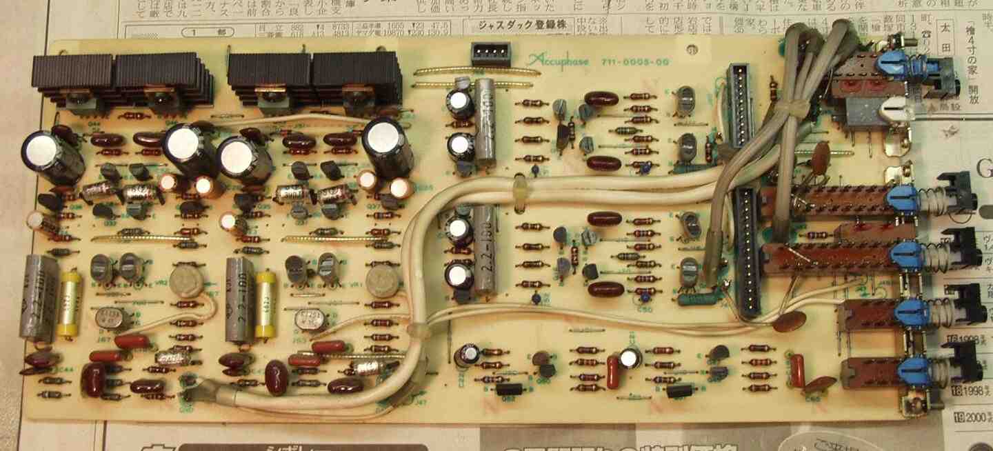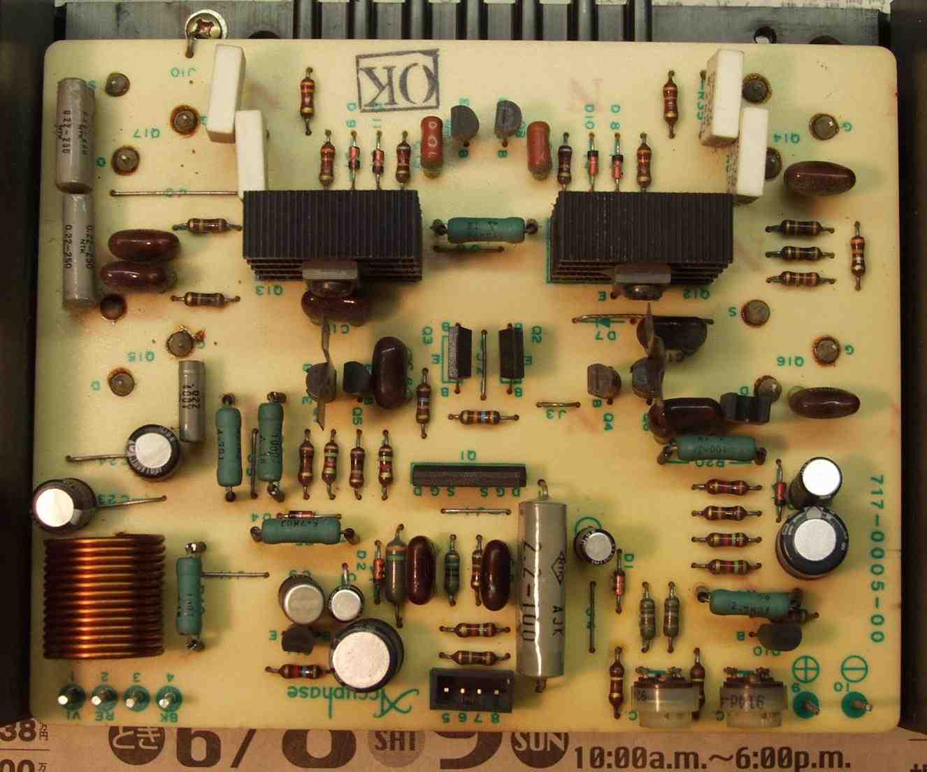 | C22. 修理後 コントロール基板 初段複合FET(電解効果トランジスター)、半固定VR交換 |