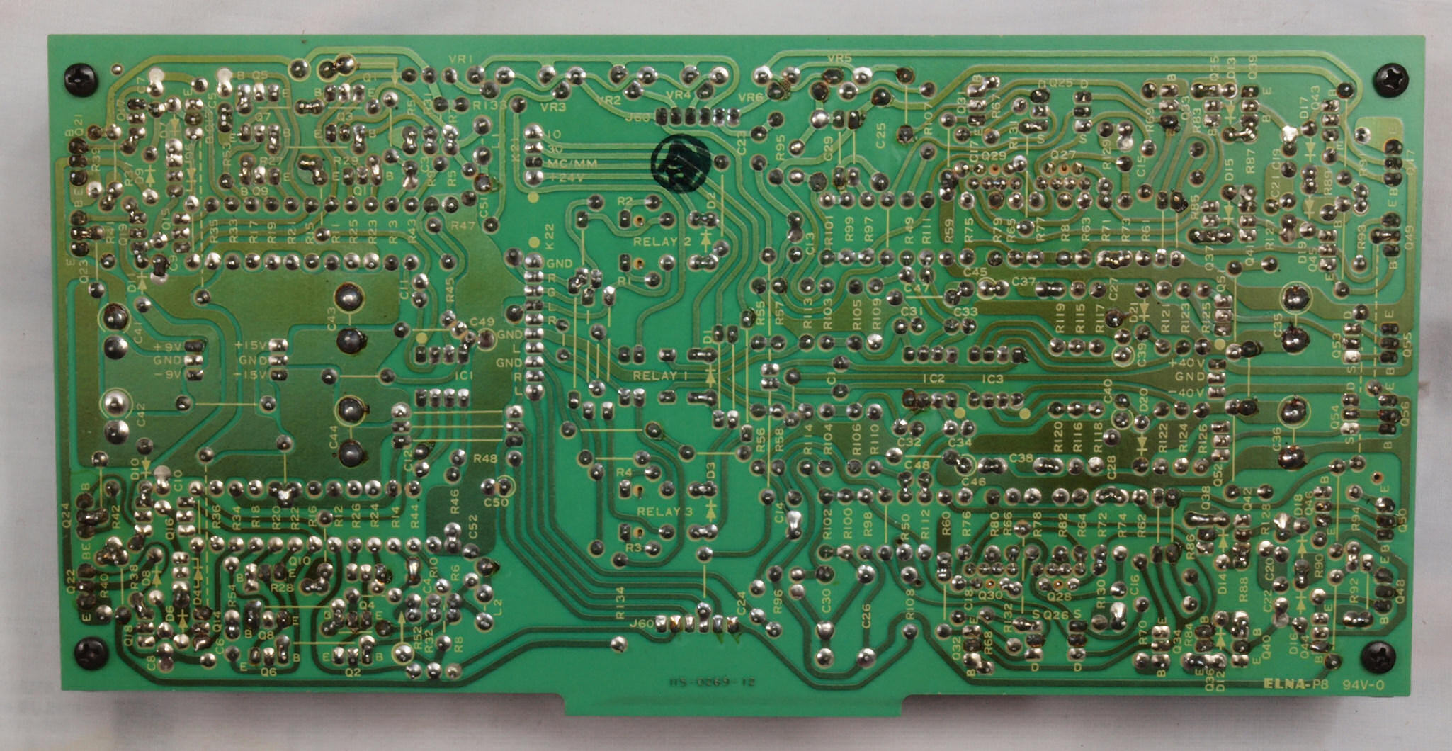| CC3. 修理前 ヘッドアンプ/イコライザーアンプ基板裏 | ||||||||||||||||||||||||||||||||||||||||||||||||||||||||||||||||||||||||||||||||||||||