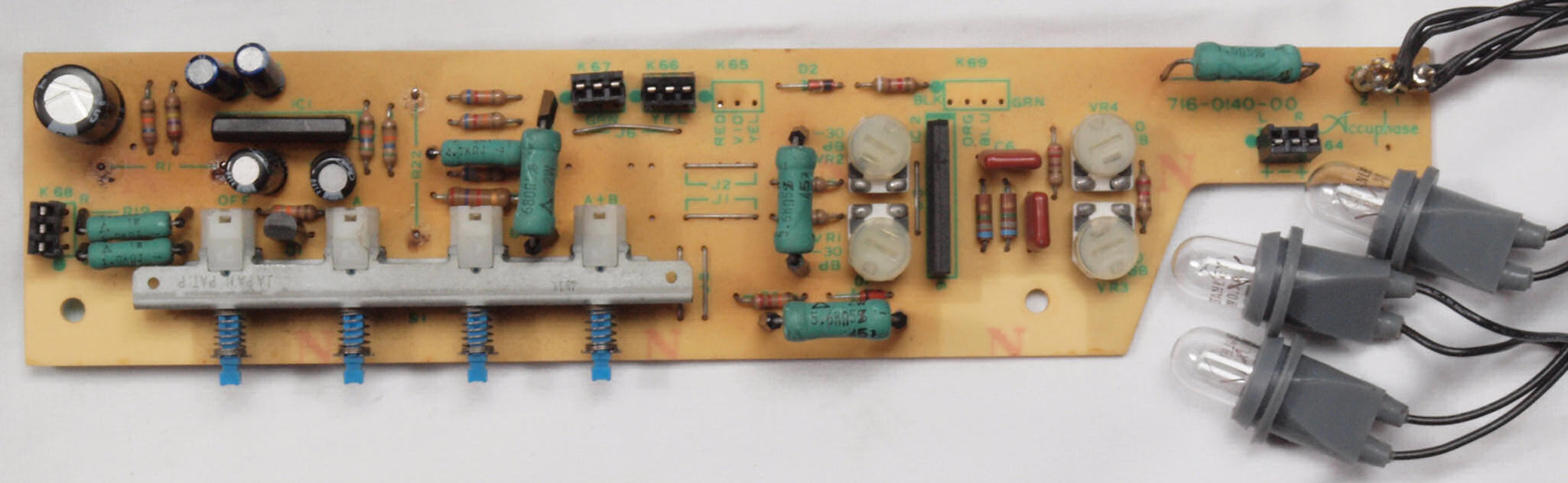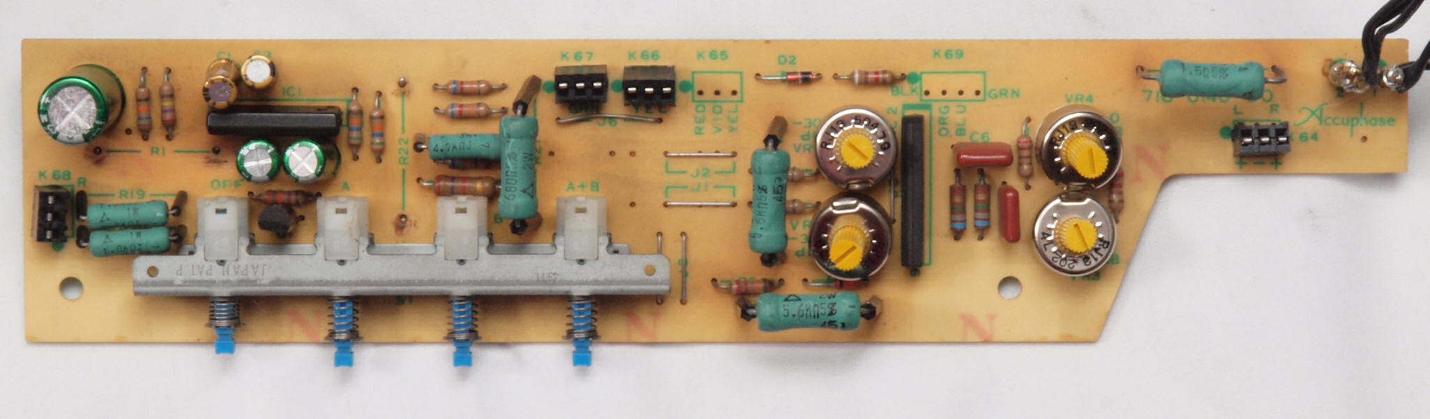 | C52. 修理後 トーン・コントロールSW基板。 電解コンデンサ−12個交換。 | ||||||||||||||||||||||||||||||||||||||||||||||||||||||||||||||||||||||||||||||||||||||