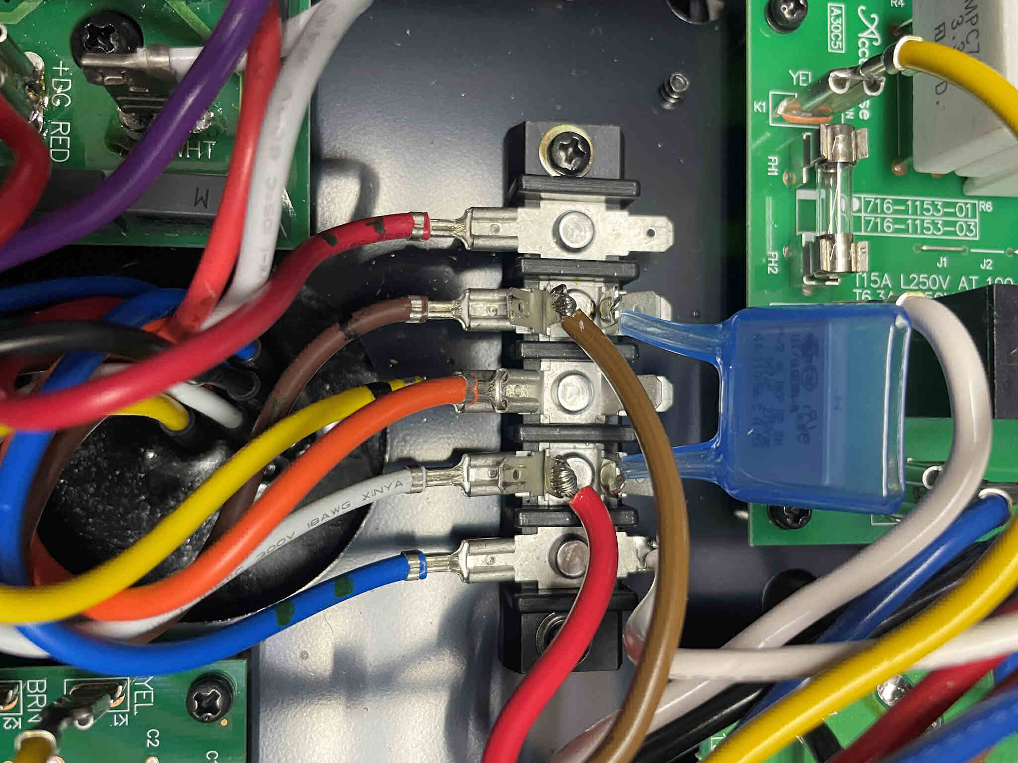 A2. 修理後 230V結線、ヒューズは6.3Aに変更する。
