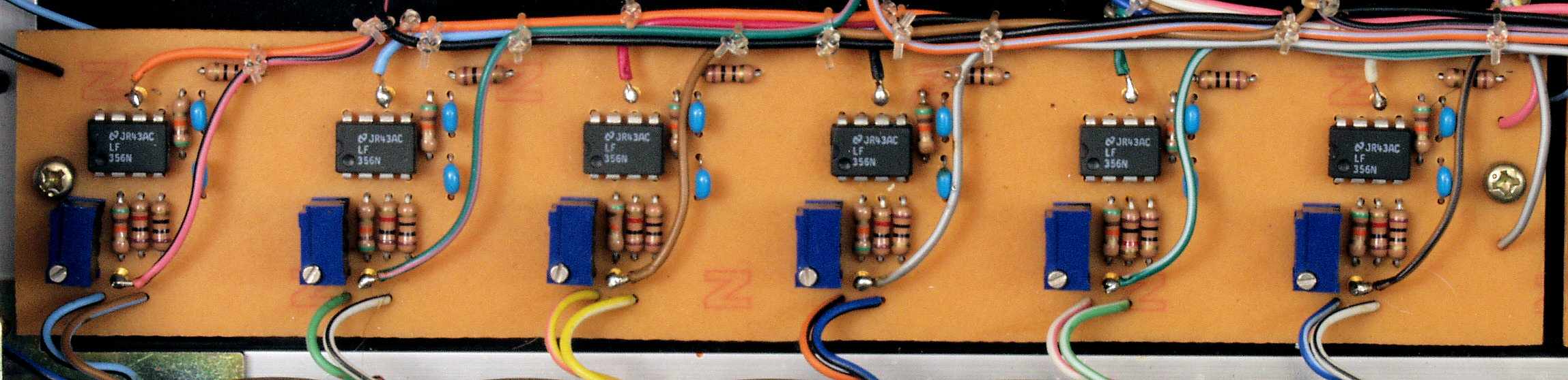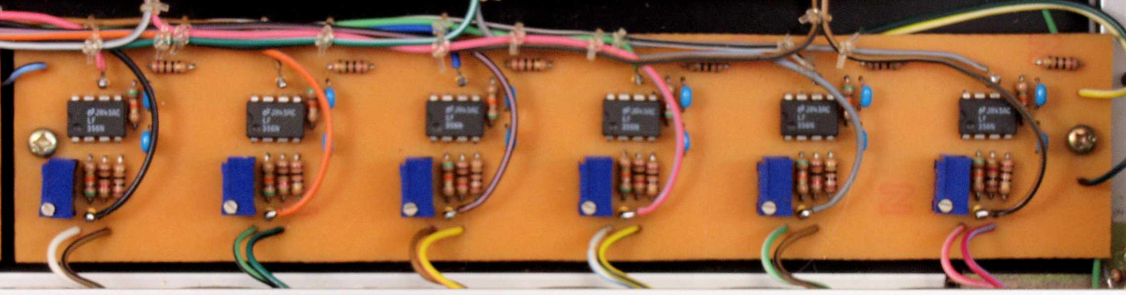| EE26. 入出力特性測定チャネル6、入力電圧=1V一定入力、VRはmax、左出力=薄(細い)色 右出力=濃い(太い)色 未使用(未設定)チャネル。 |