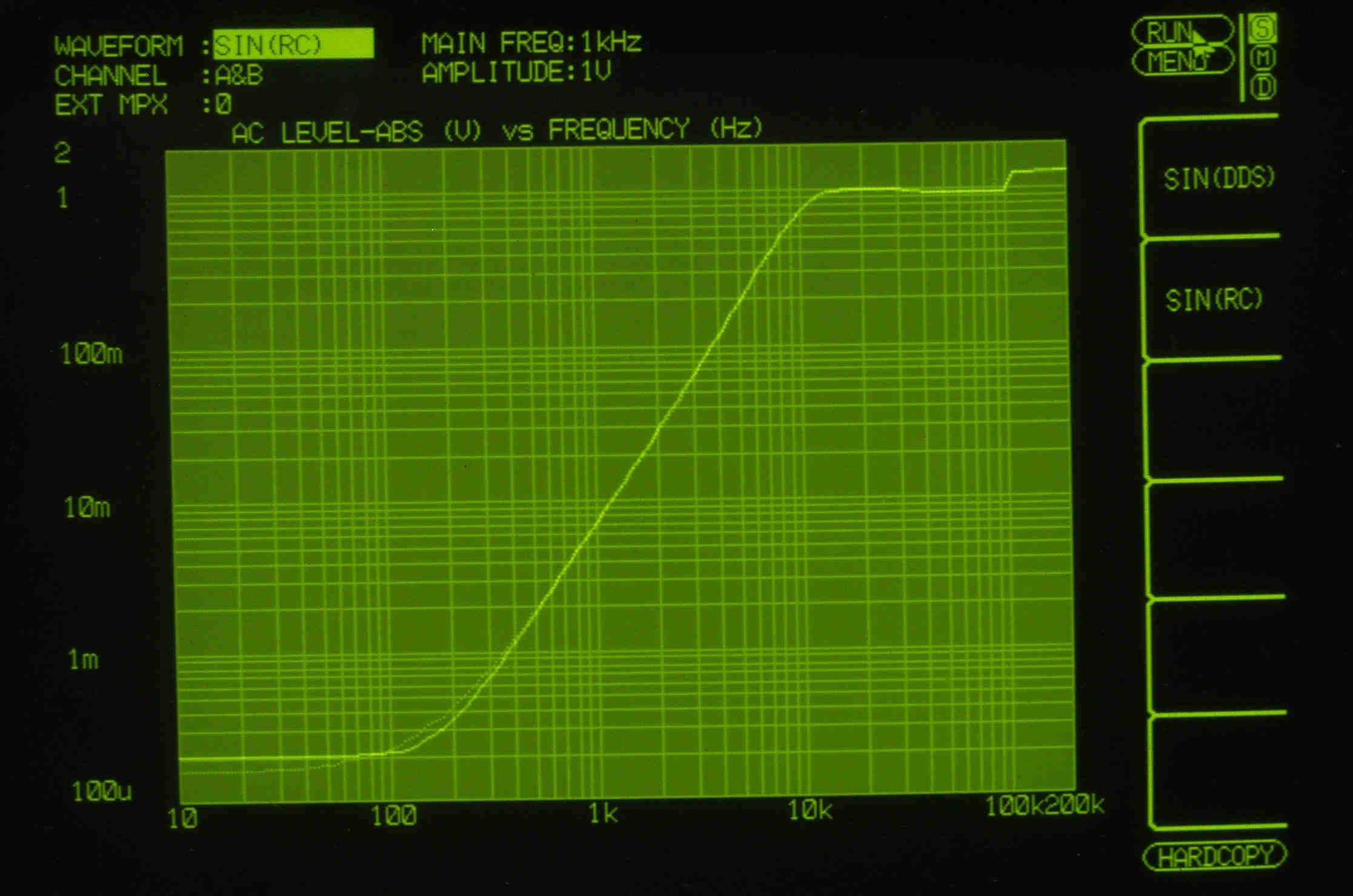 | EE21. 入出力特性測定チャネル1、入力電圧=1V一定入力、VRはmax、左出力=薄(細い)色 右出力=濃い(太い)色 |