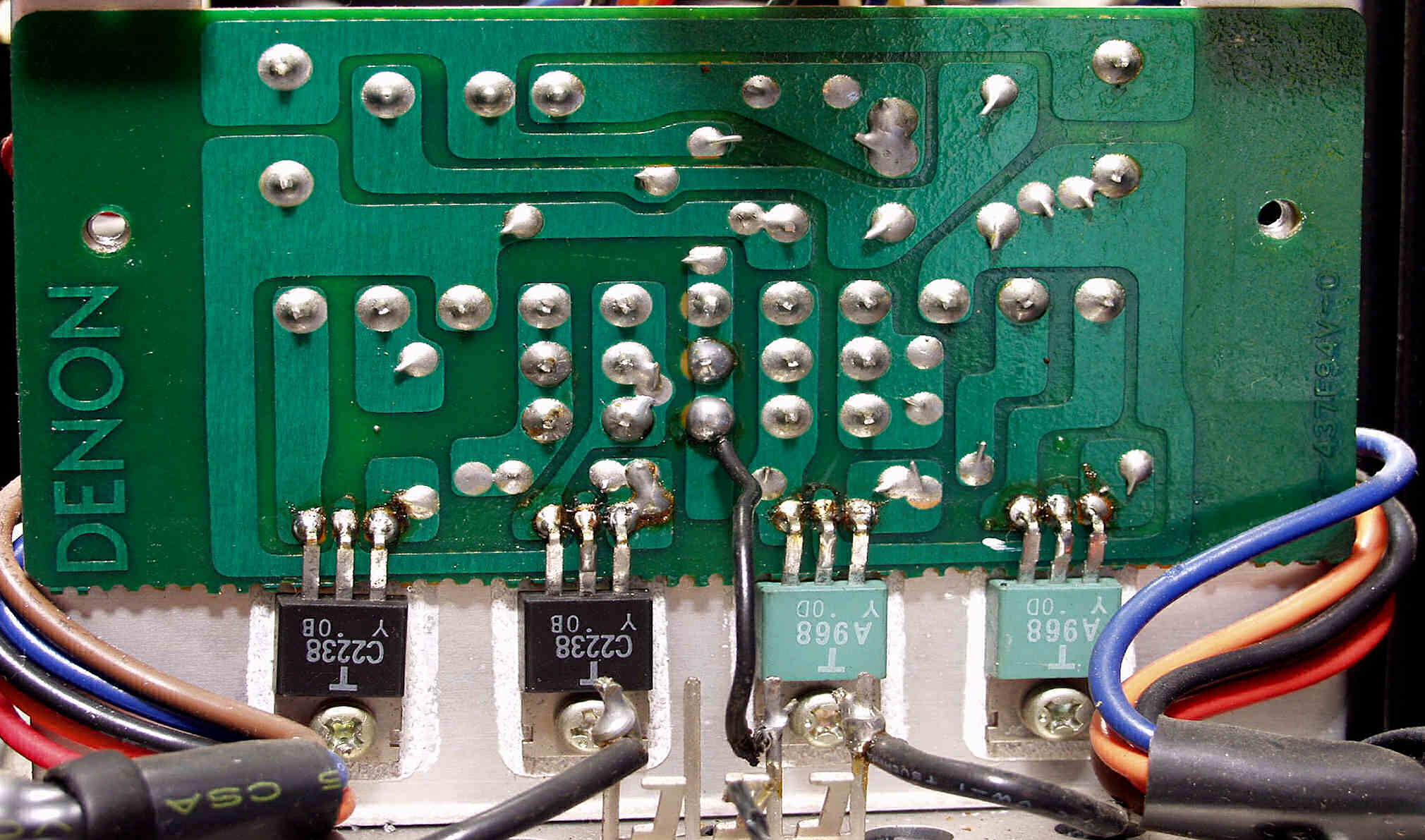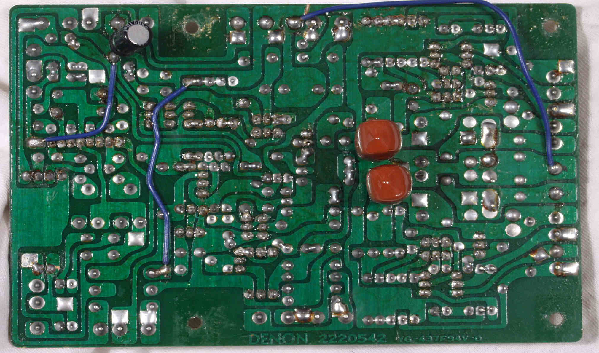 | C−2D. 修理(半田補正)後 R入力AMP・電源基板 裏 半田を全部やり直す | ||||||||||||||||||||||||||||||||||||||||||