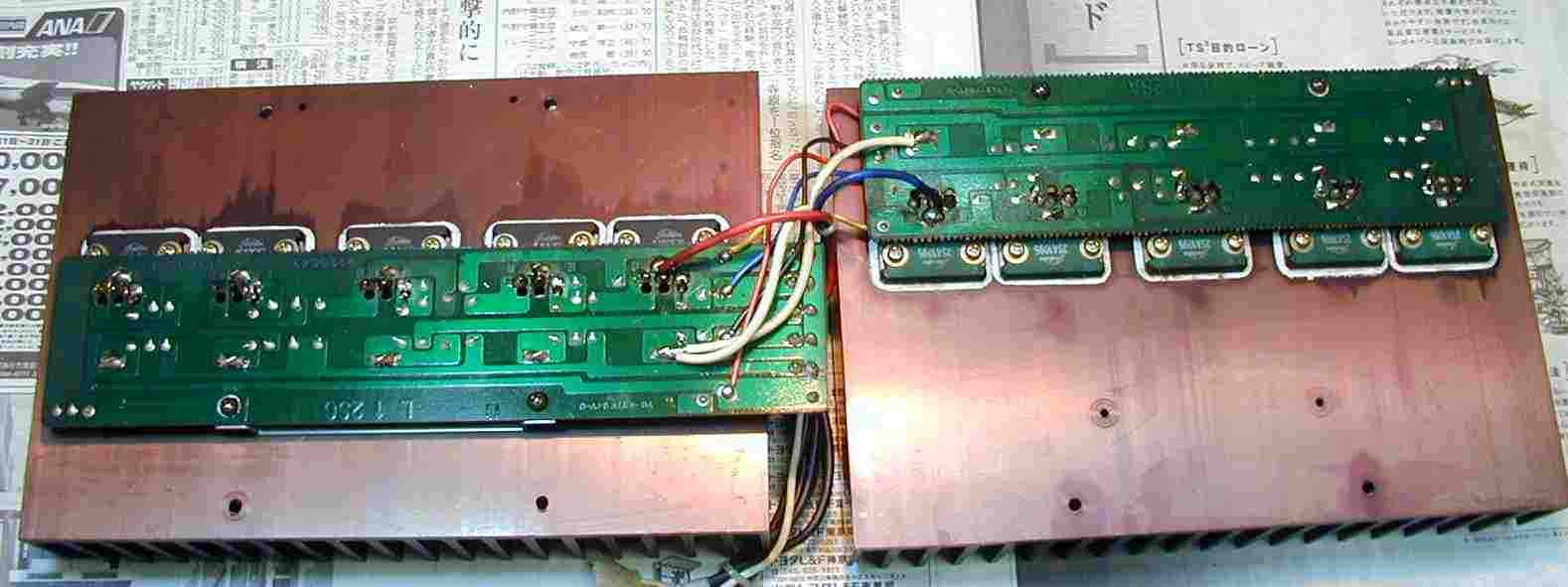 | 記載事項は、修理継続中で確定では有りません。 片側終段TR(トランジスター)全滅、ドライブ基板の被害甚大なので、 修理費が市場価格を超えるので、部品取りのジャンク品の出を待つ |