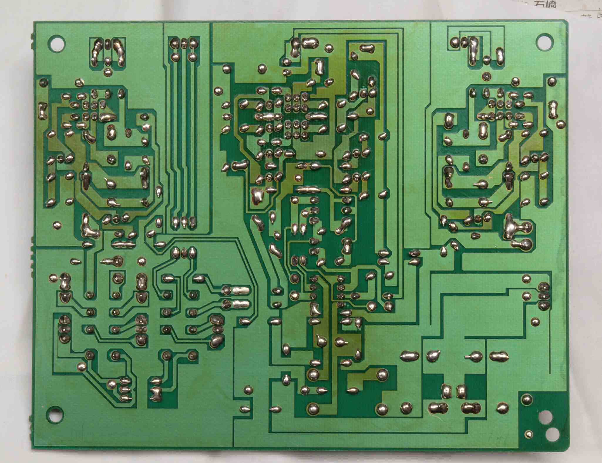 | CD4. 修理(半田補正)後 定電圧基板裏。 半田を全部やり直す。 | ||||||||||||||||||||||||||||||||||||||||||||||
