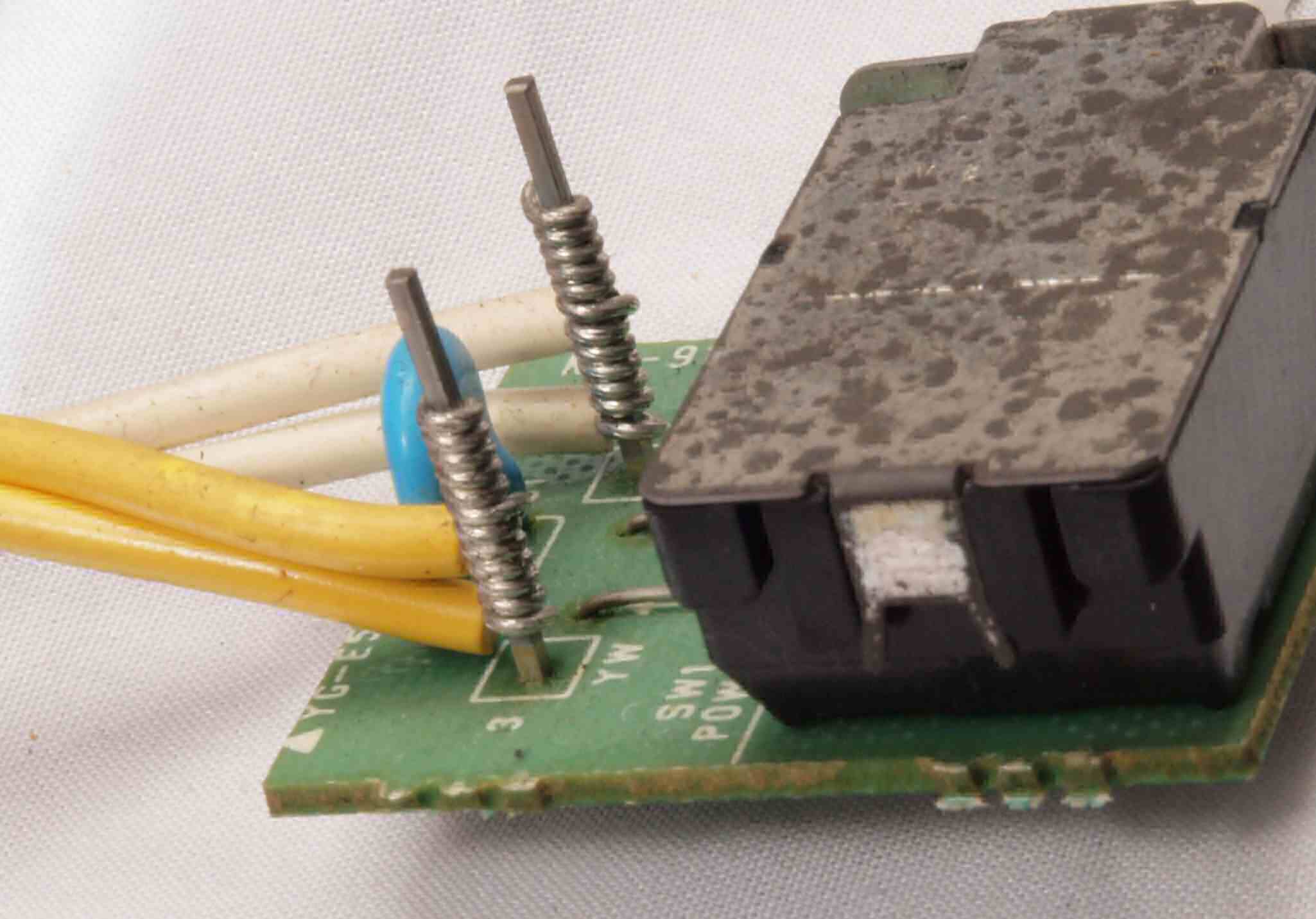 | CG1. 修理前 電源コード取り付け部。 | ||||||||||||||||||||||||||||||||||||||||||||||
