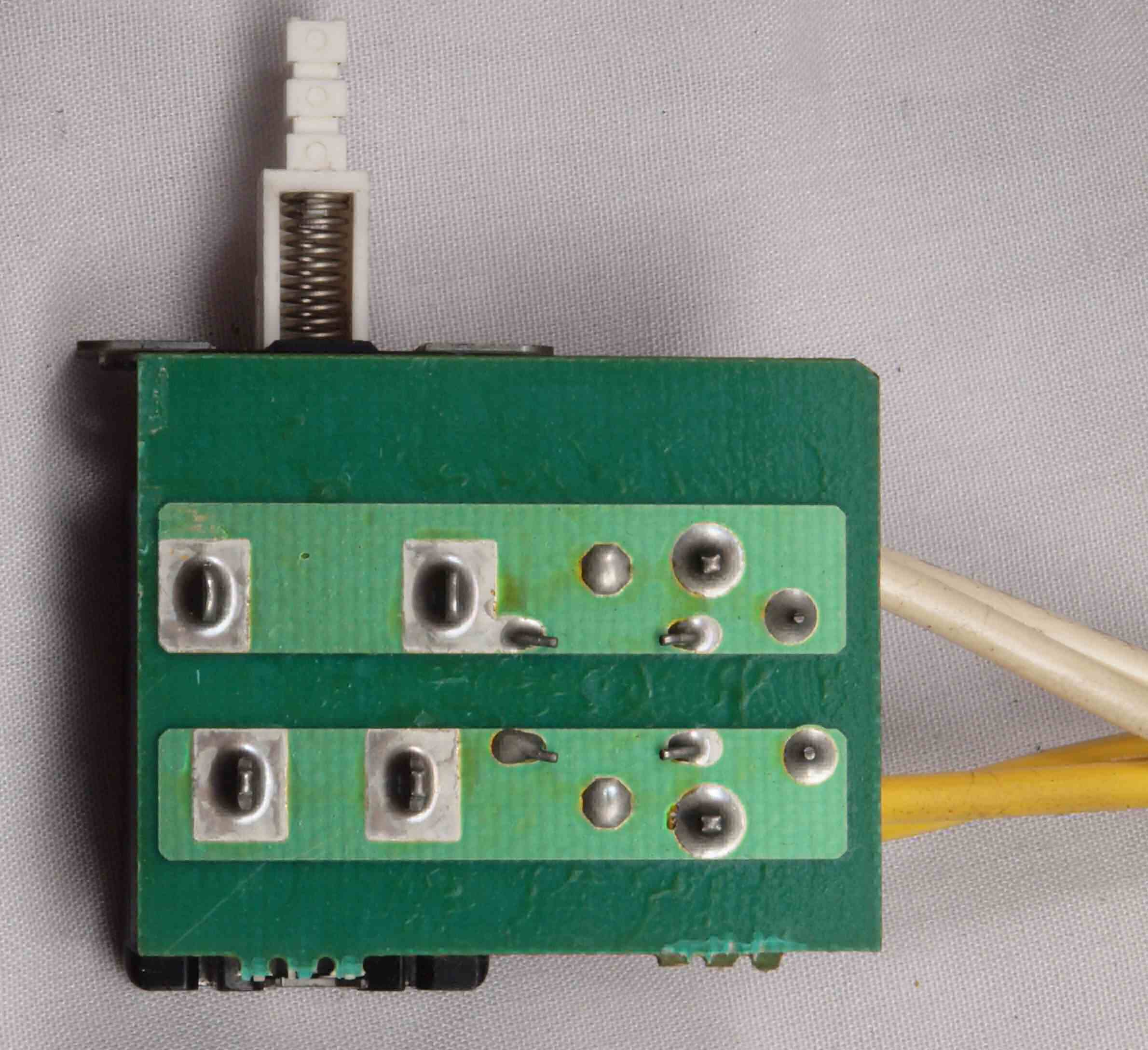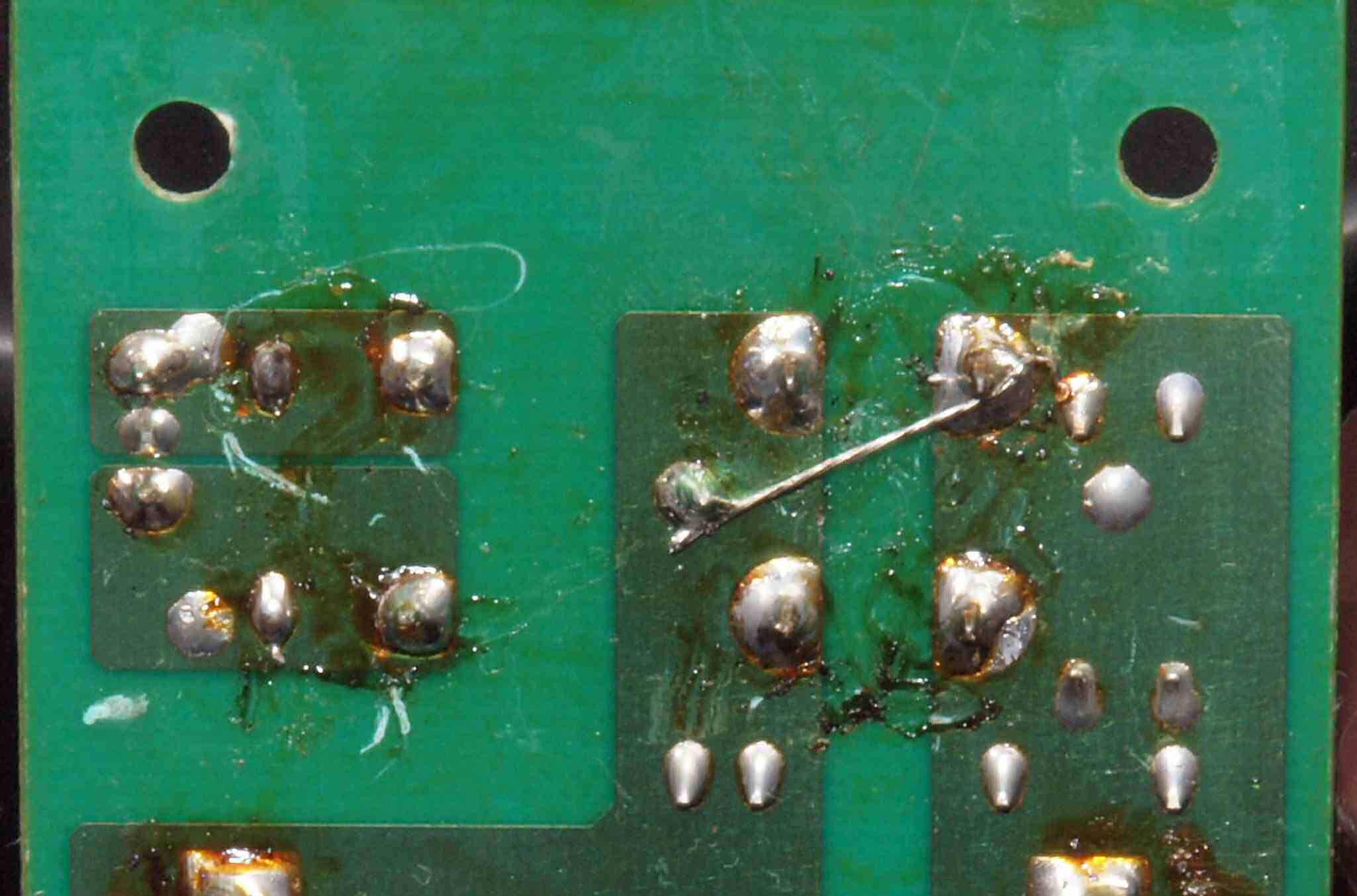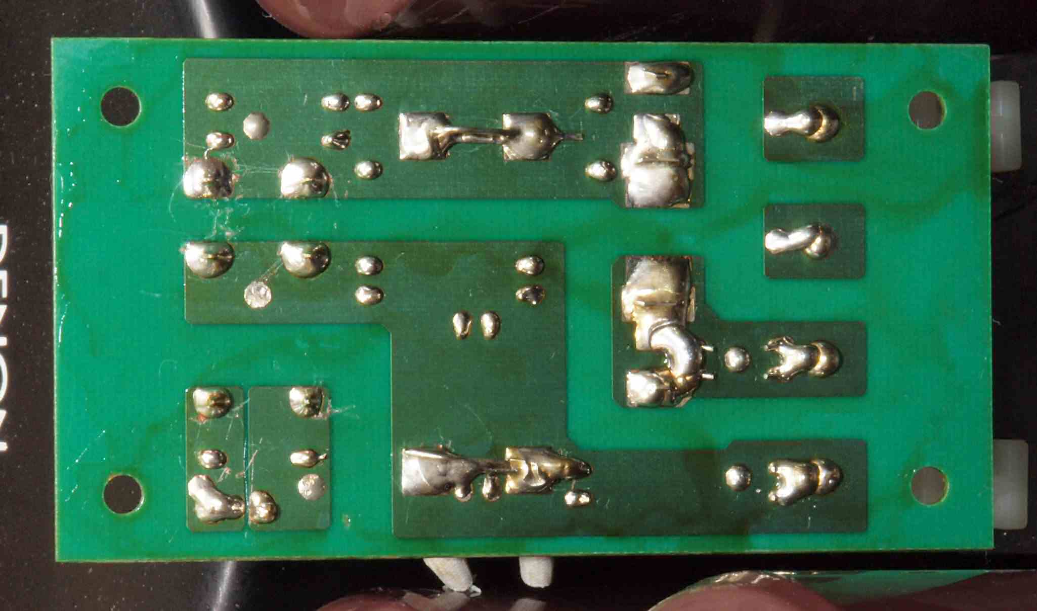 | C33. 修理(半田補正)後 Stereo/Mono切替SW基板裏。 半田を全部やり直す。 | ||||||||||||||||||||||||||||||||||||||||||||||