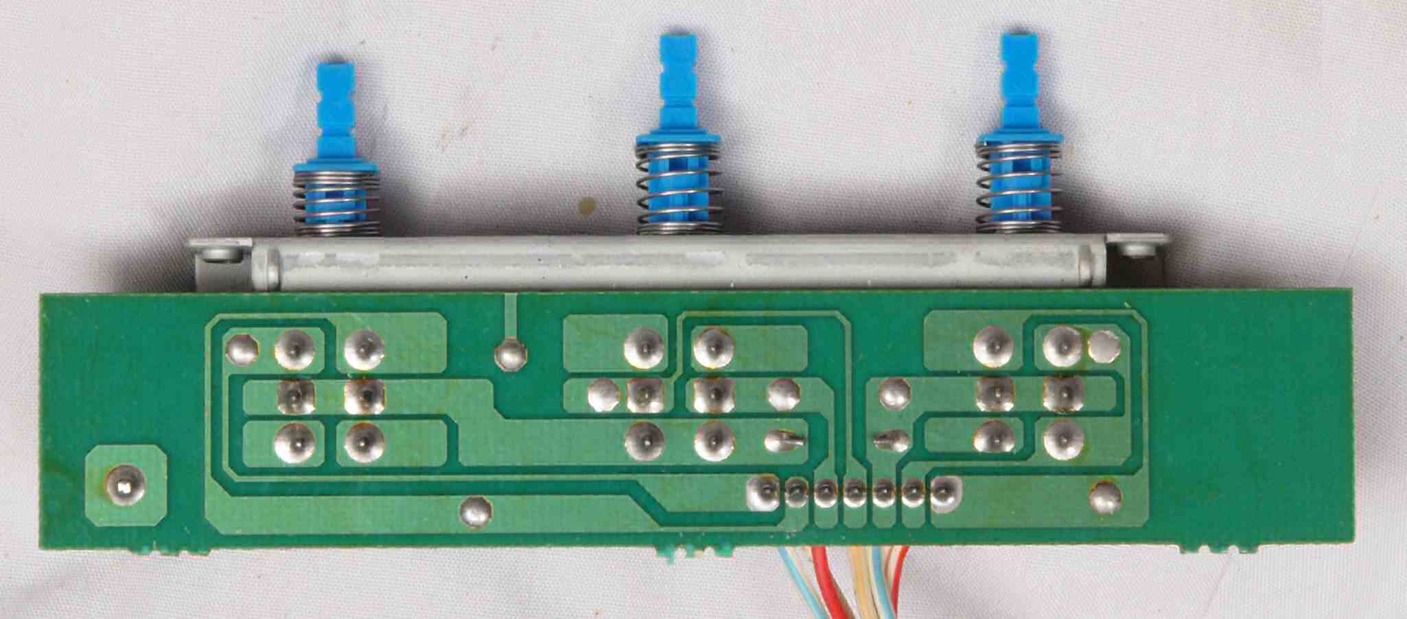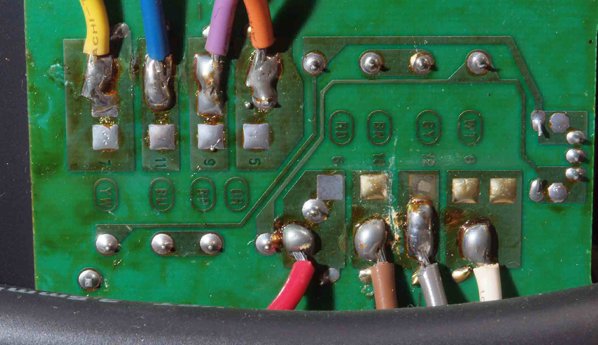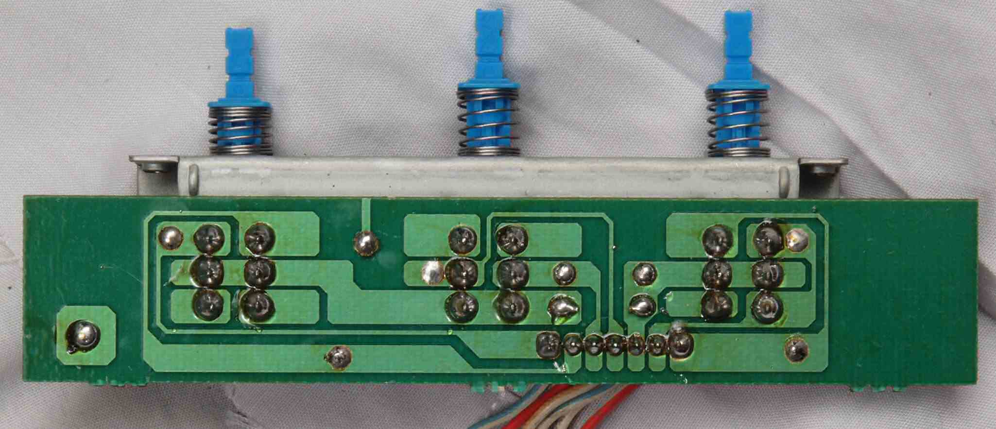 | CA3. 修理(半田補正)後 メーター、ミュート、入力選択SW基板裏。 半田を全部やり直す。 | ||||||||||||||||||||||||||||||||||||||||||||||