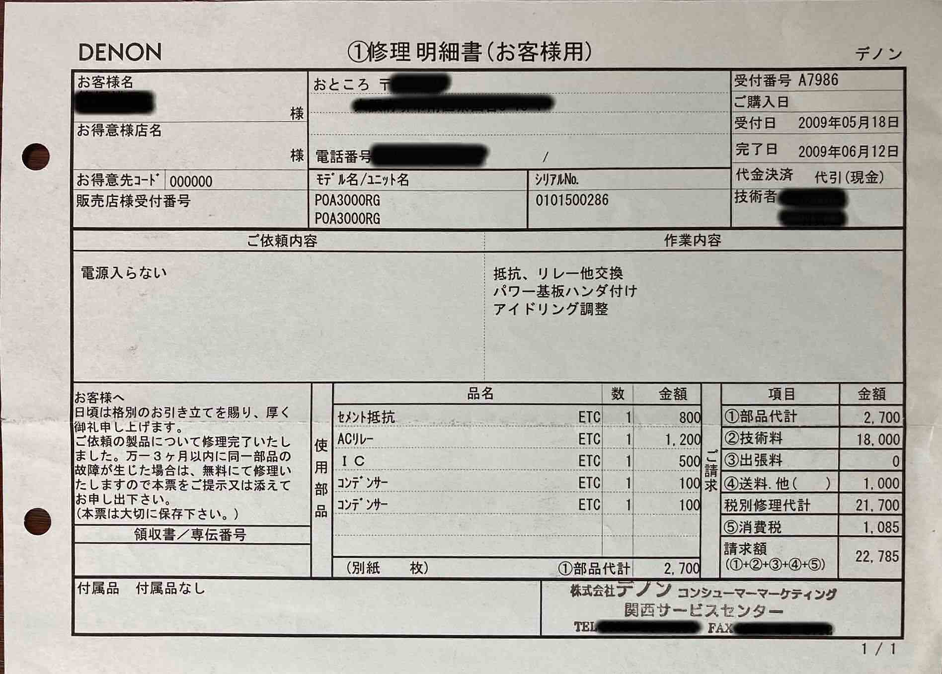 | A0. デノン関西サービスセンター修理伝票。 | ||||||||||||||||||||||||||||||||||||||||||||||