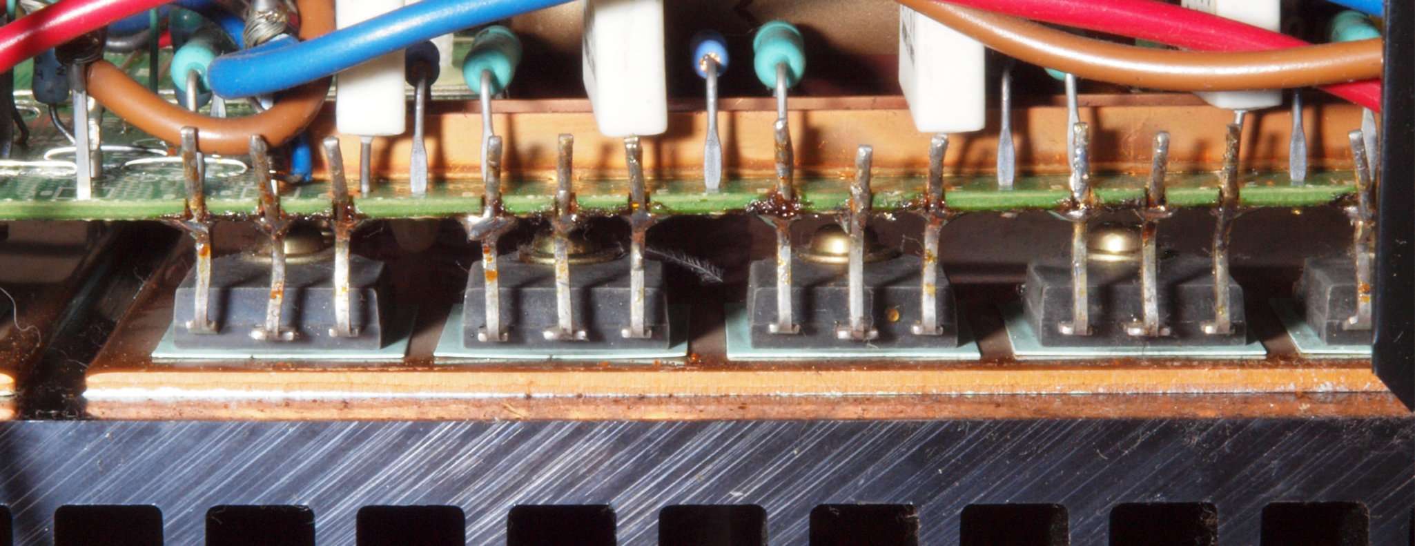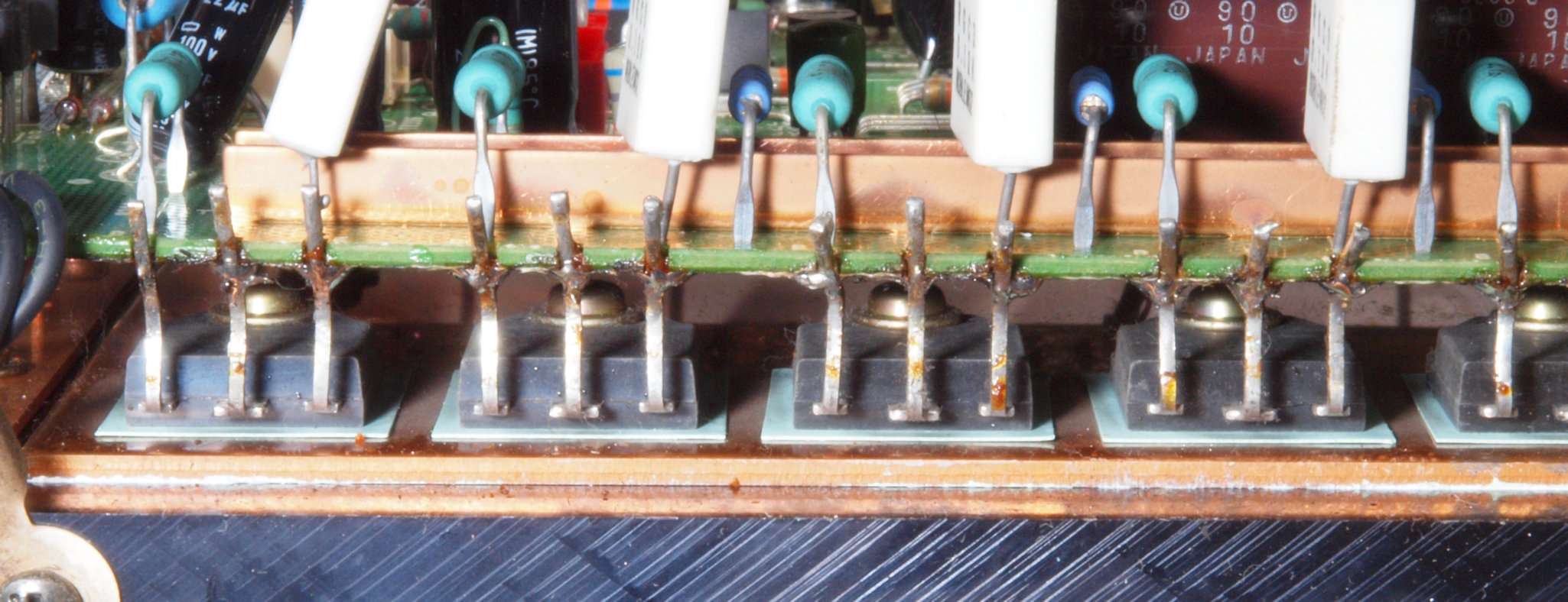 | A61. 点検中 前回修理の右側終段TR(トランジスター)足の半田。 | ||||||||||||||||||||||||||||||||||||||||||||||