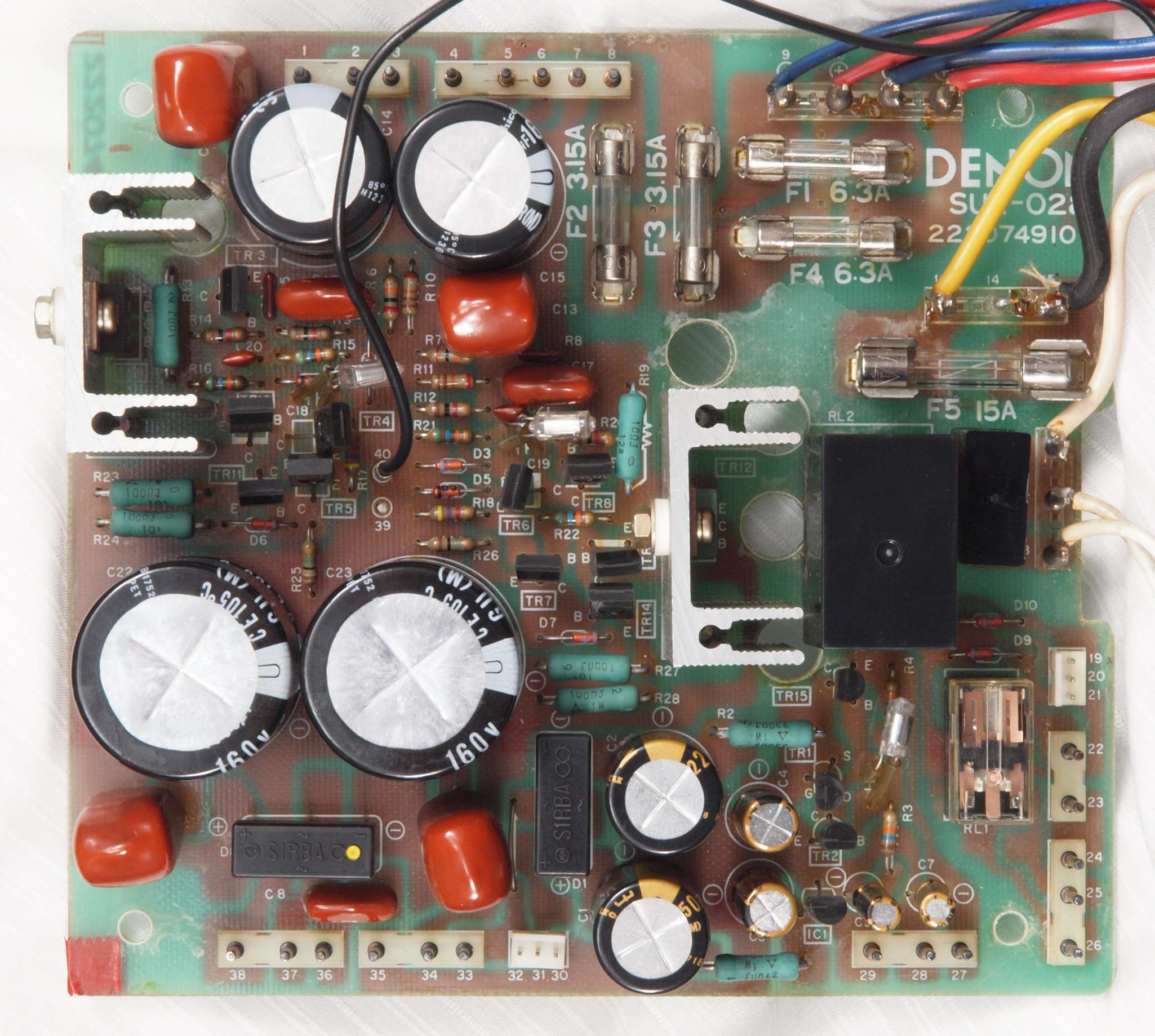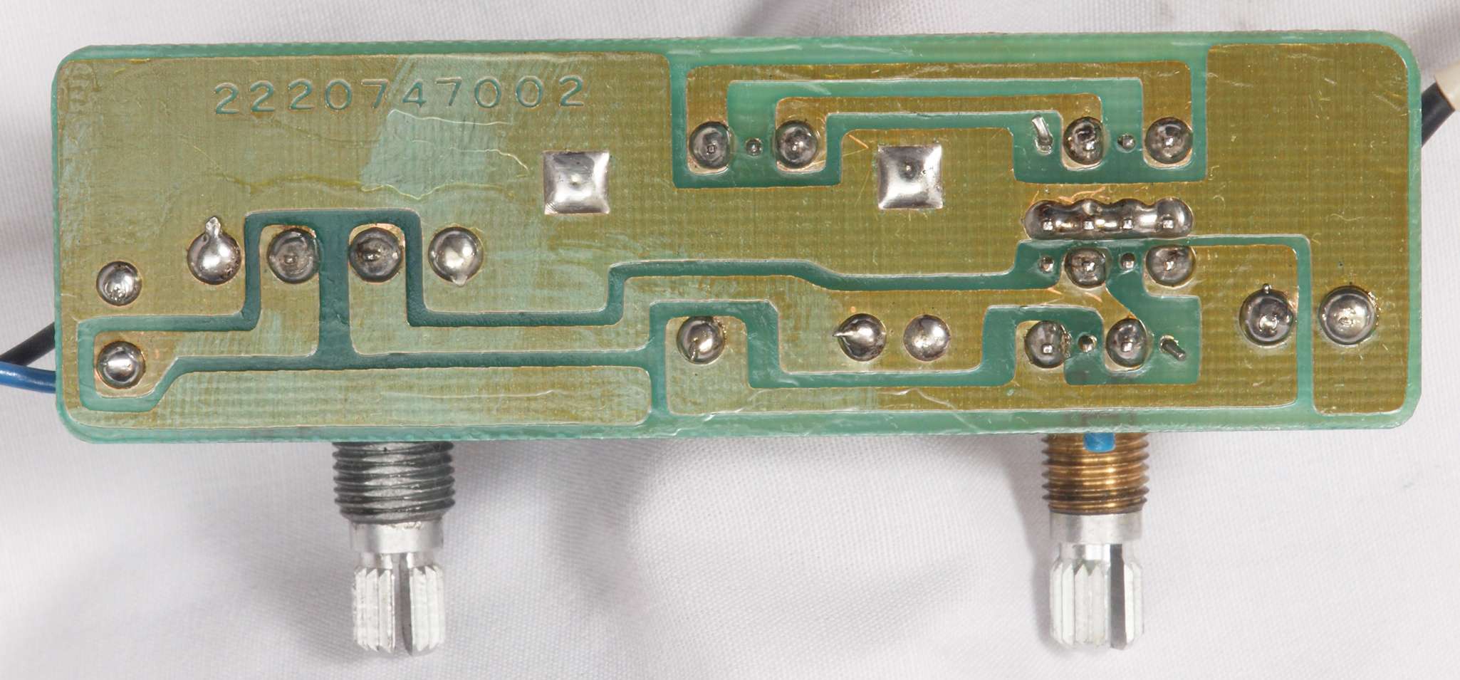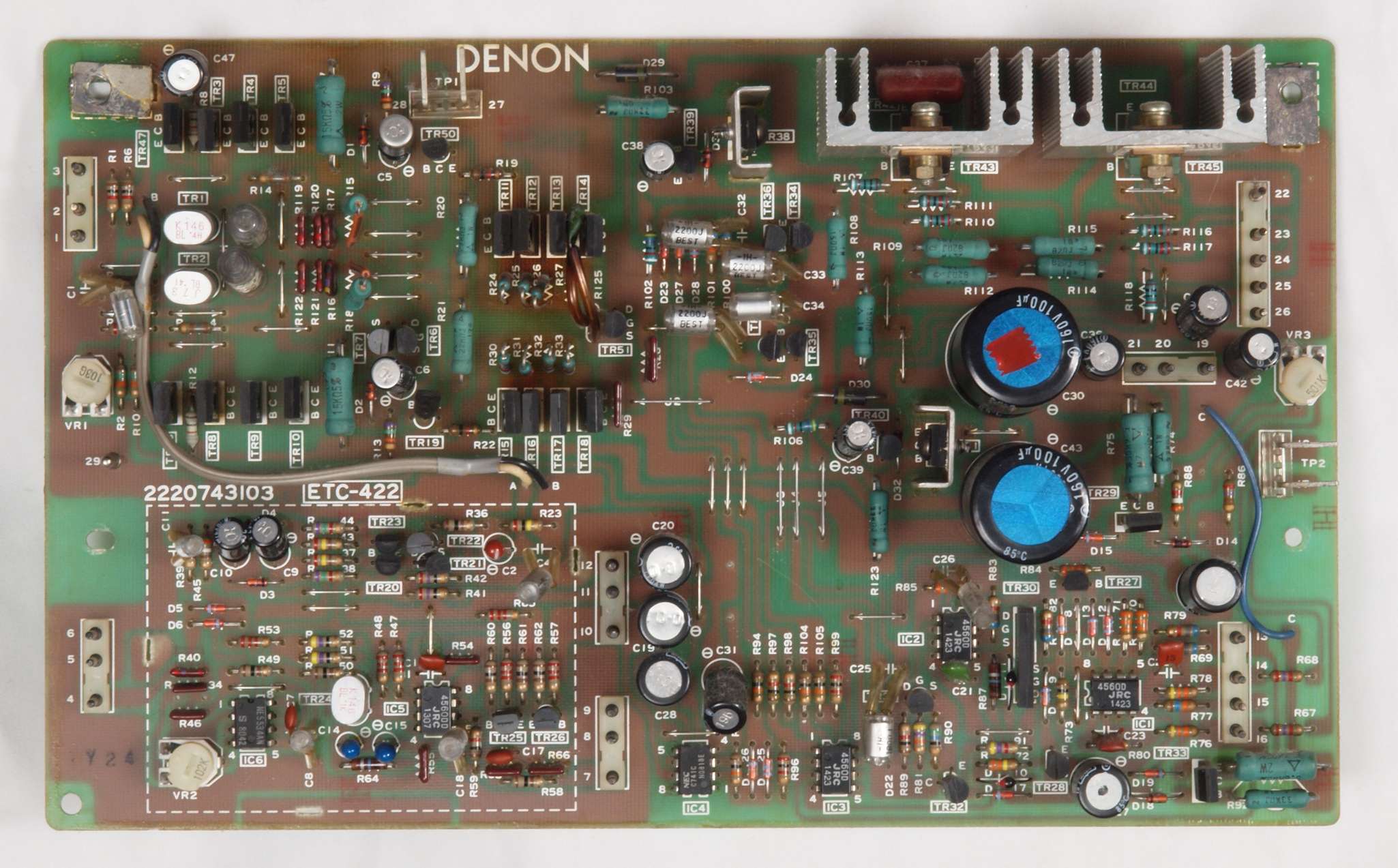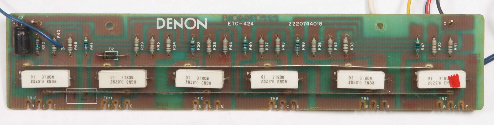 | C1G. 修理中 +−側終段AMP基板。 ジャンパー線、電解コンデンサーの足が腐食している。 | ||||||||||||||||||||||||||||||||||||||||||||||||||||||||