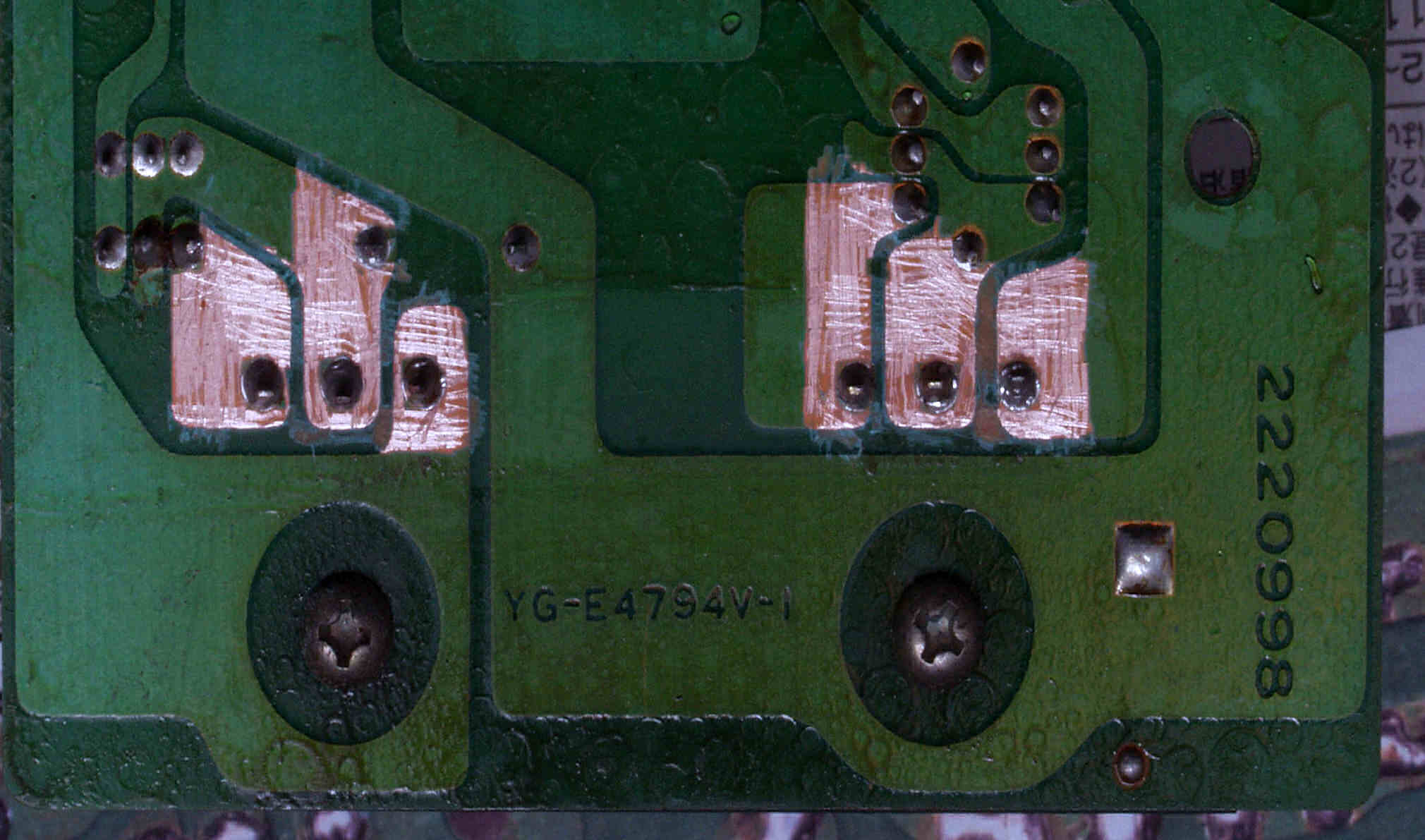 C234. 修理中 EQ−HEAD-AMP基板裏  ハンダ不良ヶ所3