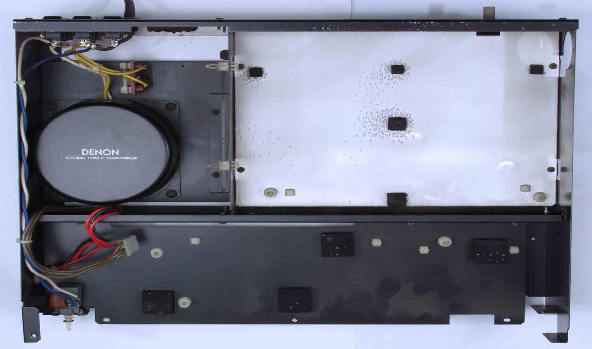 C121. 修理中 基板を全て取り除いたシャーシを下から見る