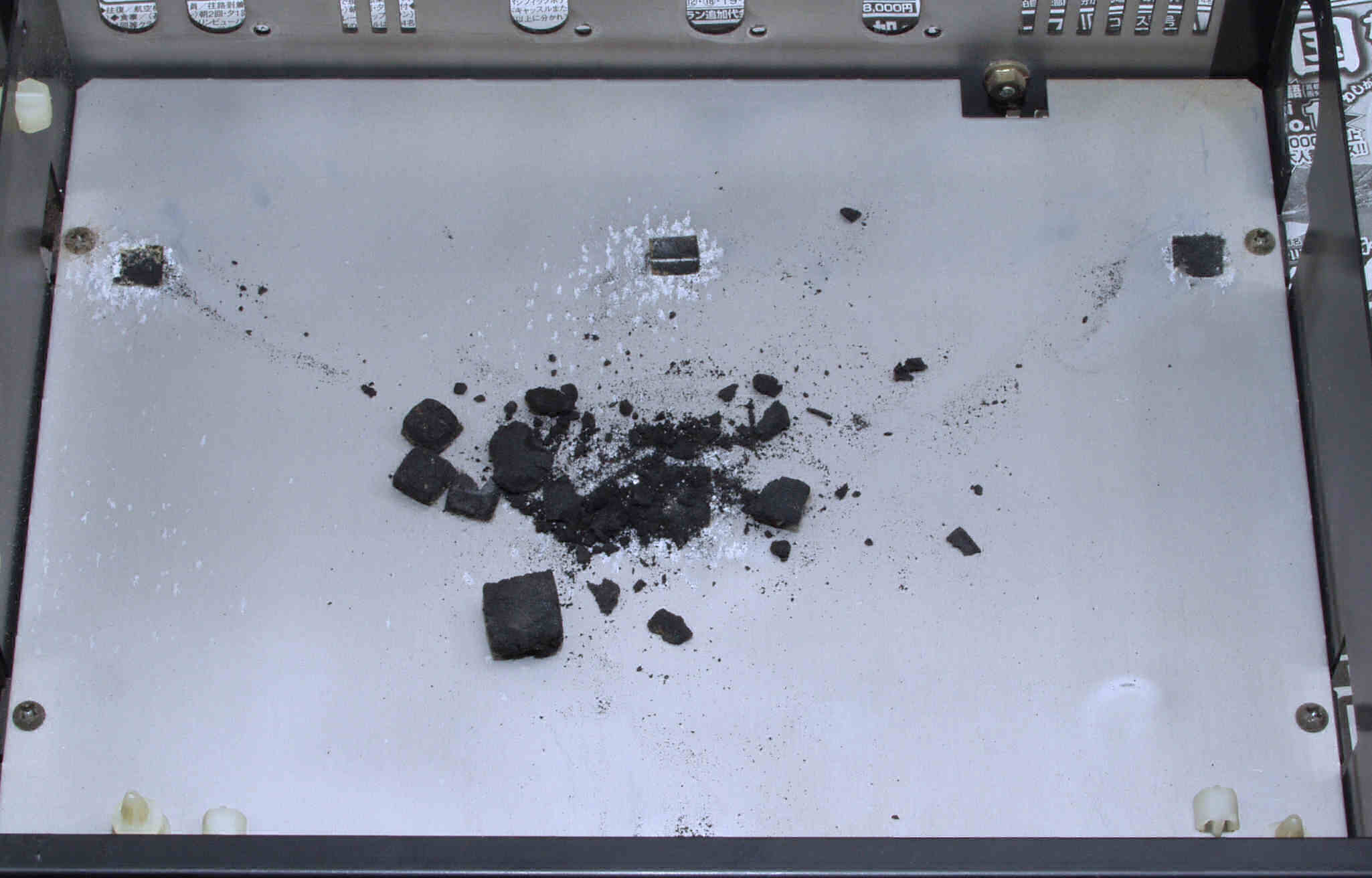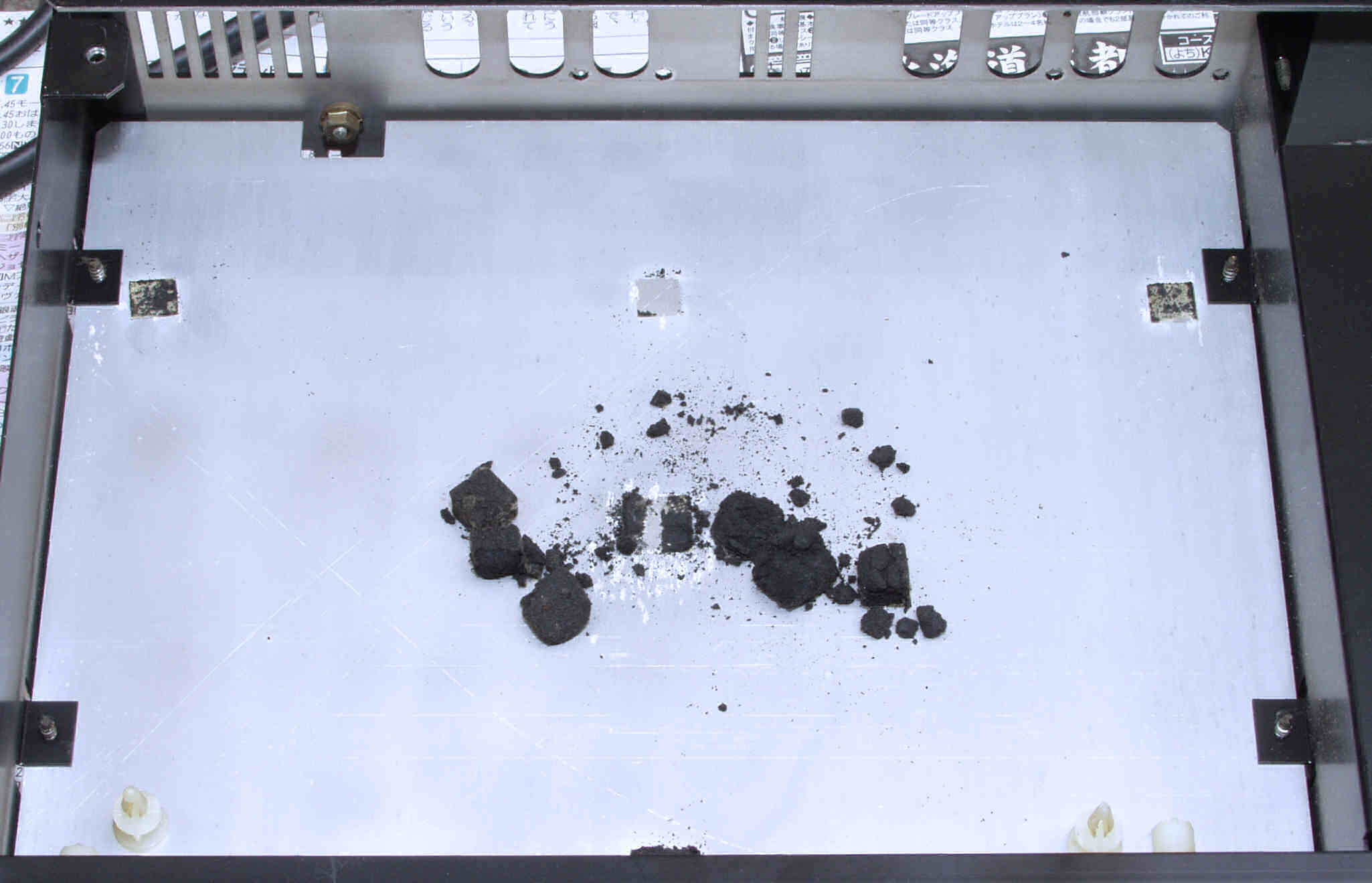 C114. 修理中 基板を固定するスポンジは変成して、固形化している、電源・コントロール基板取り付け場所。