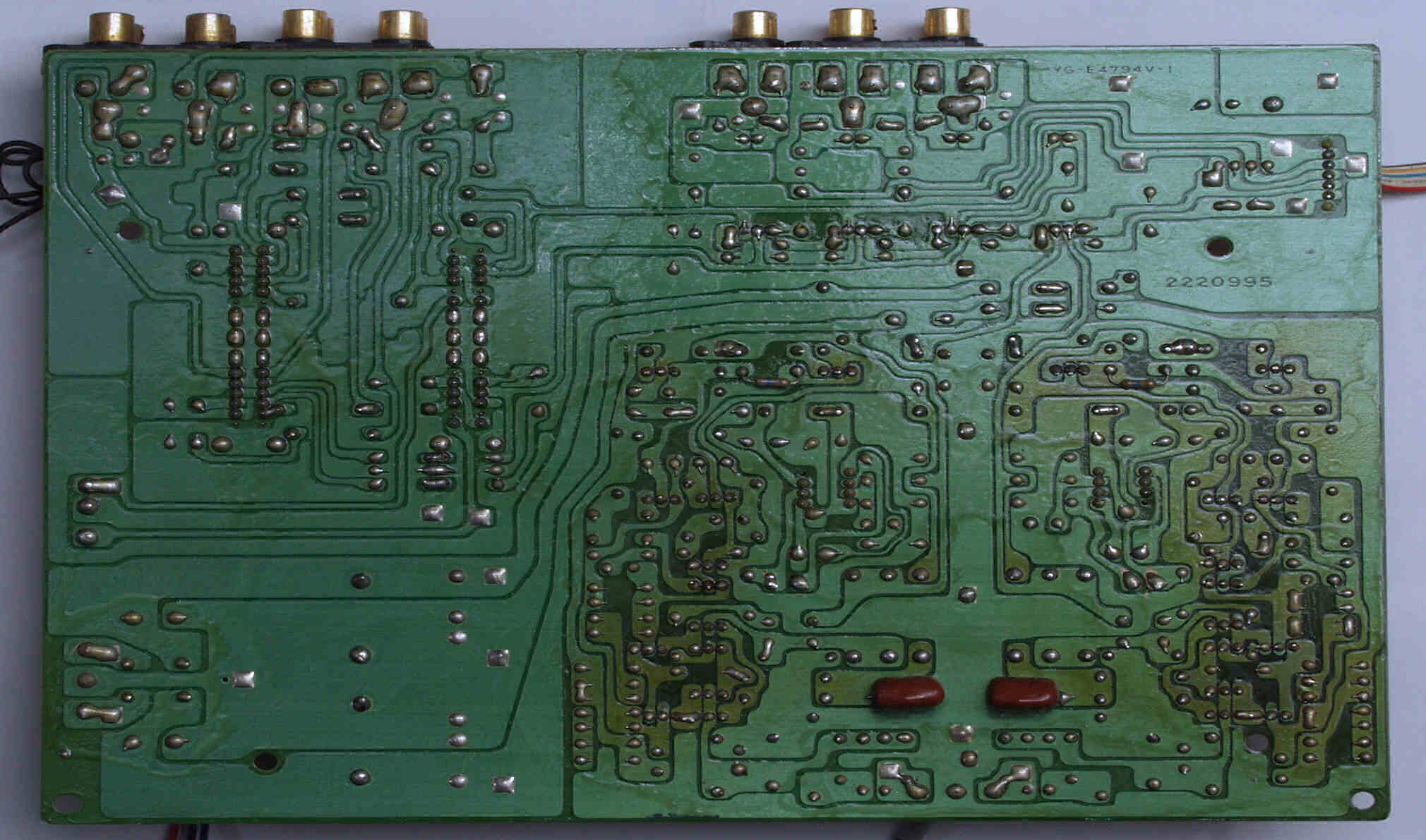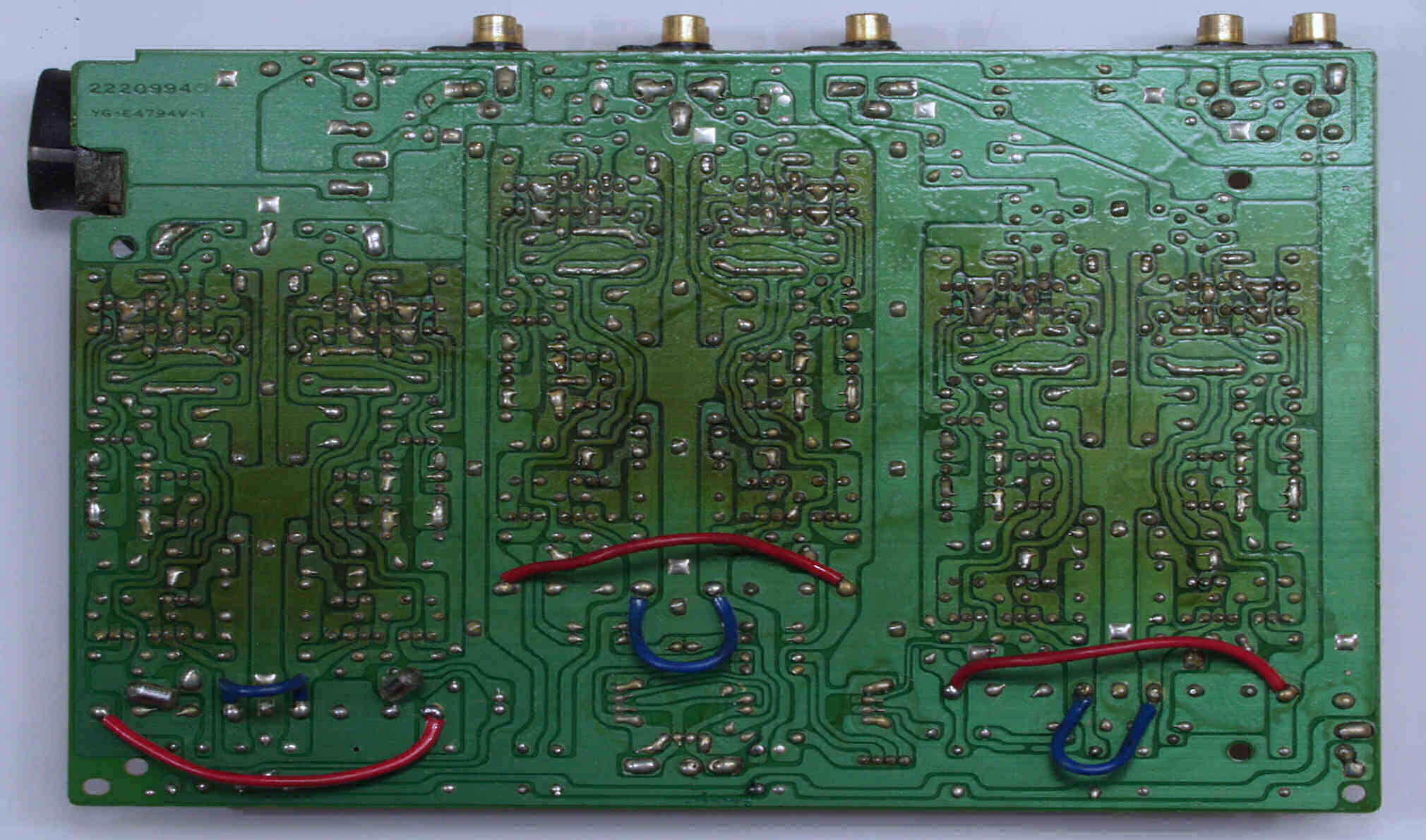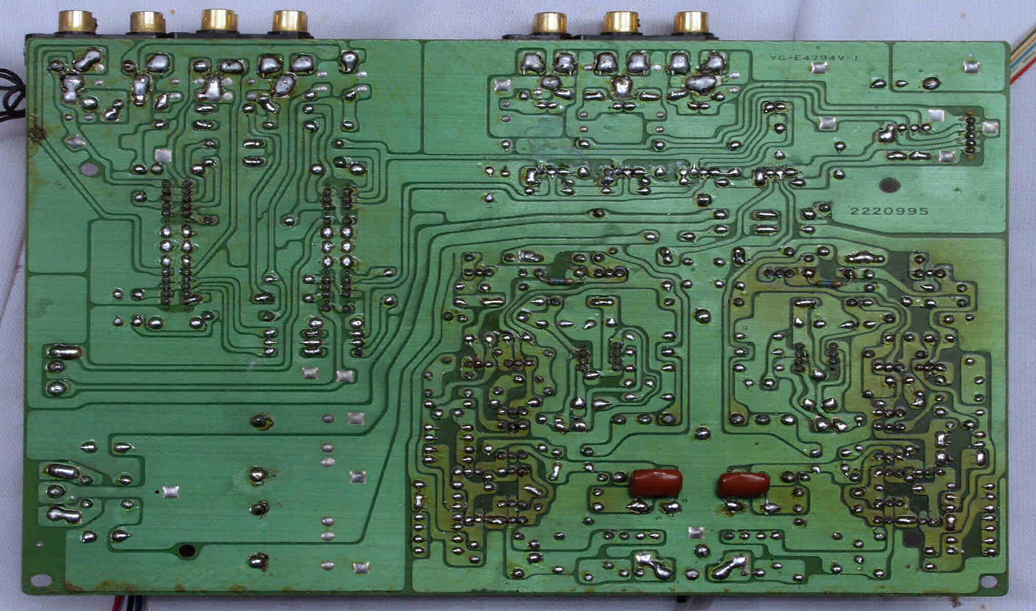 C222. 修理前 EQ−HEAD-AMP基板のRCA端子裏