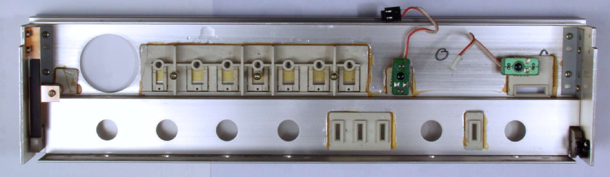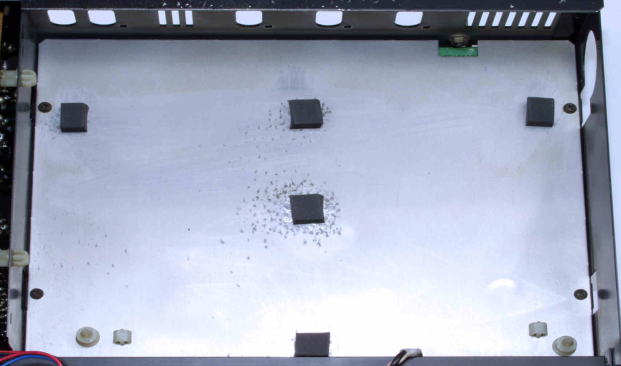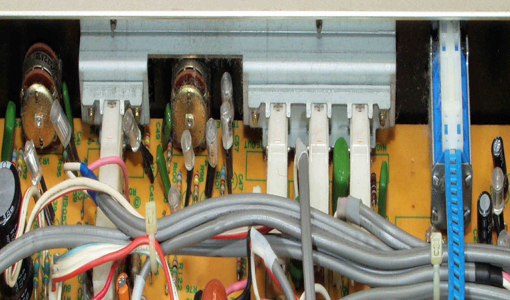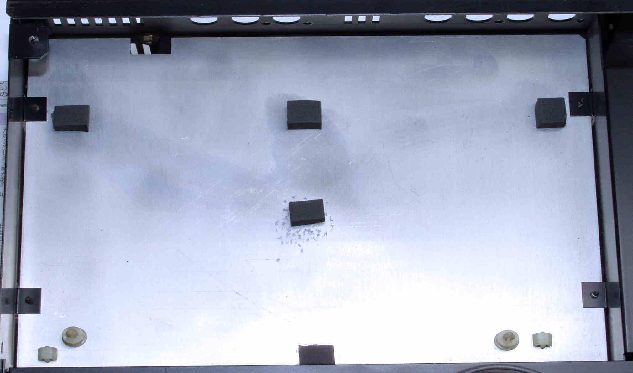 C122. 修理中 基板を固定するスポンジは変成して、固形化している、EQ−AMP基板取り付け場所。