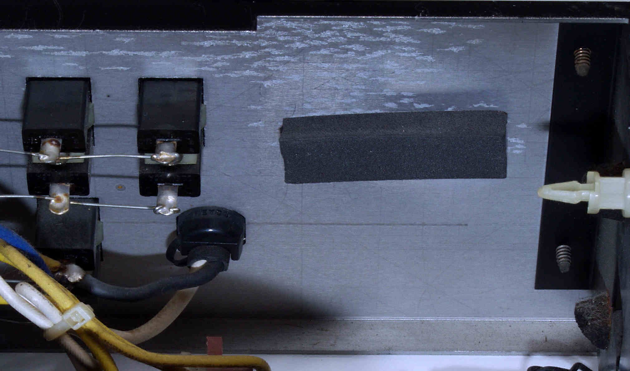 C112. 修理中 基板を固定するスポンジは変成して、固形化している、EQ−HEAD-AMP基板取り付け場所。