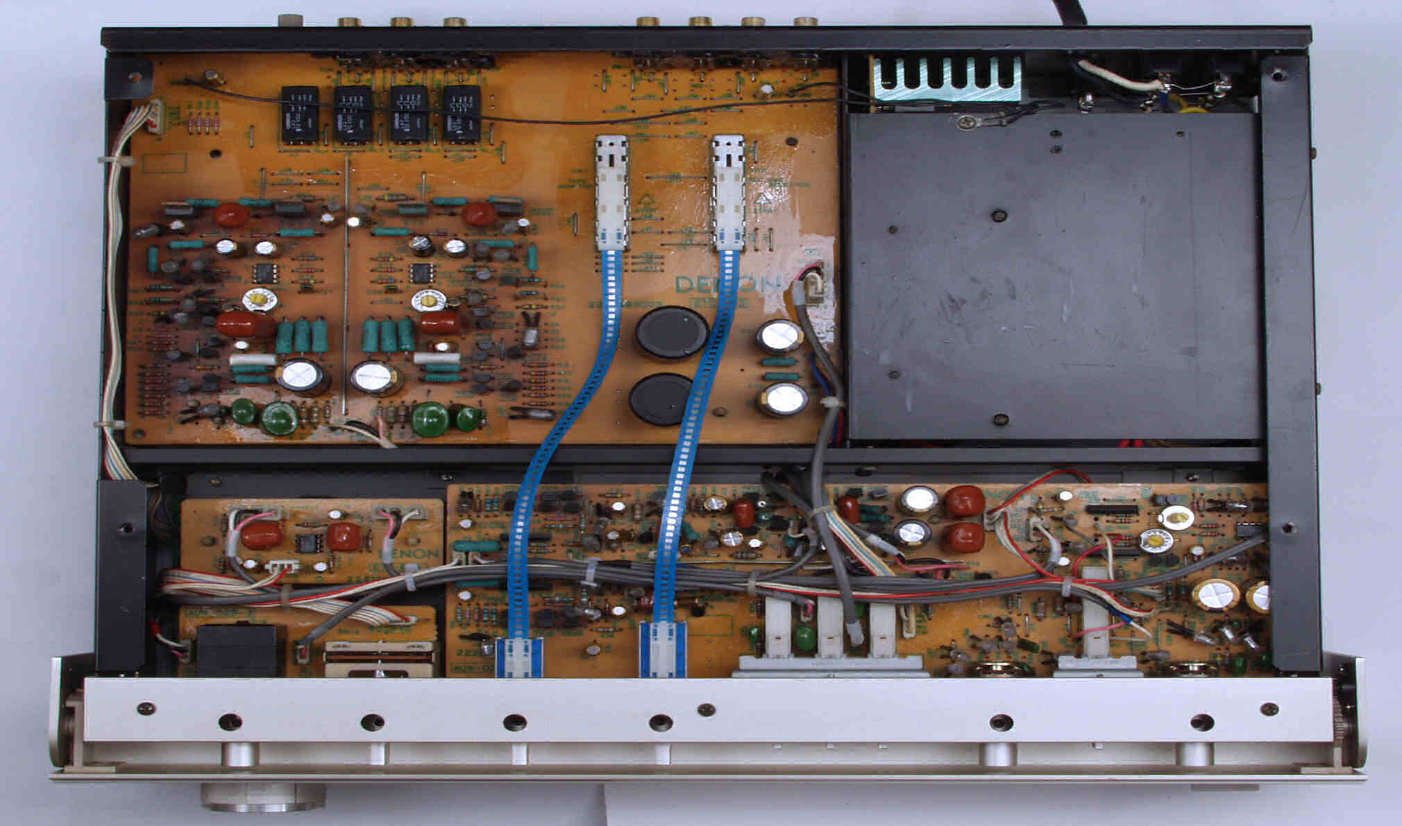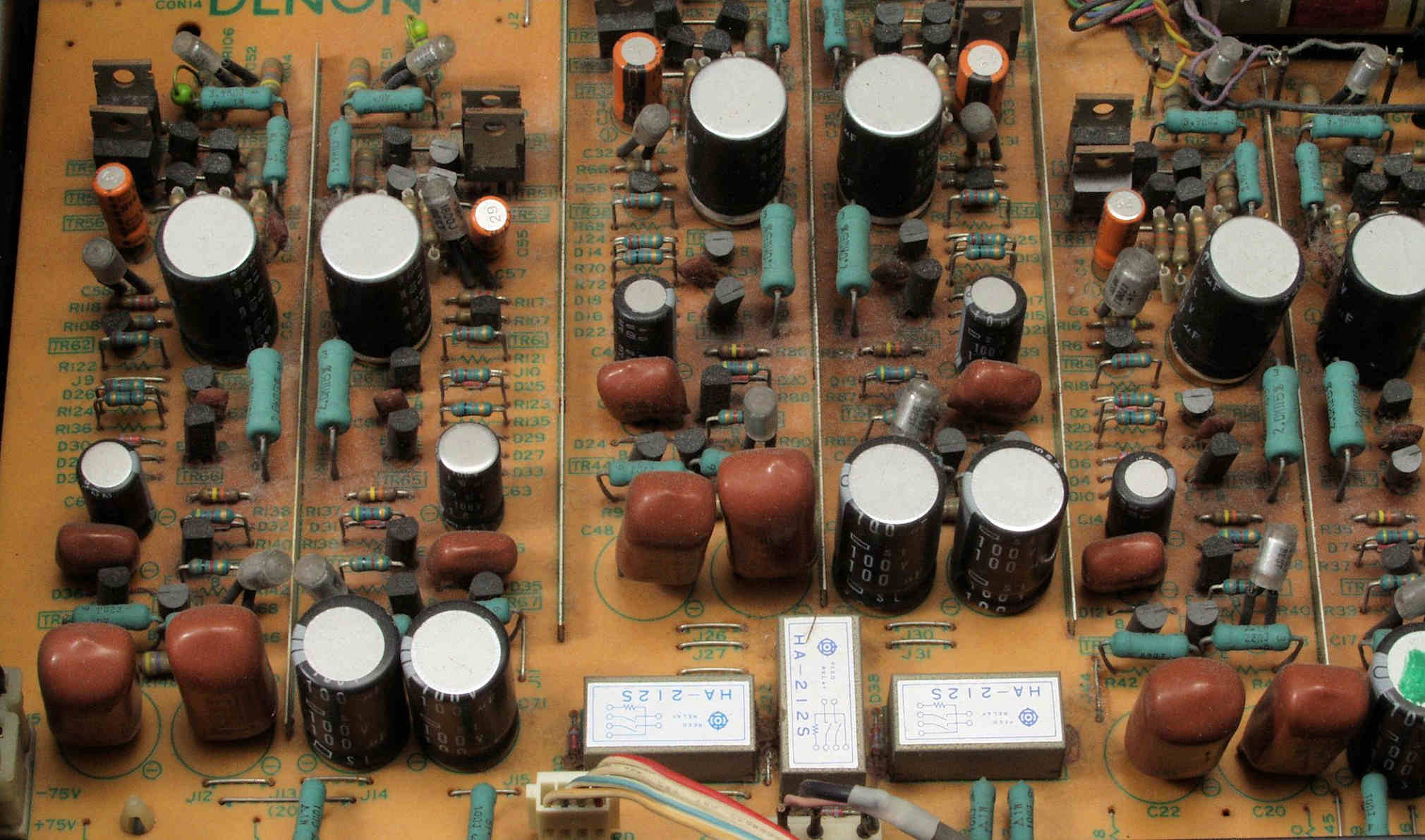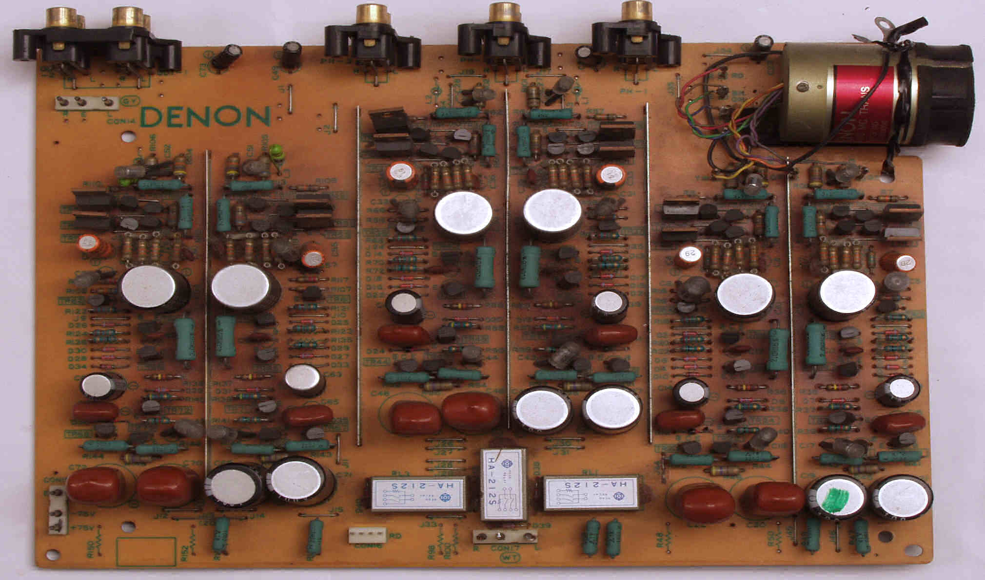 C21. 修理前 EQ−HEAD-AMP基板 左=MM 中=MC 右=トランス使用MC 上右端がMC−トランス