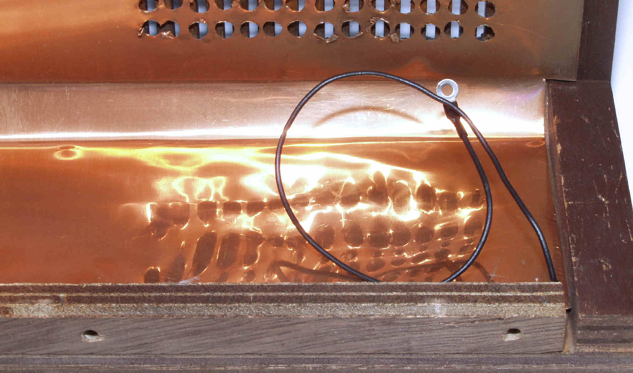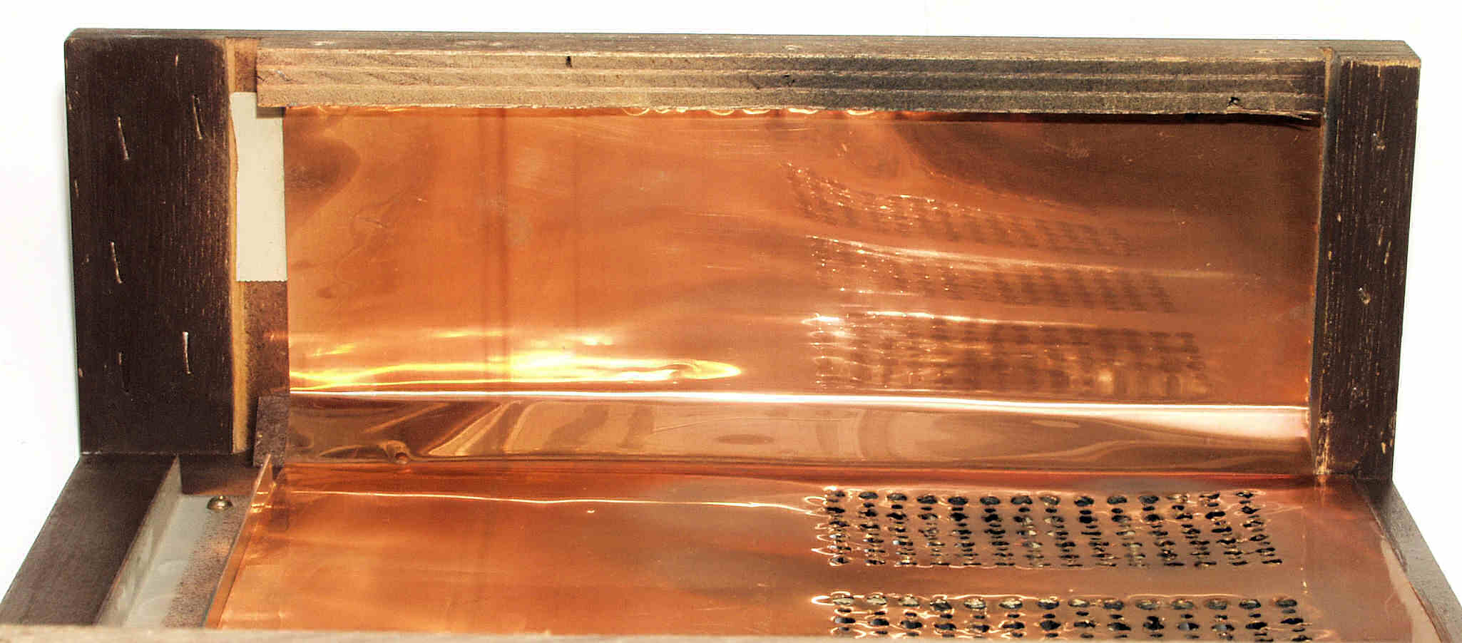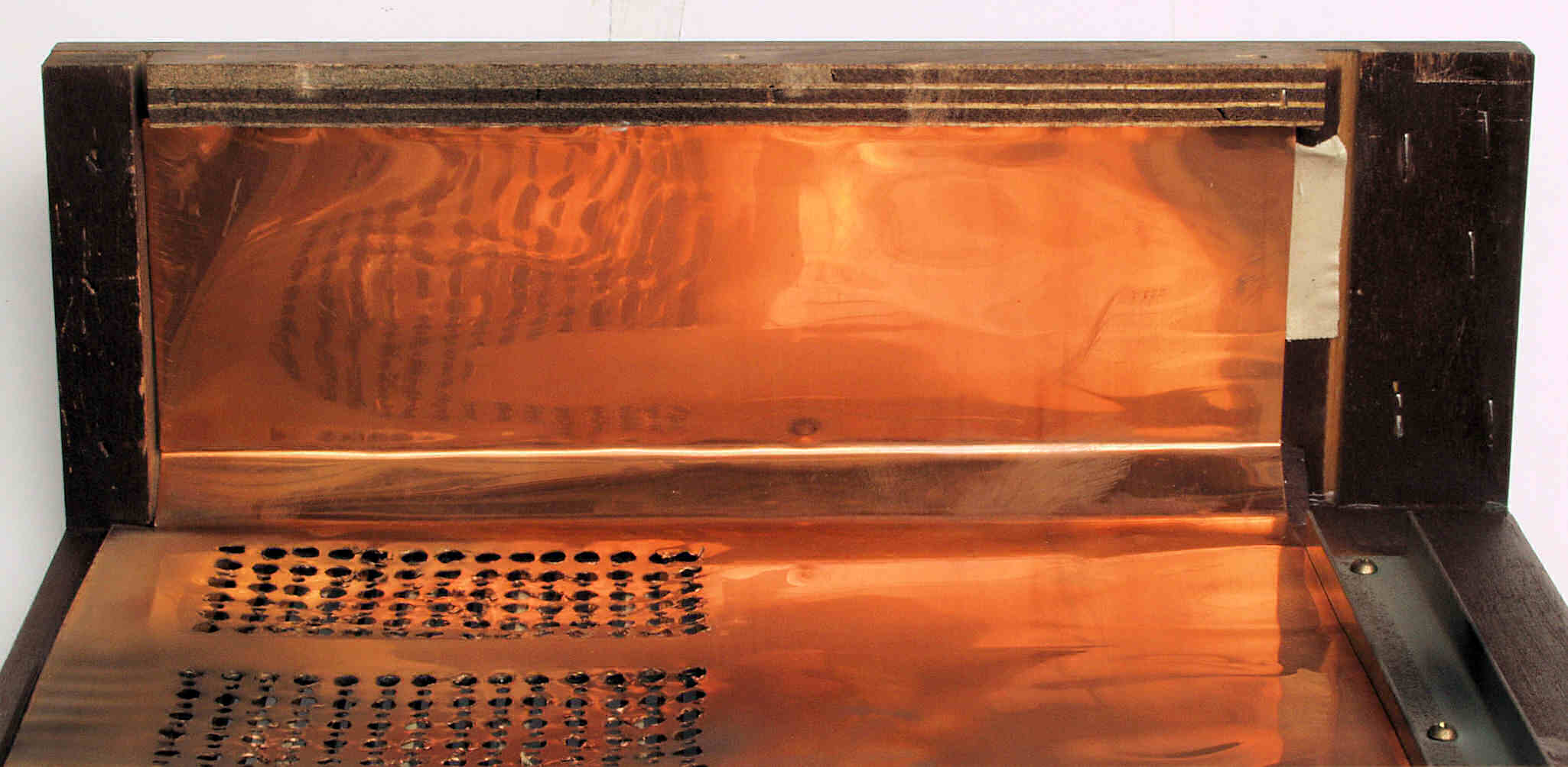 A54. 点検中 上木ケース裏に貼られた薄 銅板、後側。