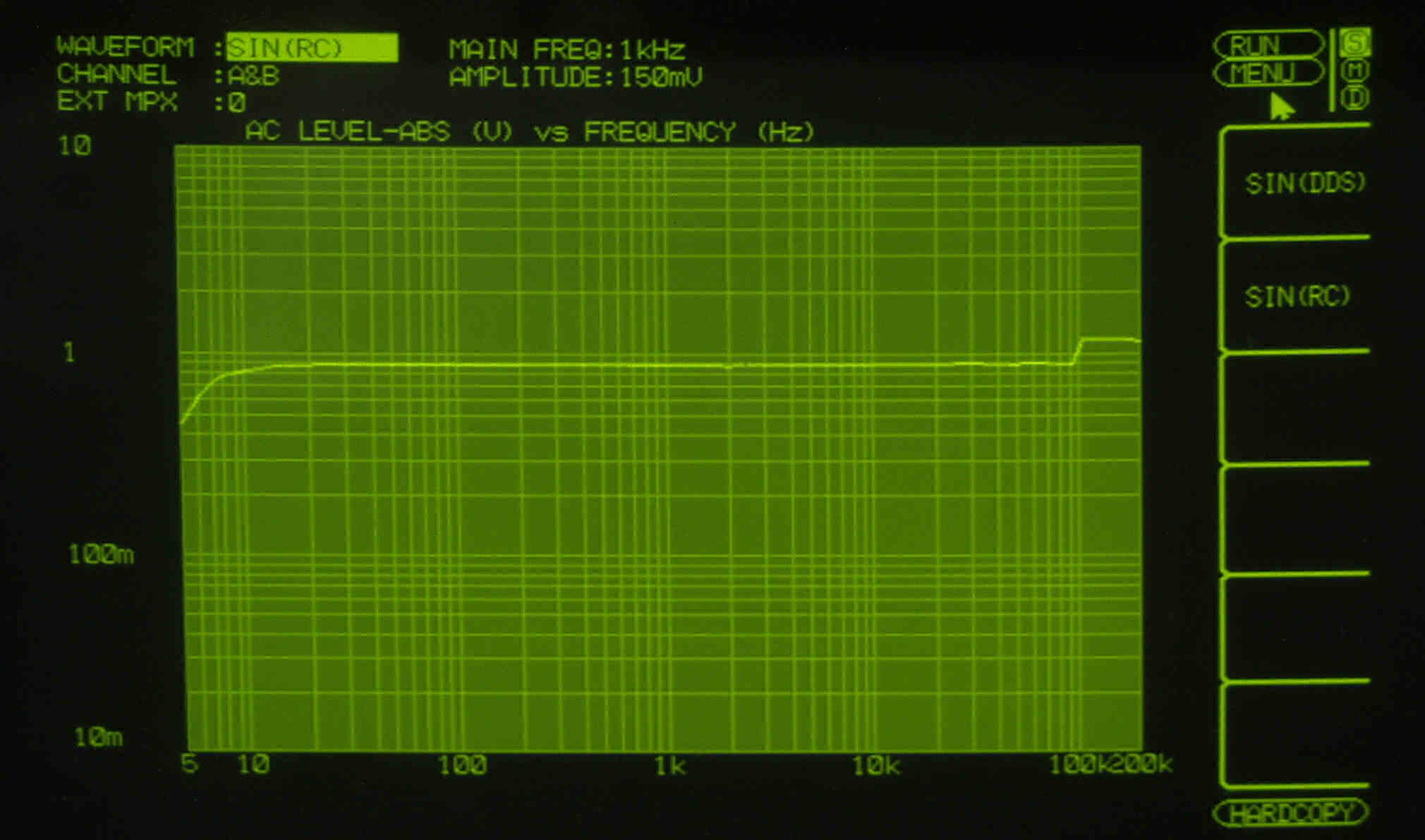 AUX入力端子へ150mV一定入力 VRはmax  左出力=薄(細い)色 右出力=濃い(太い)色