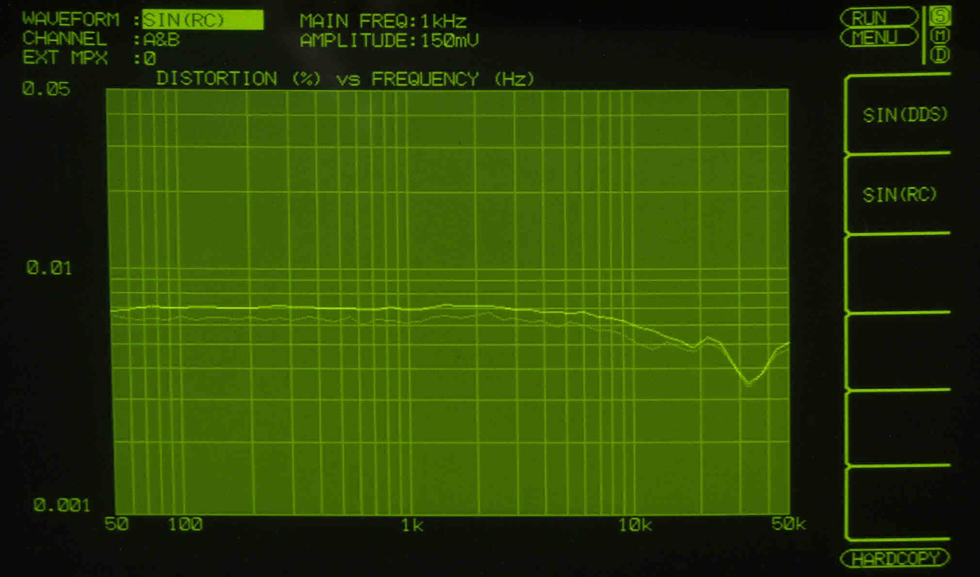全高調波ひずみ率 0.001% 1kHz 20V出力時(PHONO-1)...注=REC OUTが10Vにはなりません!