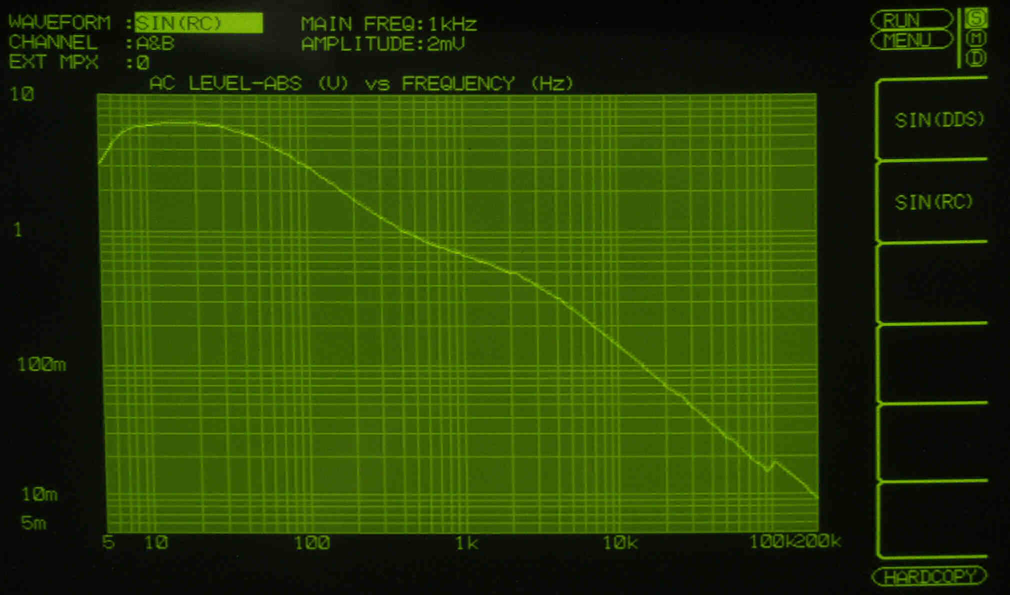 MM入力 入力電圧=1mV一定入力 VRはmax   左出力=薄(細い)色 右出力=濃い(太い)色