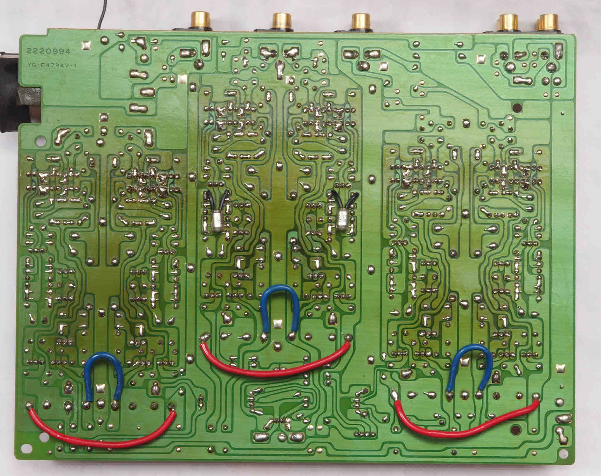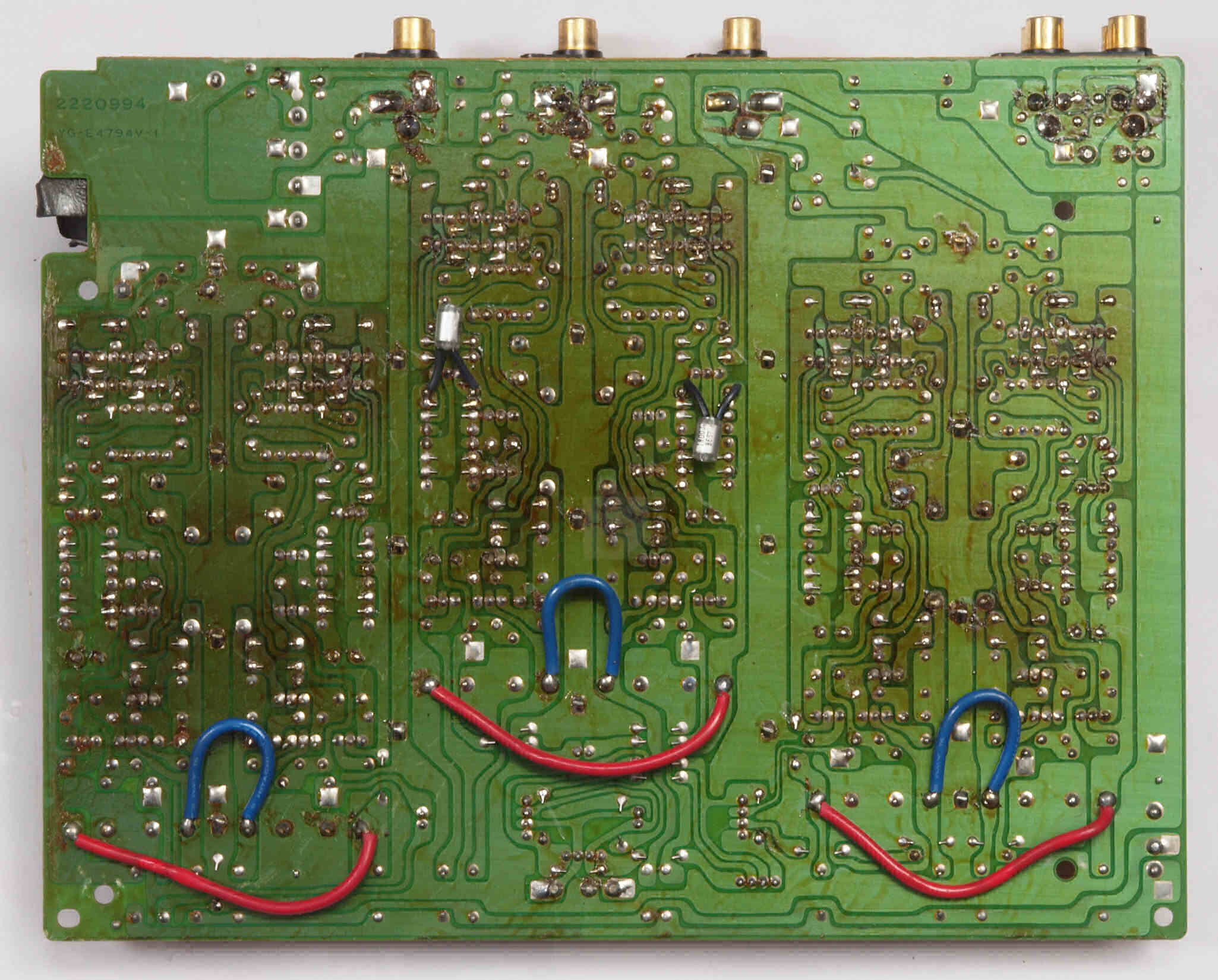 | C214. 修理中 EQ−AMP。 トルエン溶媒の接着剤を取り去り、ジャンパー線を交換後、コートを塗布後。 | ||||||||||||||||||||||||||||||||||||||||||||||||||||||||