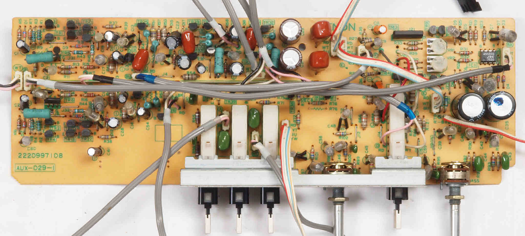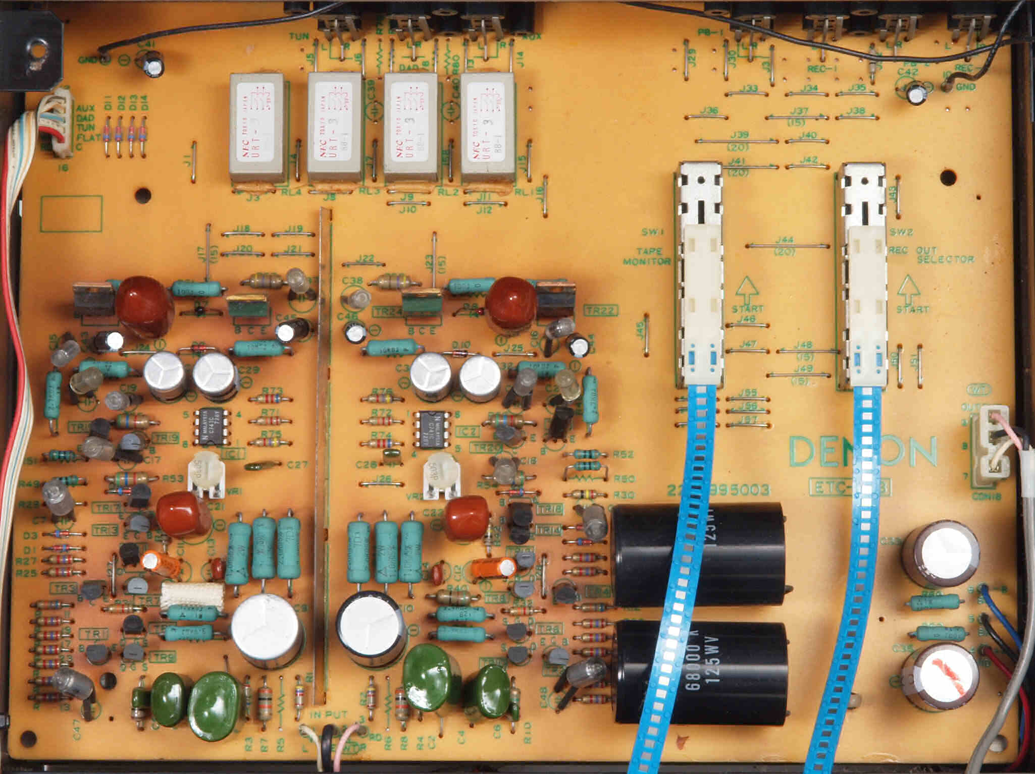 | C21. 修理前 EQ−AMP。頭のビニールの剥けた電解コンデンサーは交換していない。 | ||||||||||||||||||||||||||||||||||||||||||||||||||||||||