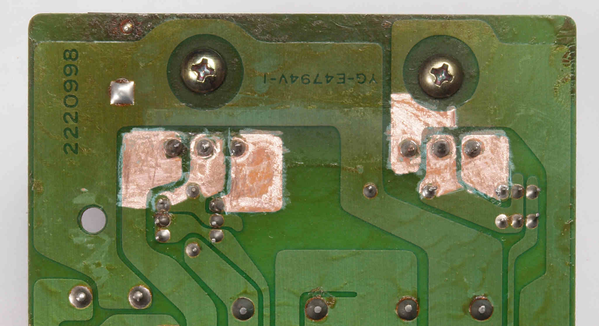 | C333. 修理中 電源・コントロール基板裏。 曲げる方向が悪く隣の銅箔に? | ||||||||||||||||||||||||||||||||||||||||||||||||||||||||