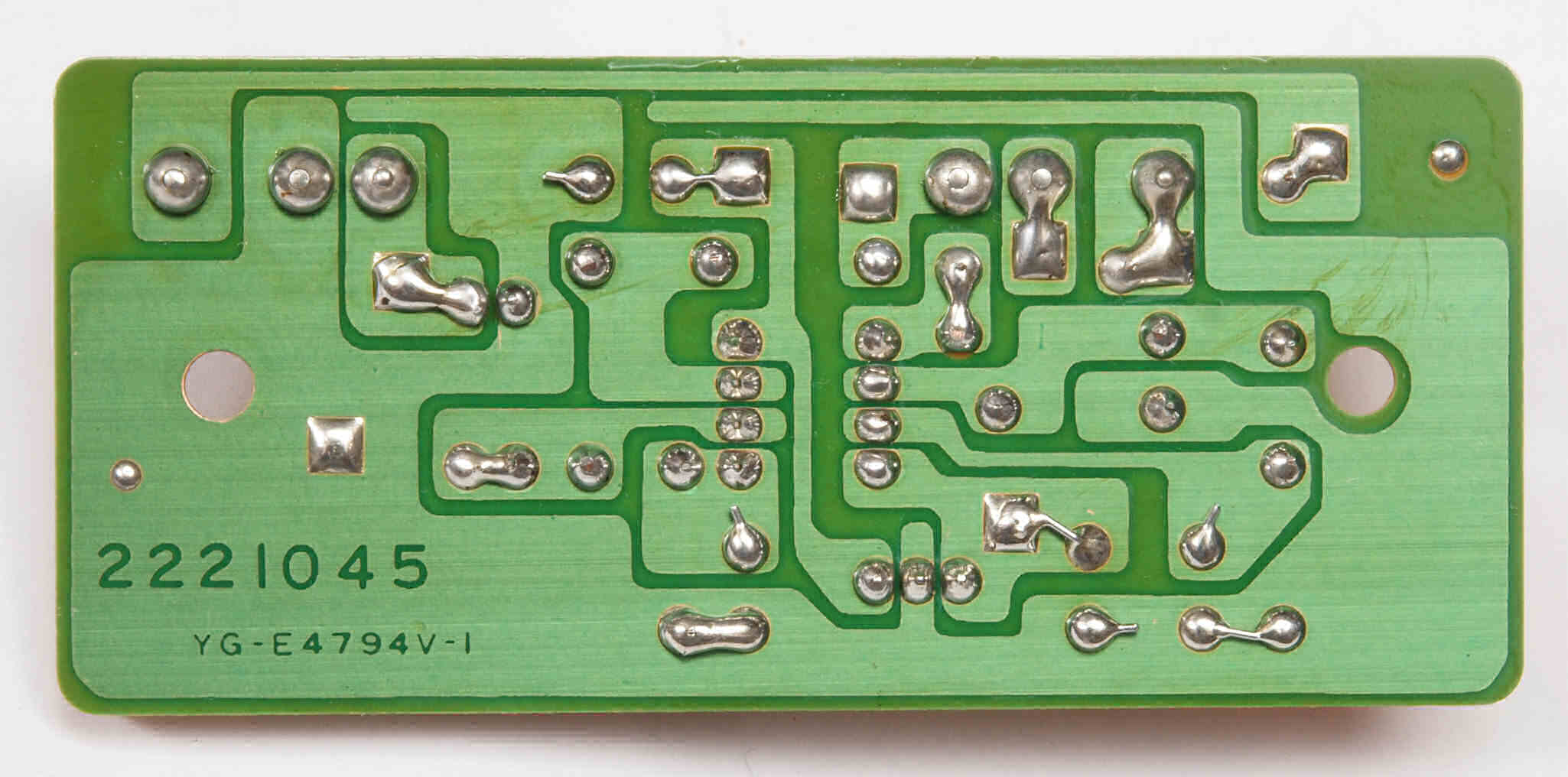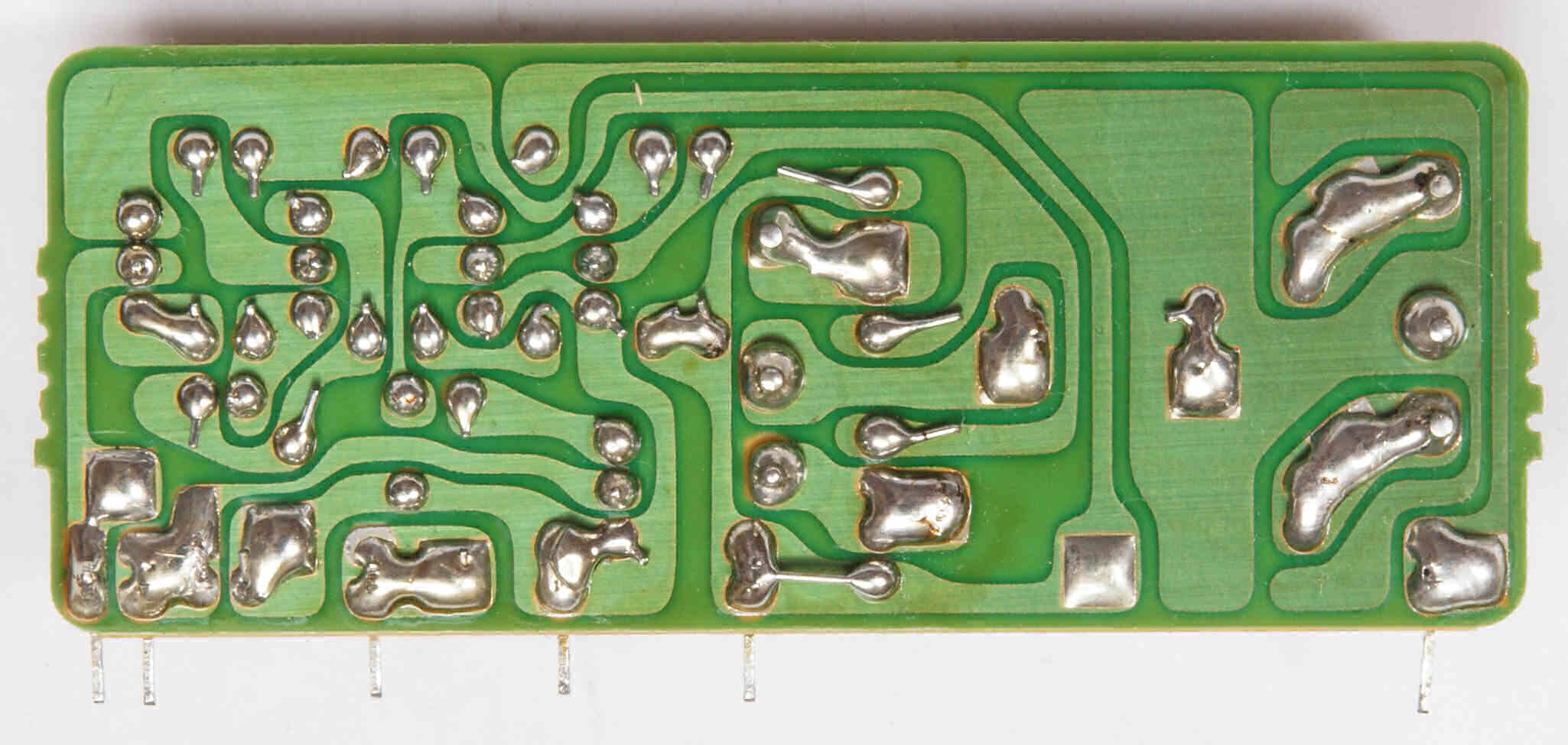 | C74. 完成バランスVR+プリセットセレクター基板裏。 余分なフラックスを落として、コート液を塗る。 | ||||||||||||||||||||||||||||||||||||||||||||||||||||||||