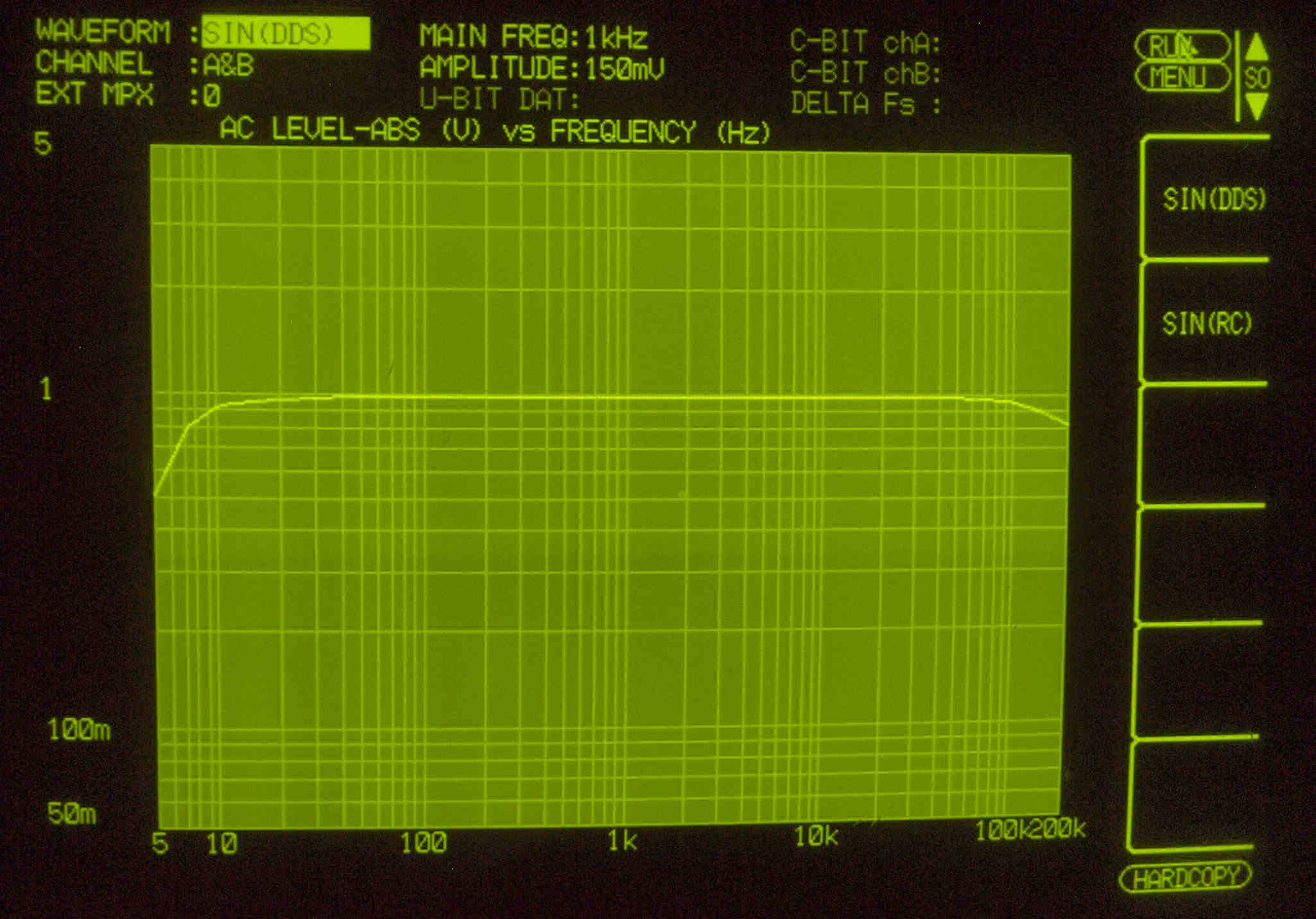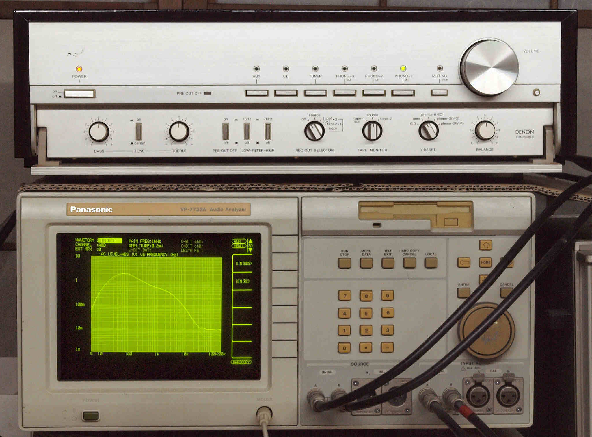 | F. 上位測定器による 調整・測定。 画像をクリックすると、大きく(横幅2050ドット)表示されます。 F0. 下のオーディオアナライザーVP−7732Aで自動測定 |