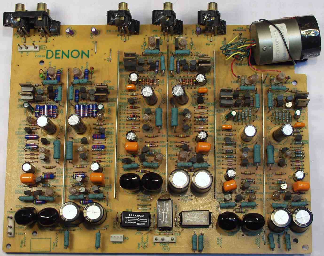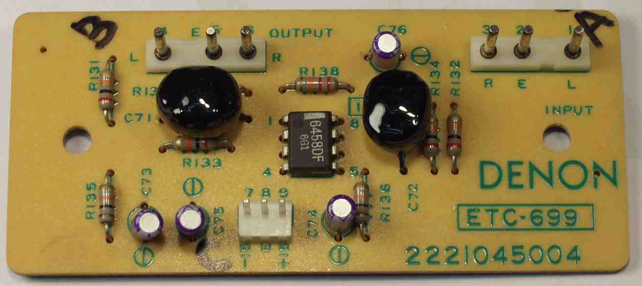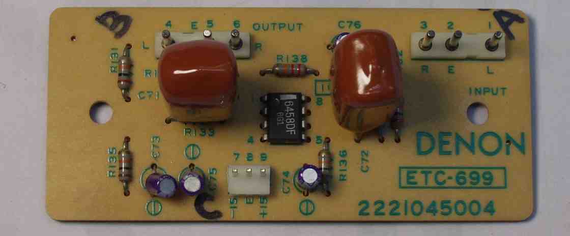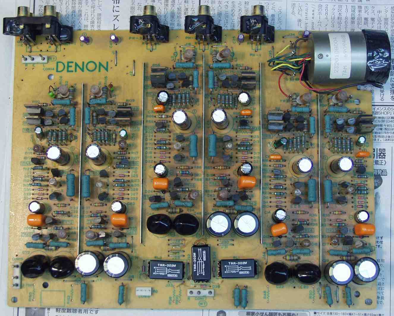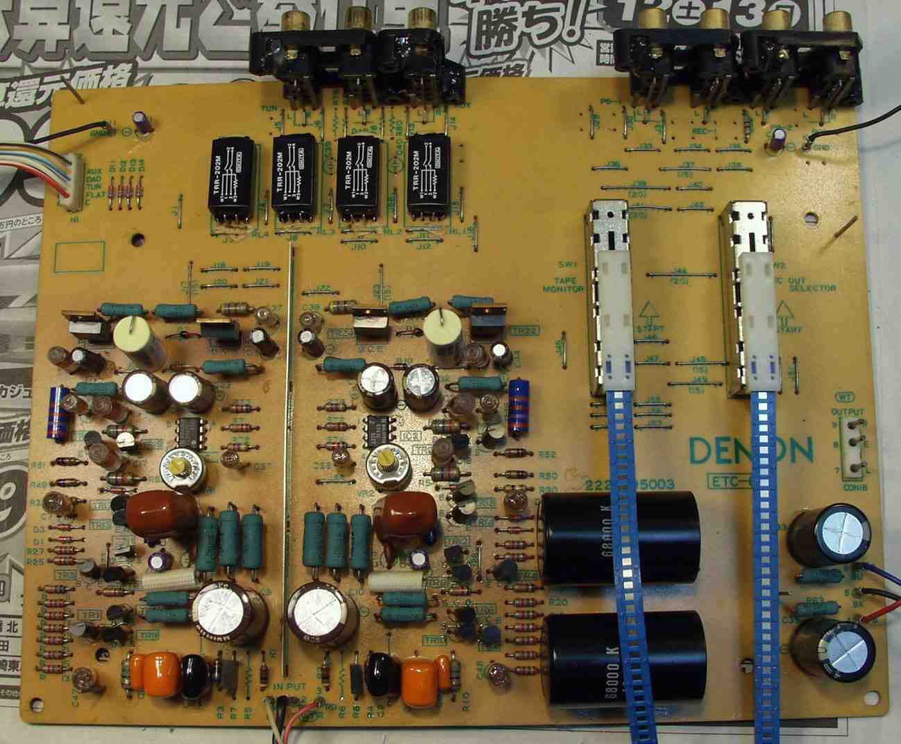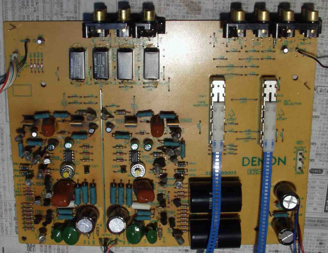 | C. 修理状況 C11. 修理前 EQ−HEAD-AMP基板 左=MM 中=MC 右=トランス使用MC 上右端がMC−トランス |