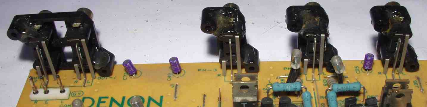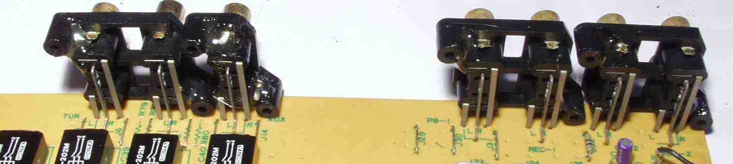 | C13. 修理後 EQ−AMPのRCA端子 太いケーブルを繋ぐのでホットボンドで補強 | ||||||||||||||||||||||||||||||||||||||||||||||||||||