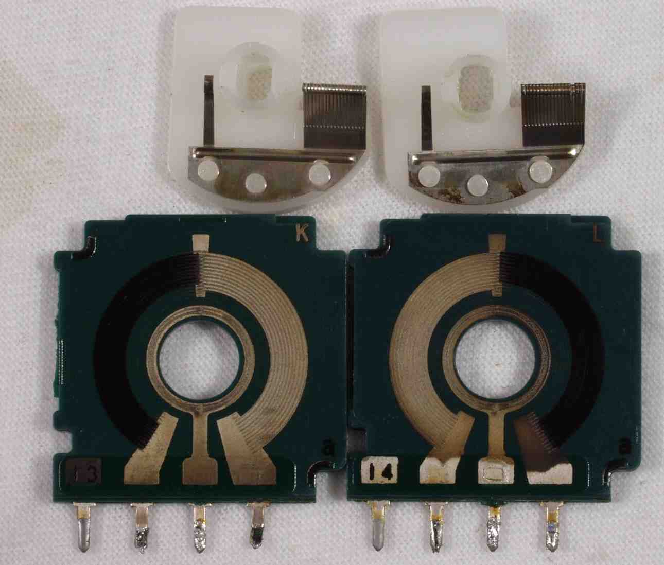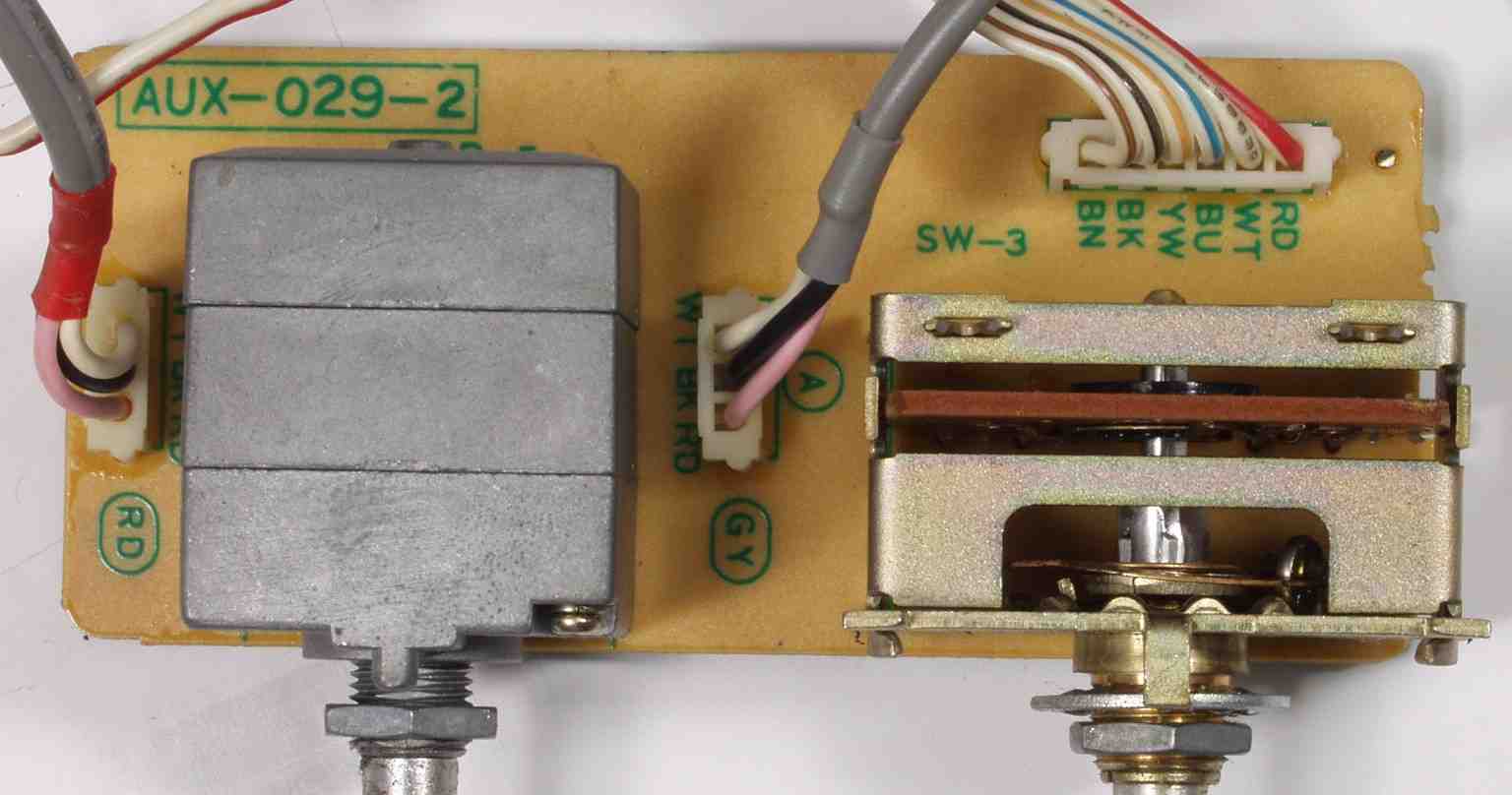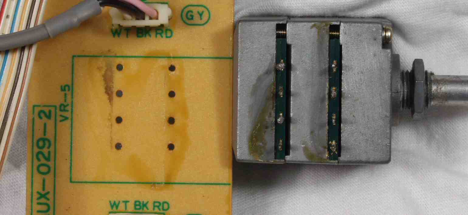 | CAA. 修理前 バランスVR+プリセットセレクター基板からバランスVRを取り外した跡、流れ出したグリスがベットリ! | ||||||||||||||||||||||||||||||||||||||||||||||||||||