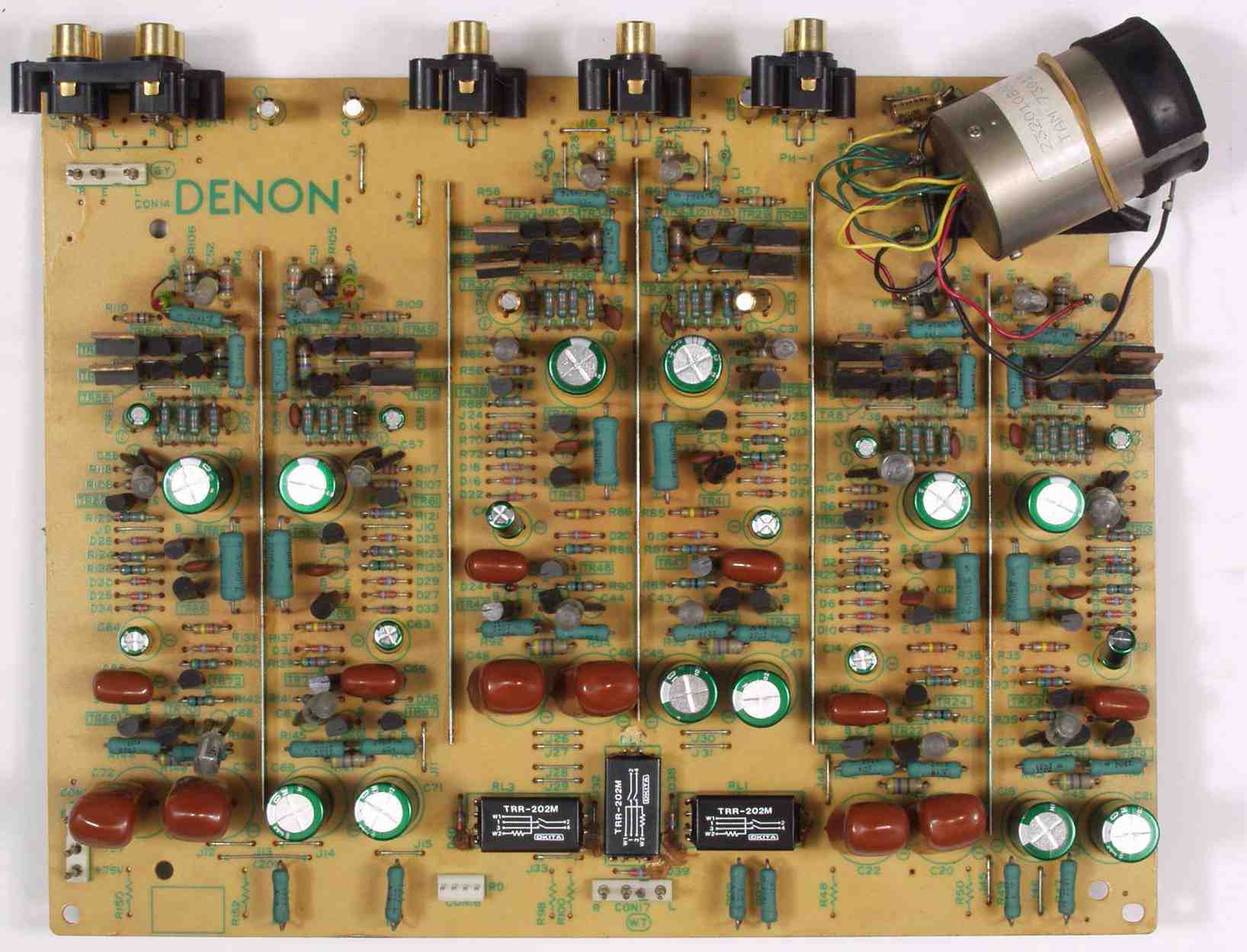| C. 修理状況 C1A. 修理前 EQ−HEAD-AMP基板 左=MM 中=MC 右=トランス使用MC 上右端がMC−トランス | ||||||||||||||||||||||||||||||||||||||||||||||||||||