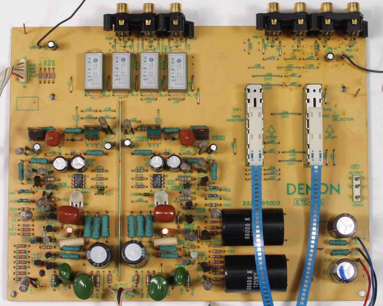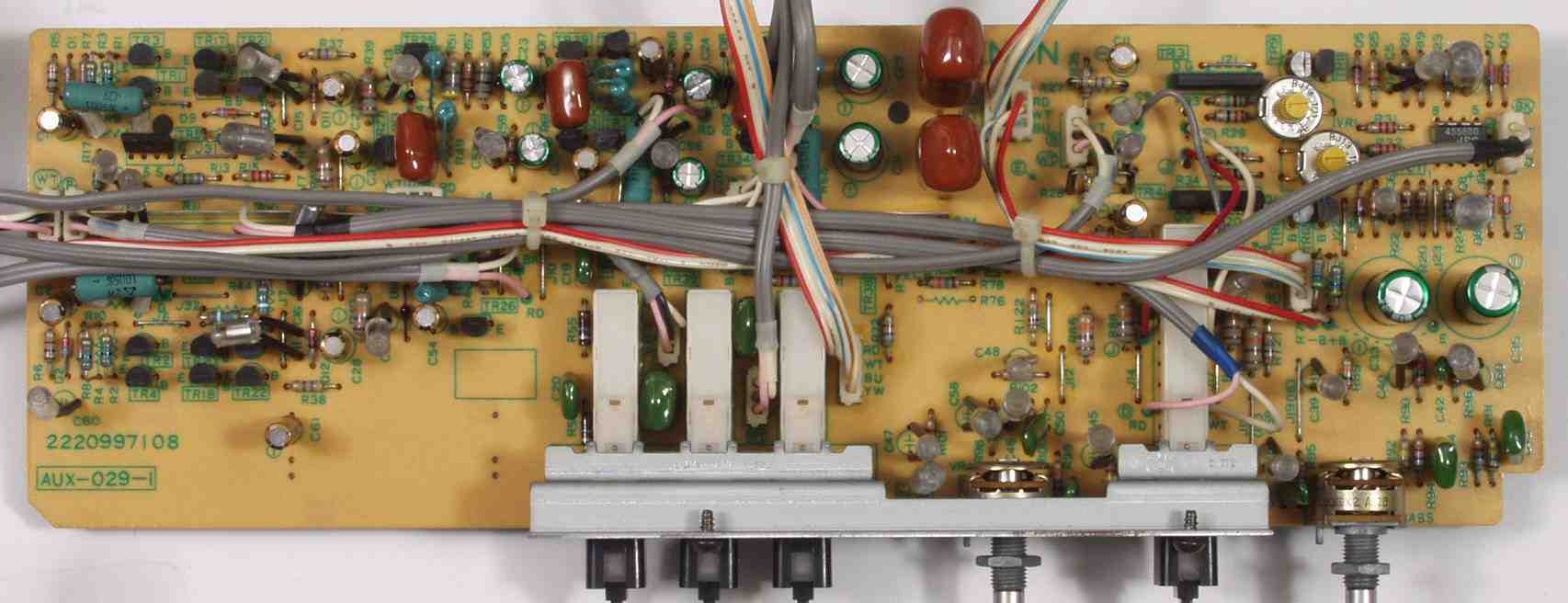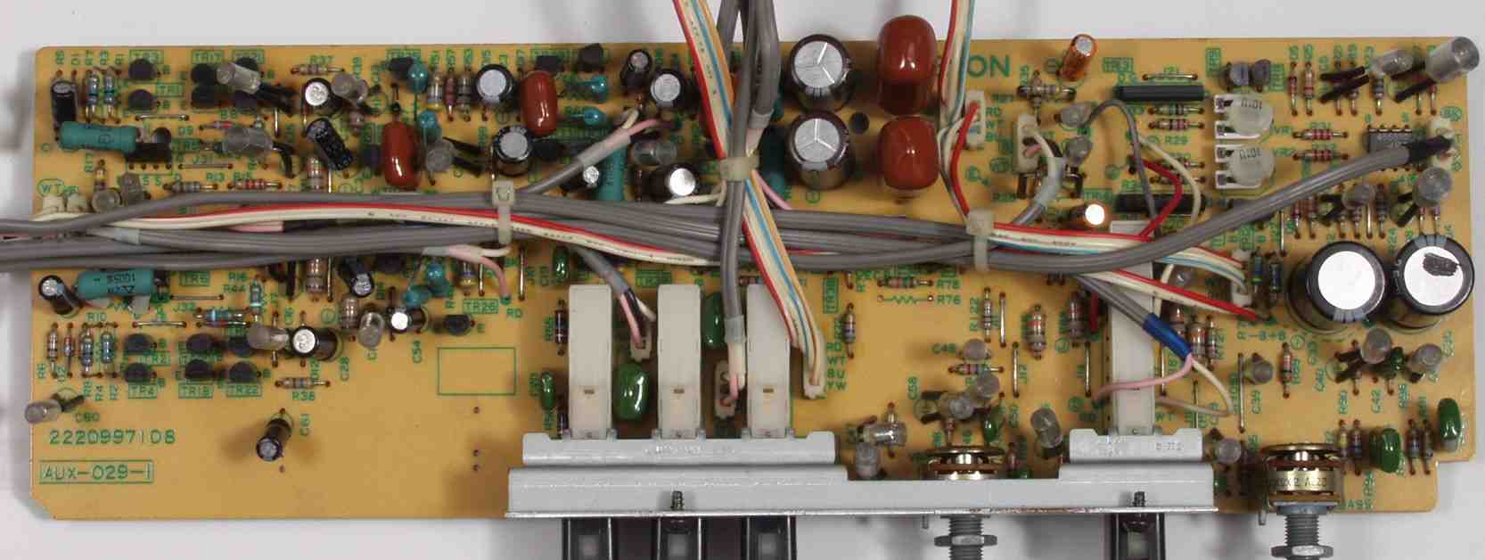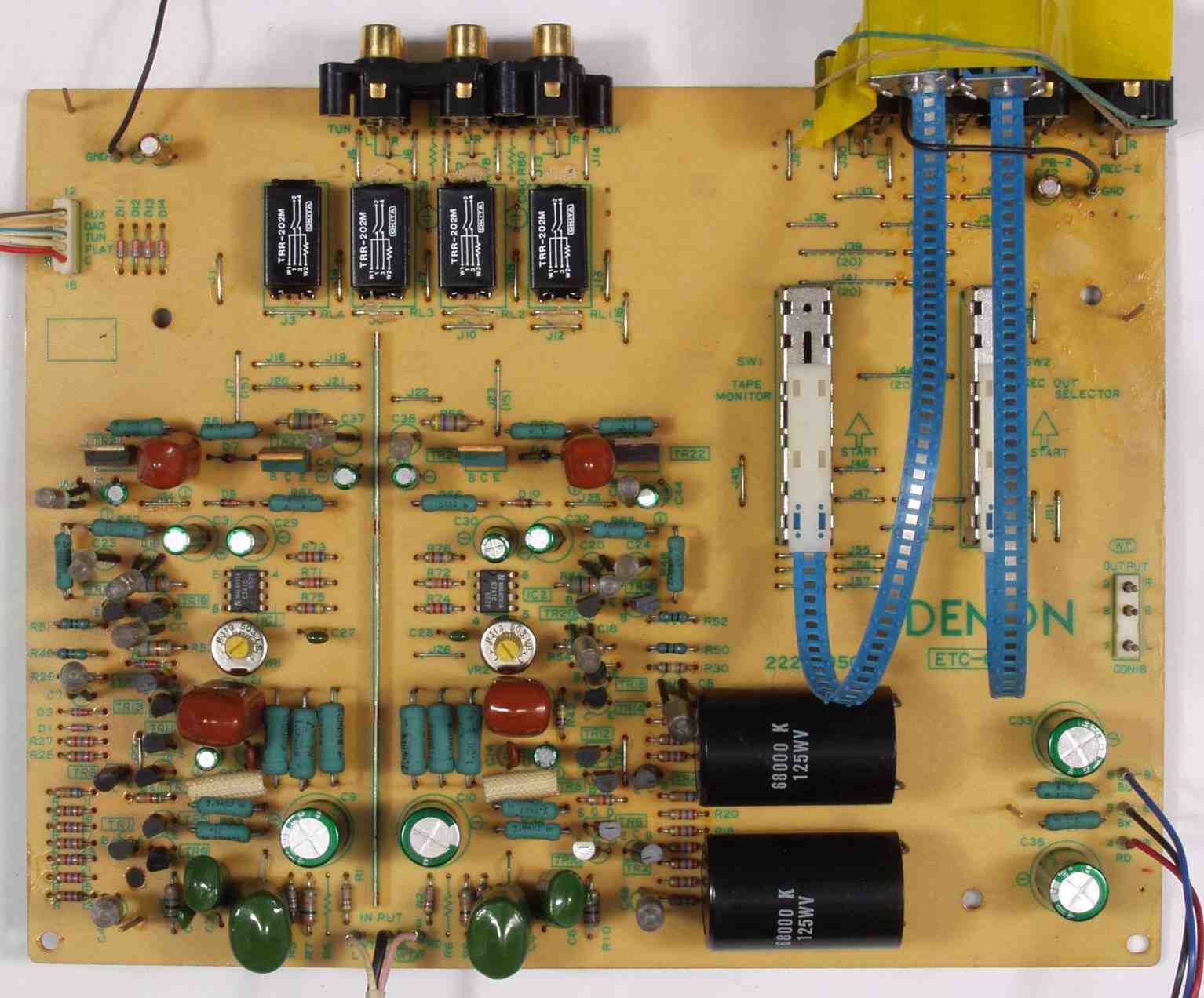 | C2B. 修理後 EQ−AMP基板 電解コンデンサー18個、リードリレー4個、半固定VR2個交換 | ||||||||||||||||||||||||||||||||||||||||||||||||||||