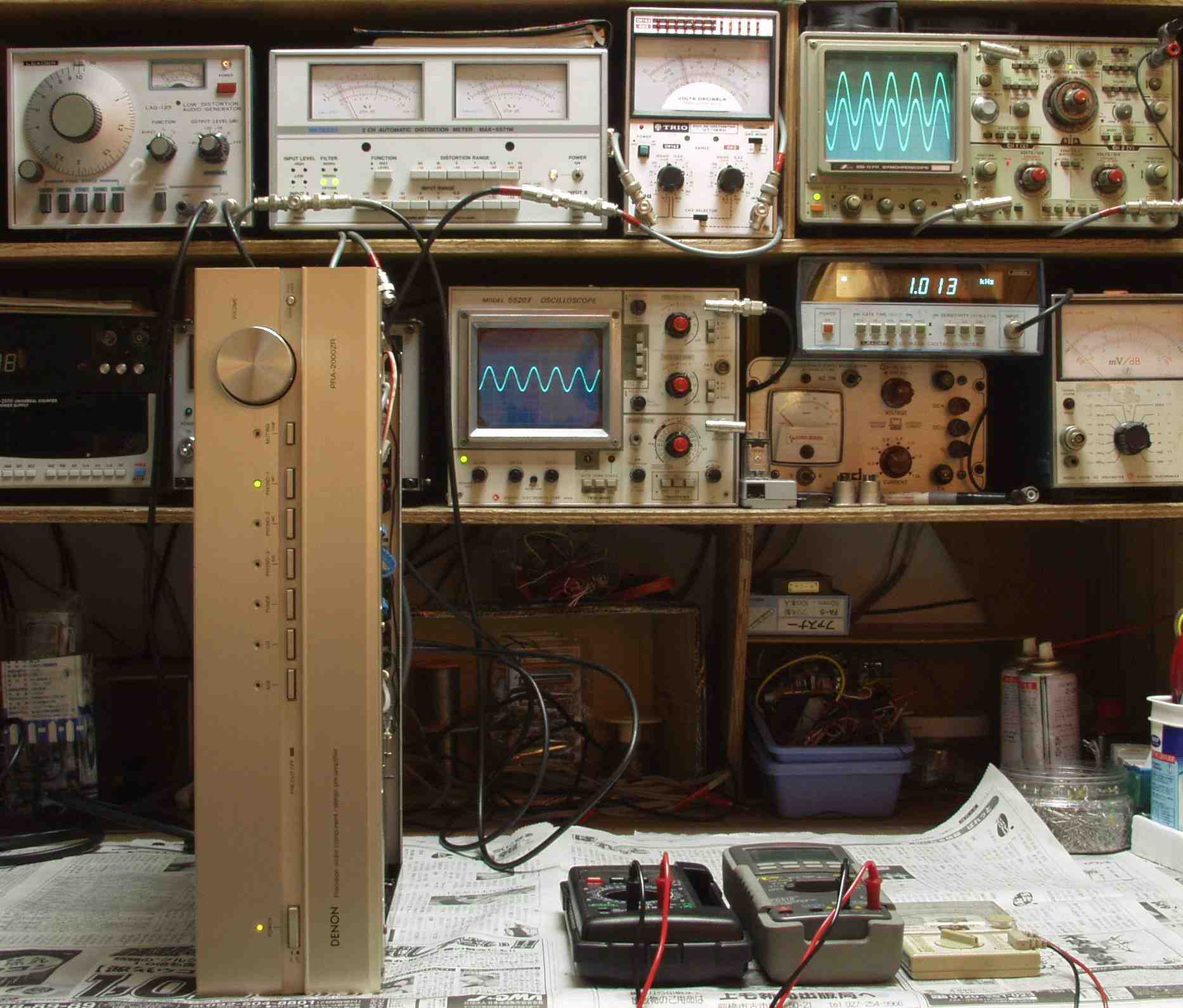 | T. 修理前点検測定 T1. 修理前歪み率測定(MC入力(トランス))=PHONO−1 出力電圧1V 歪み率=0.08% 測定レンジ=0.1% 400HZ入力 |