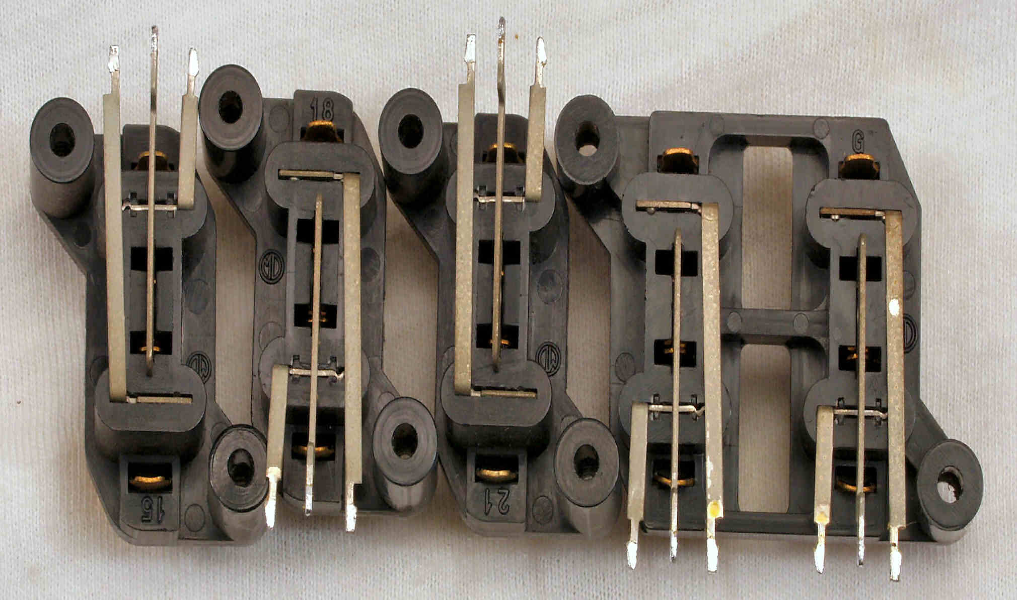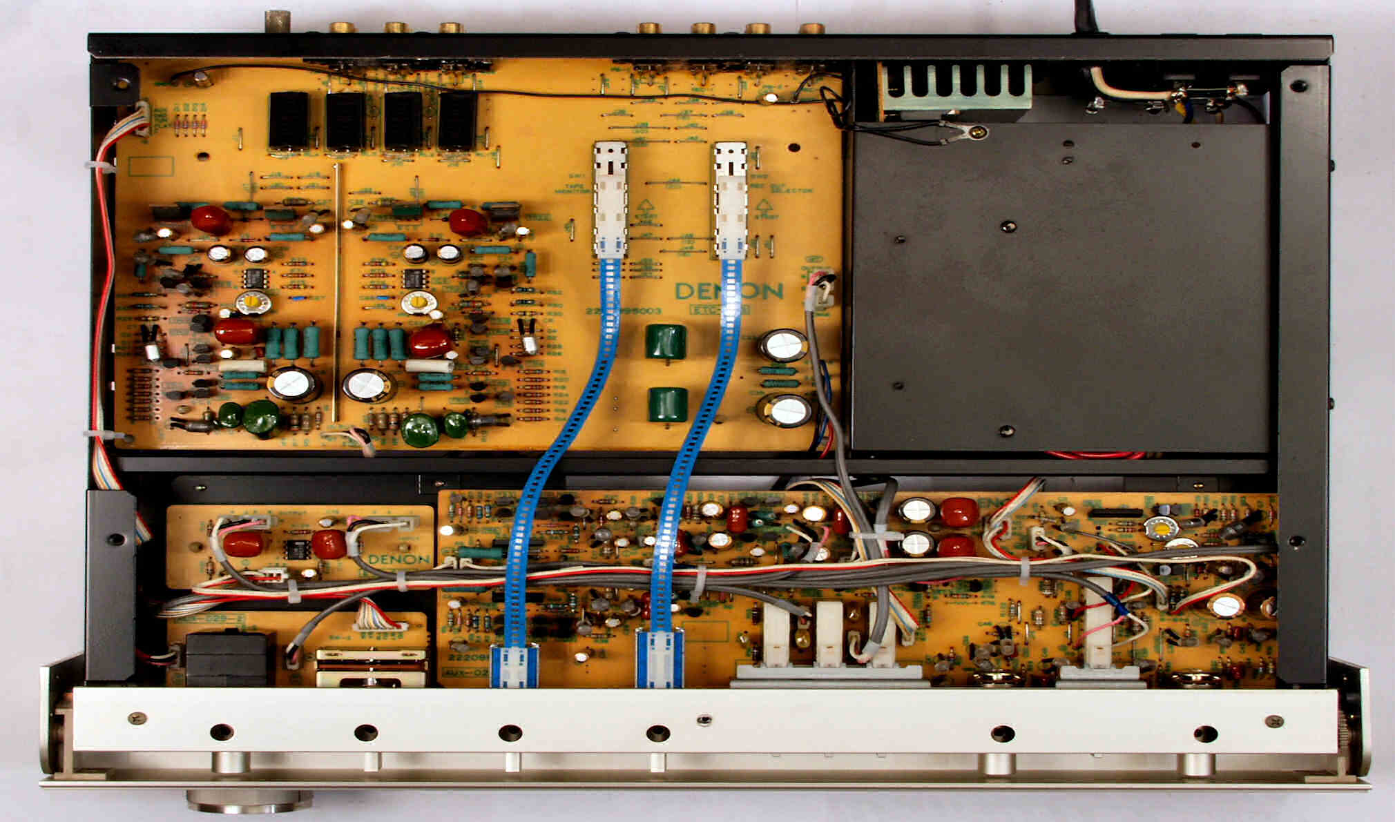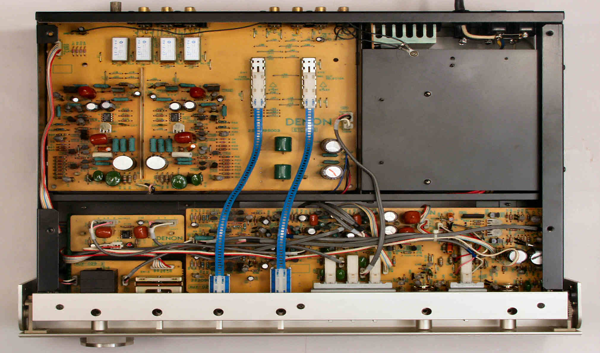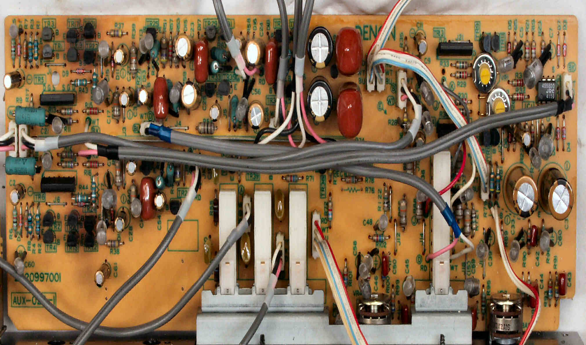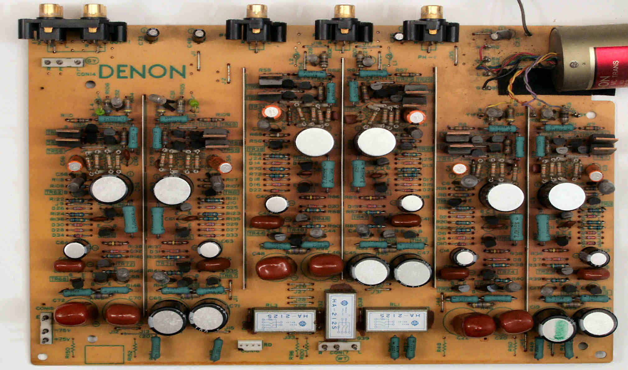 C21. 修理前 EQ−HEAD-AMP基板 左=MM 中=MC 右=トランス使用MC 上右端がMC−トランス