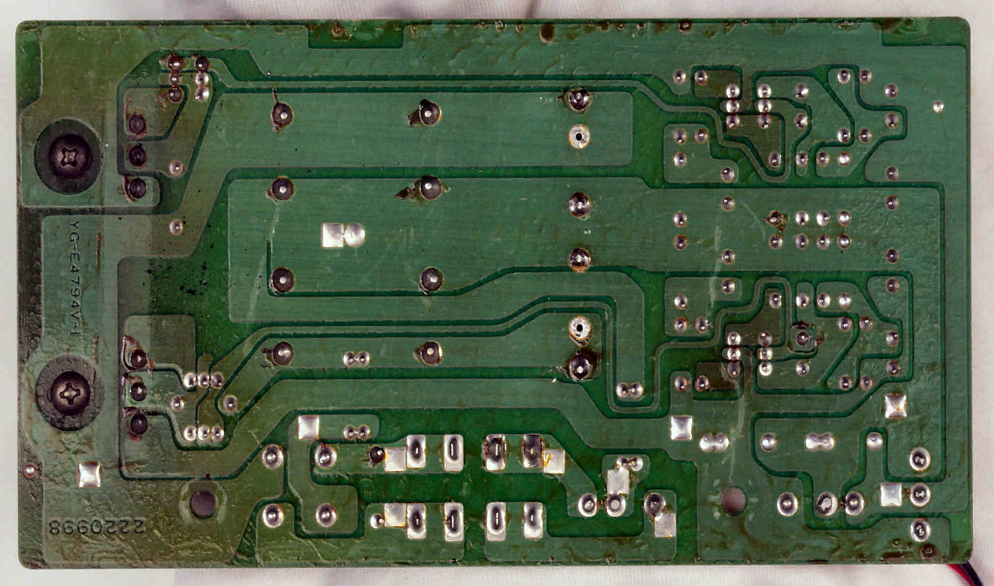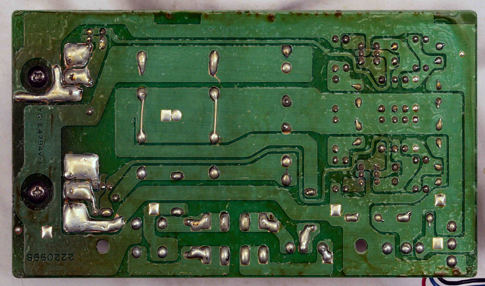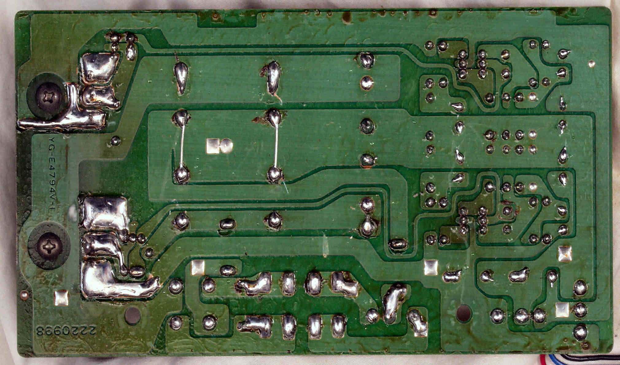 C84. 修理(半田補正)後 電源基板裏  全ての半田をやり修す