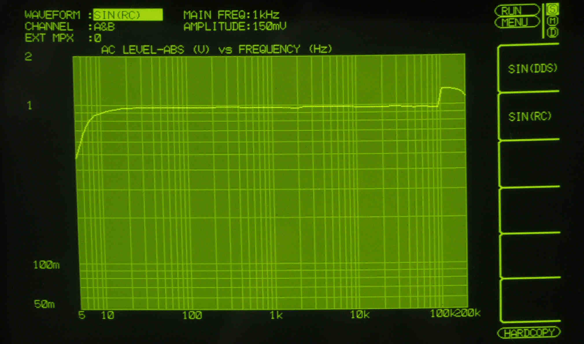 AUX入力端子へ150mV一定入力 VRはmax  左出力=薄(細い)色 右出力=濃い(太い)色