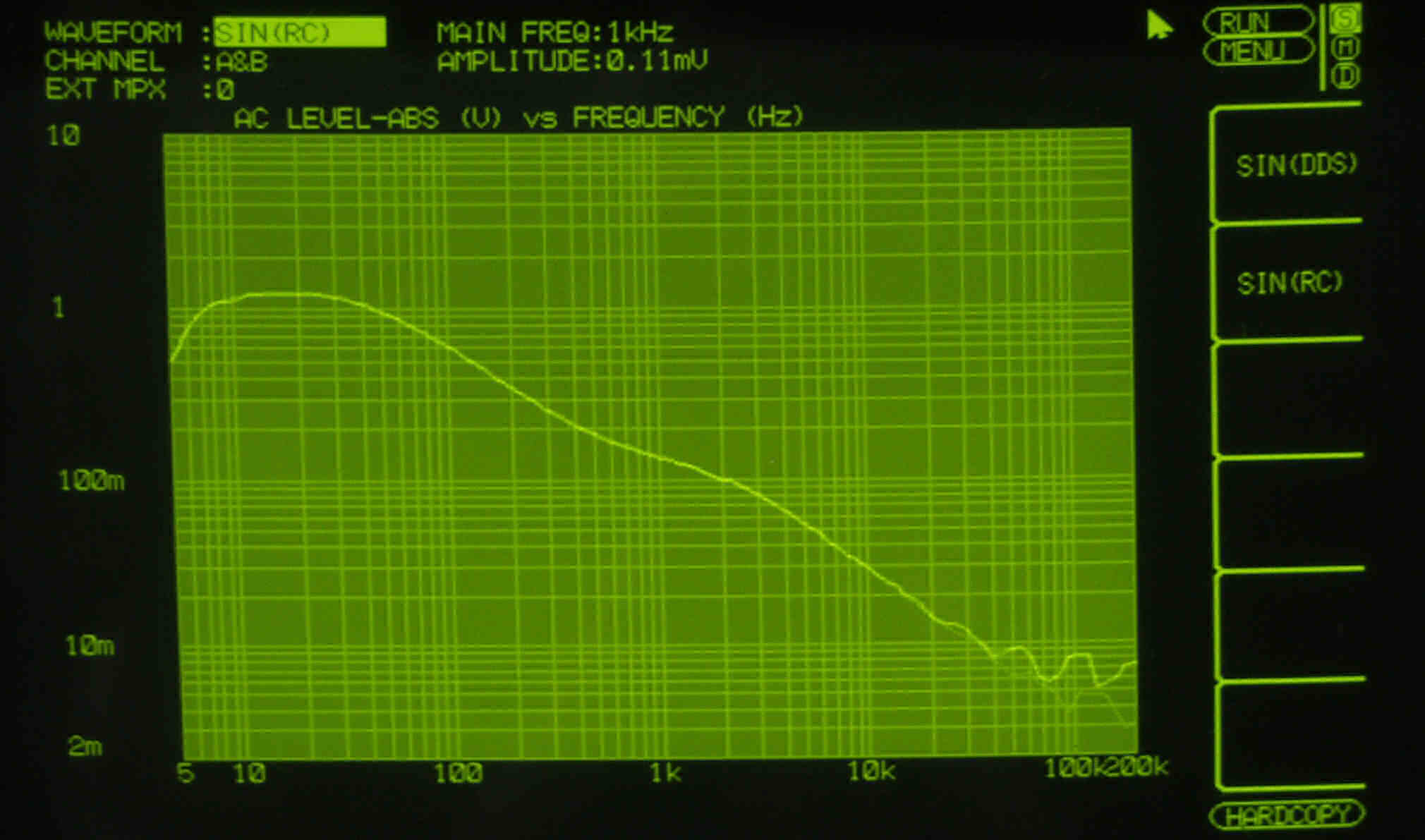 MM入力 入力電圧=1mV一定入力 VRはmax   左出力=薄(細い)色 右出力=濃い(太い)色