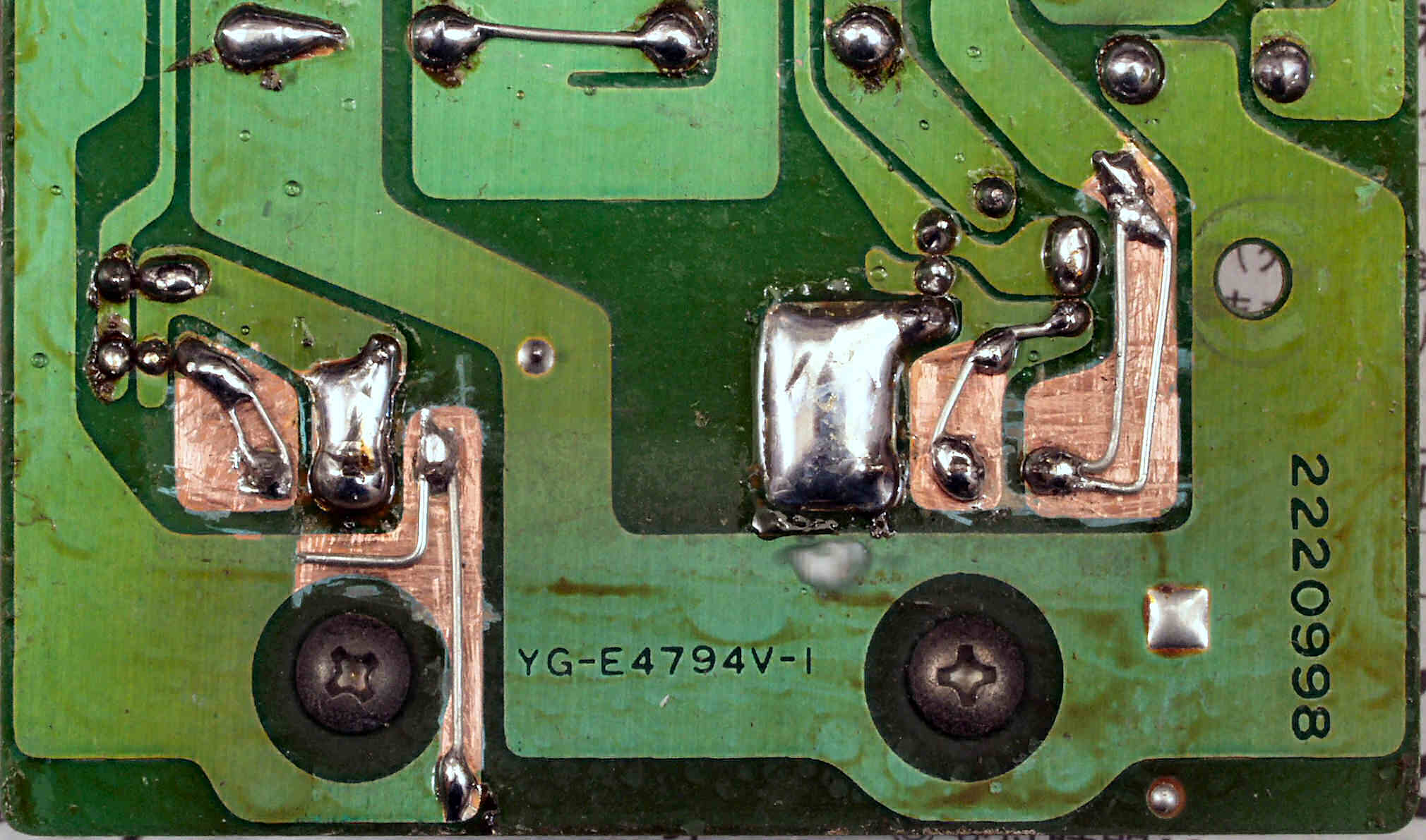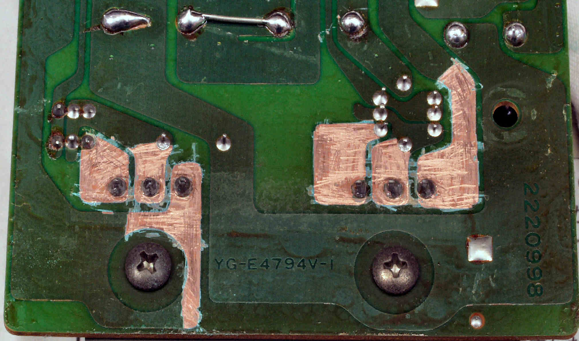 C434. 修理中 電源・コントロール基板裏  半田面積を増す