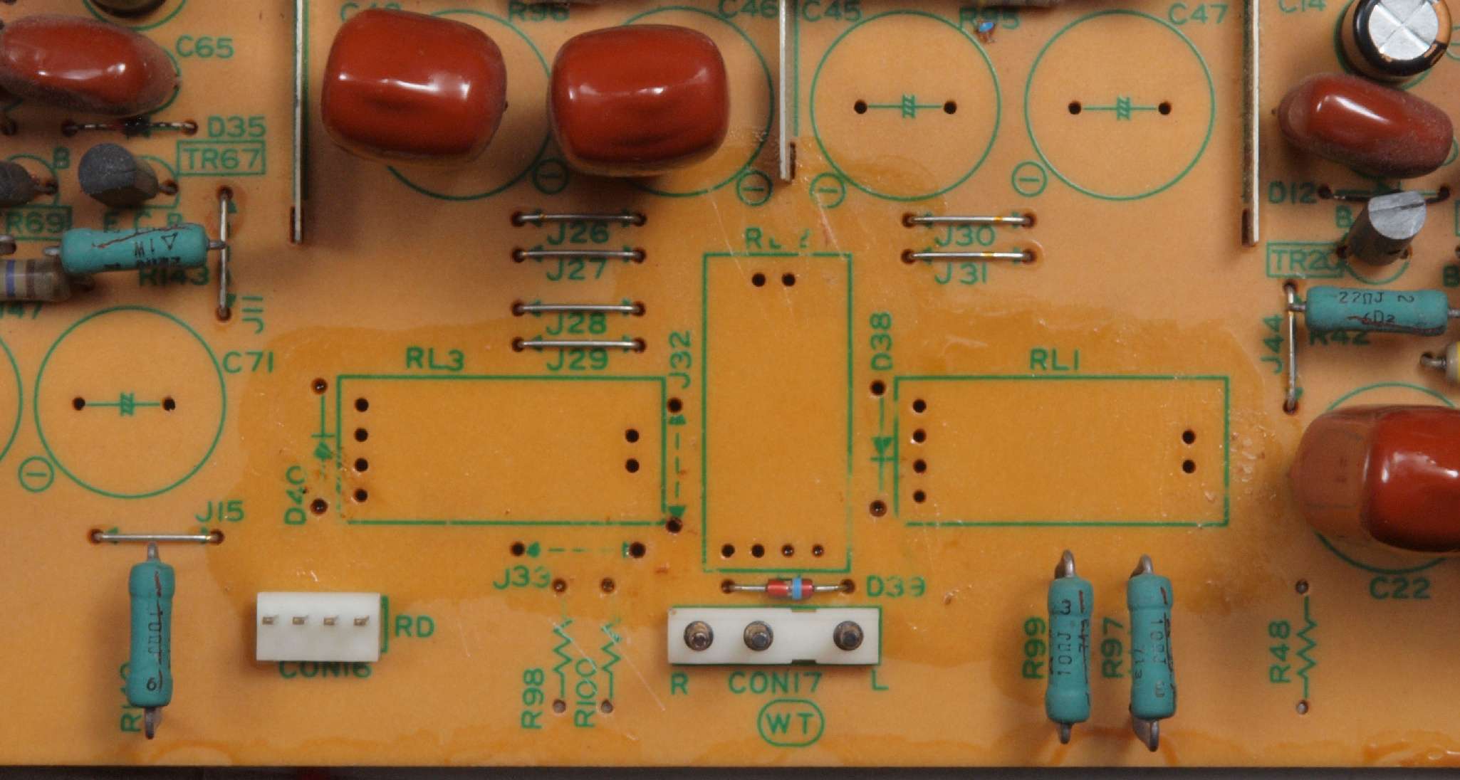 | C23. 修理前 EQ−AMP基板裏。 RCA端子が半田補正してある。 | ||||||||||||||||||||||||||||||||||||||||||||||||||||