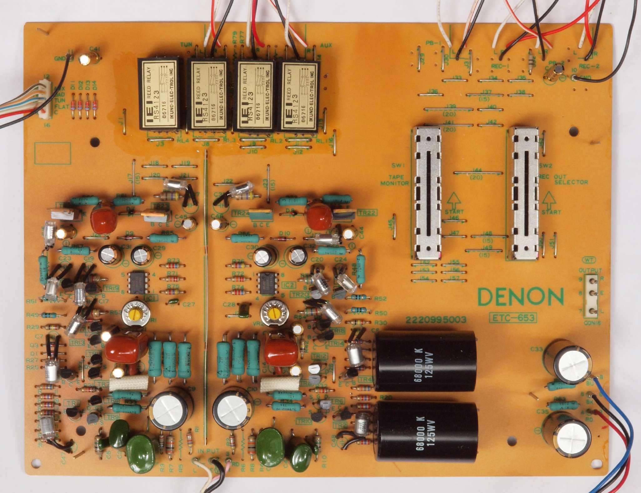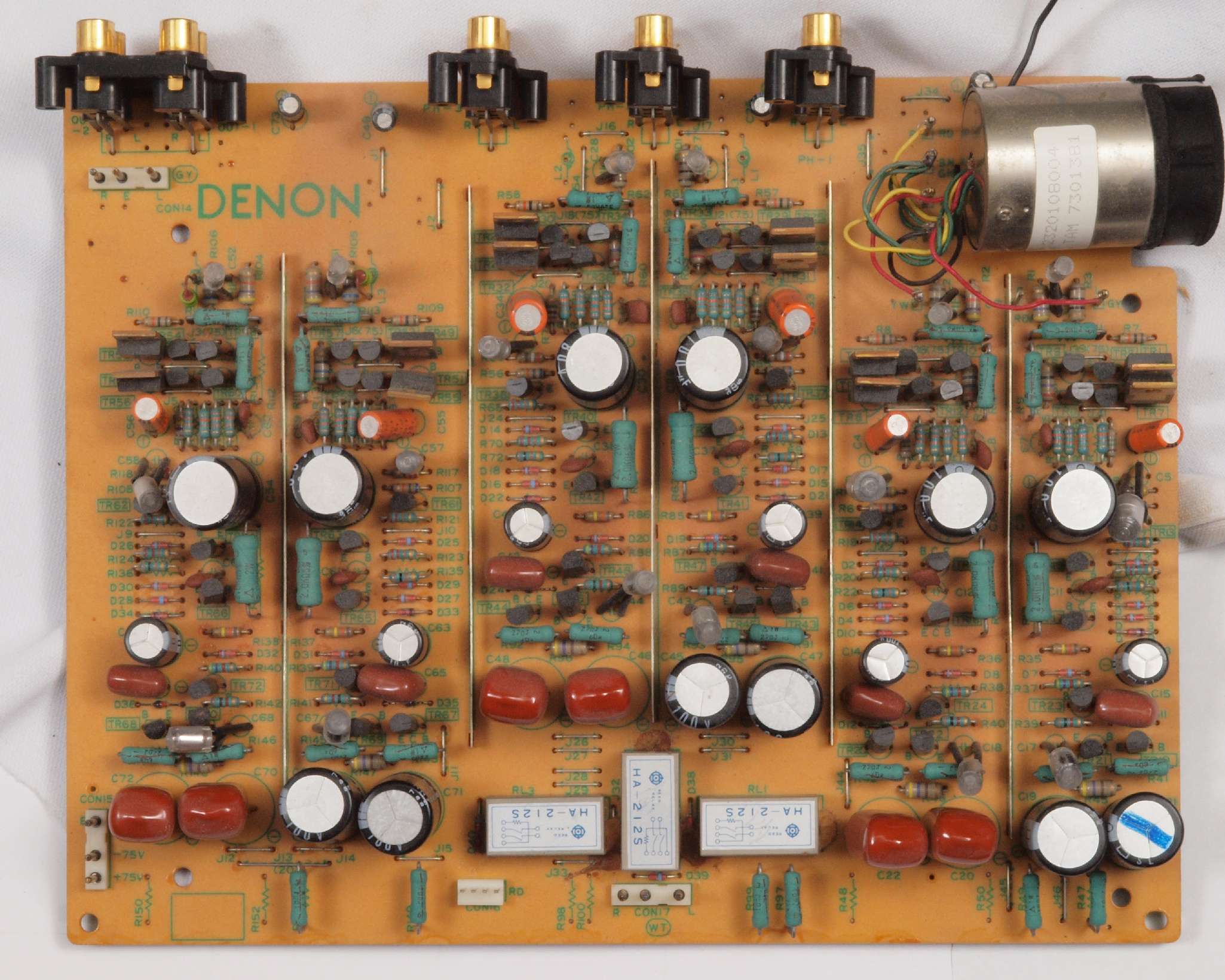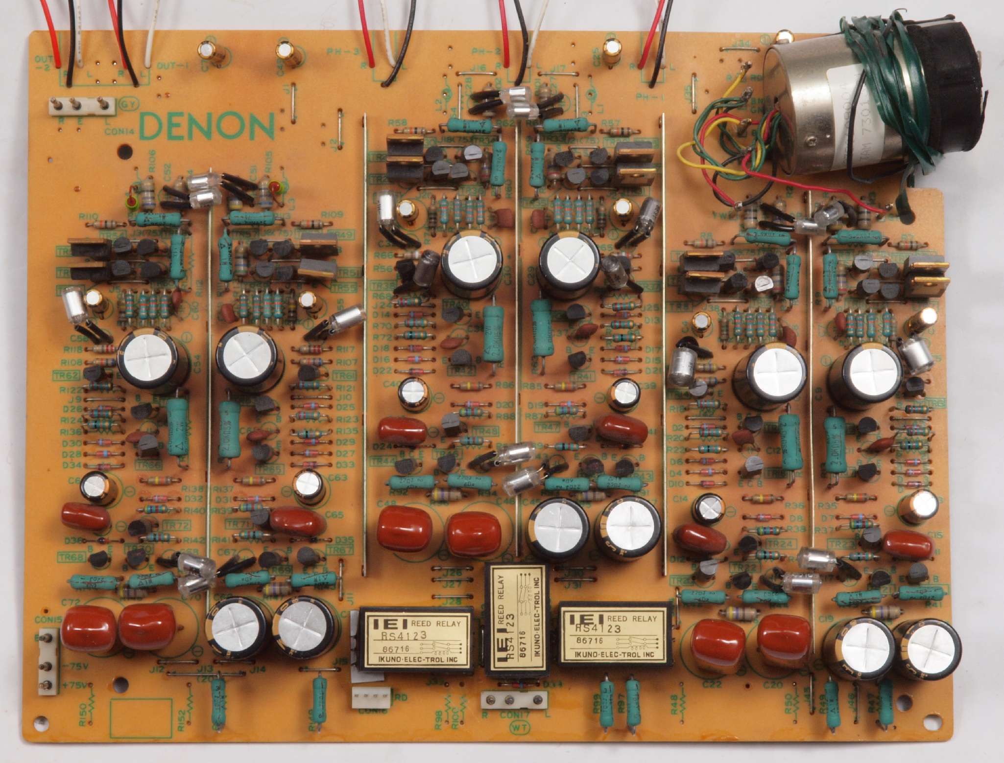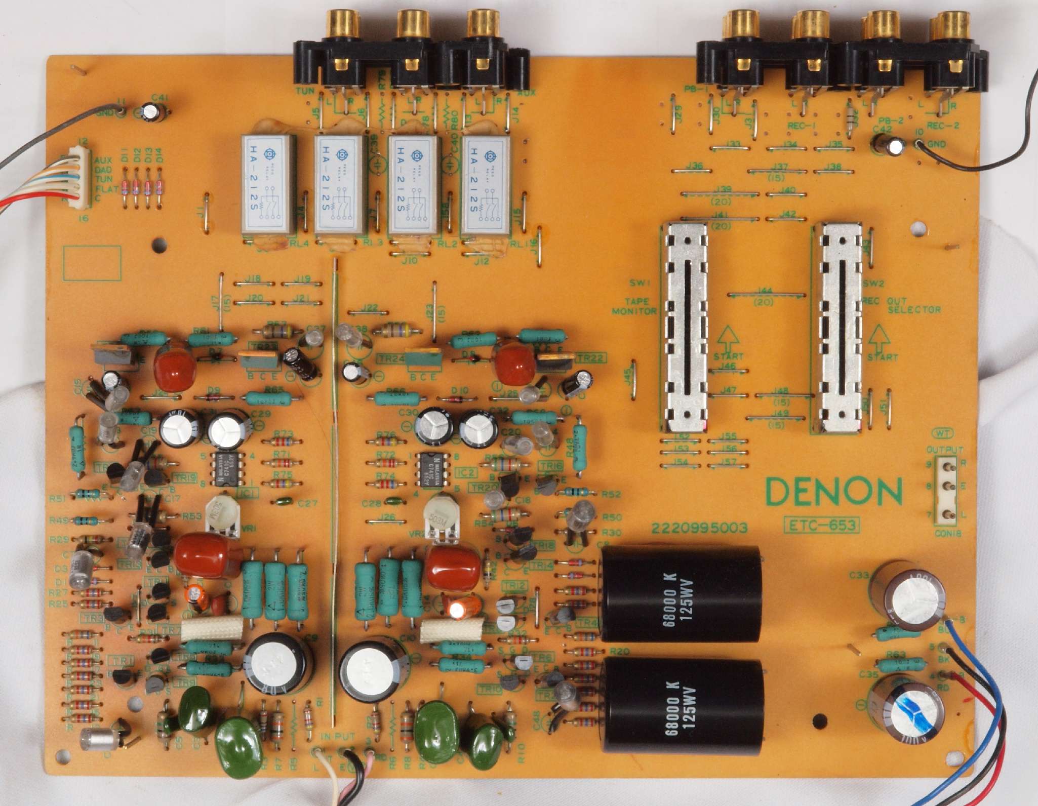 | C11. 修理前 EQ−HEAD-AMP基板。 左=MM、中=MC、右=トランス使用MC。 上右端がMC−トランス。 | ||||||||||||||||||||||||||||||||||||||||||||||||||||